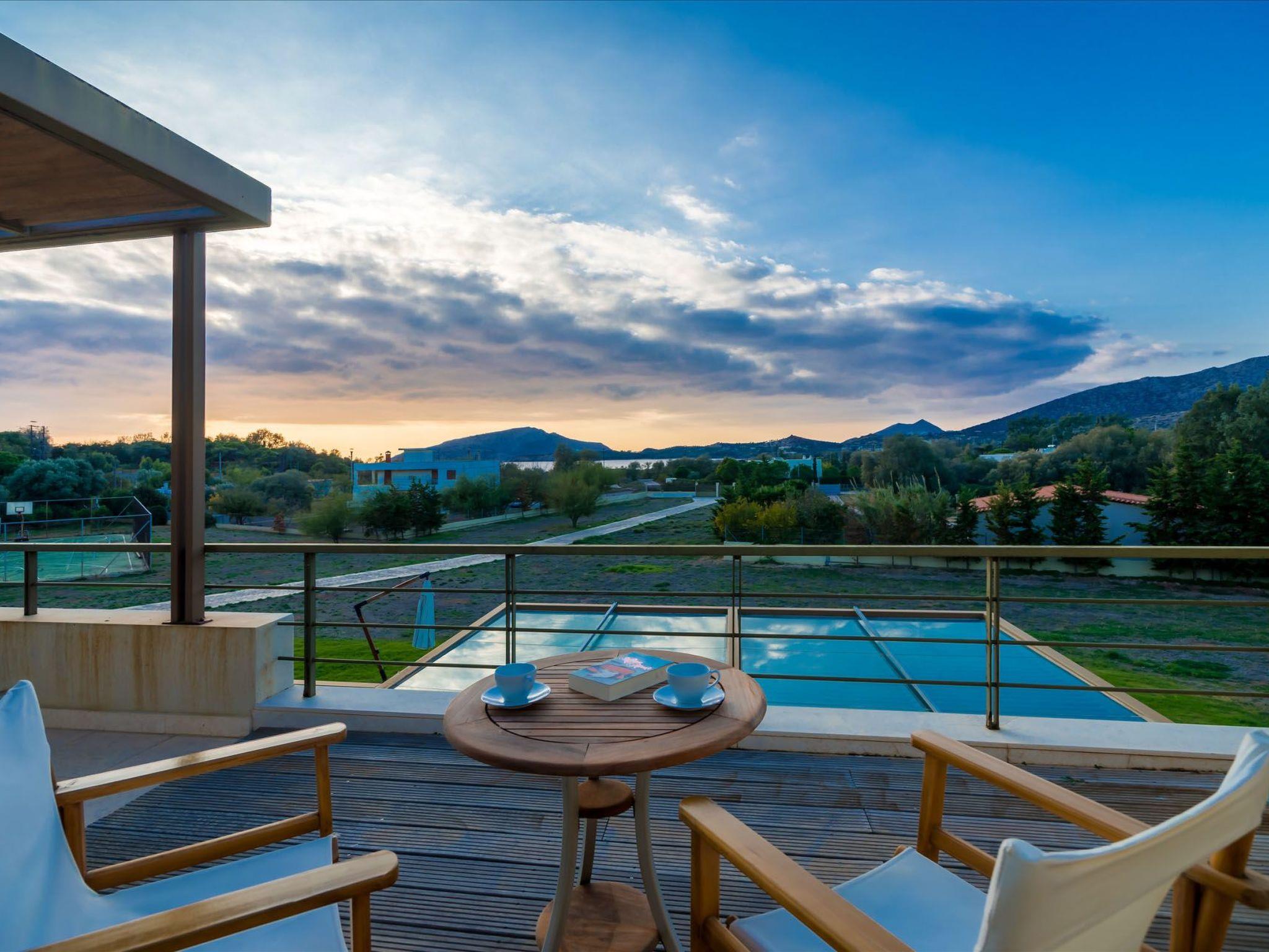 Situated in a peaceful, sparsely populated area away from the hustle and bustle of urban life, the villa's location is truly unmatched. The serene beaches and historic allure of Cape Sounio are just a stone's throw away. For your convenience, the bustling small cities of Lavrio and Anavyssos, offering shopping centers, markets, gas stations, and additional services, are only a 10-minute drive away. Plus, the villa's proximity to both the center of Athens and the Eleftherios Venizelos Athens International Airport adds to its appeal as a fantastic base for exploring this richly historic region.