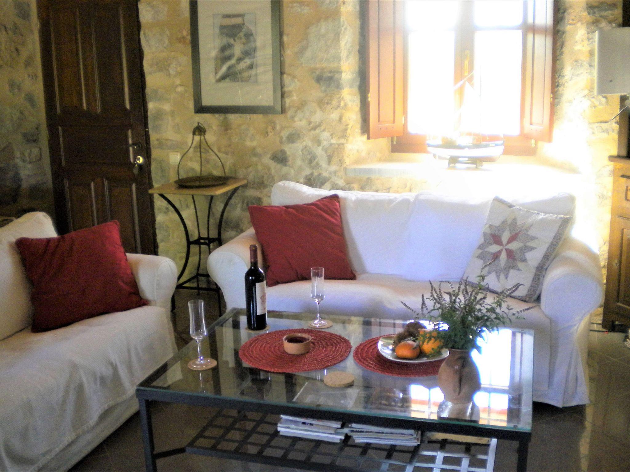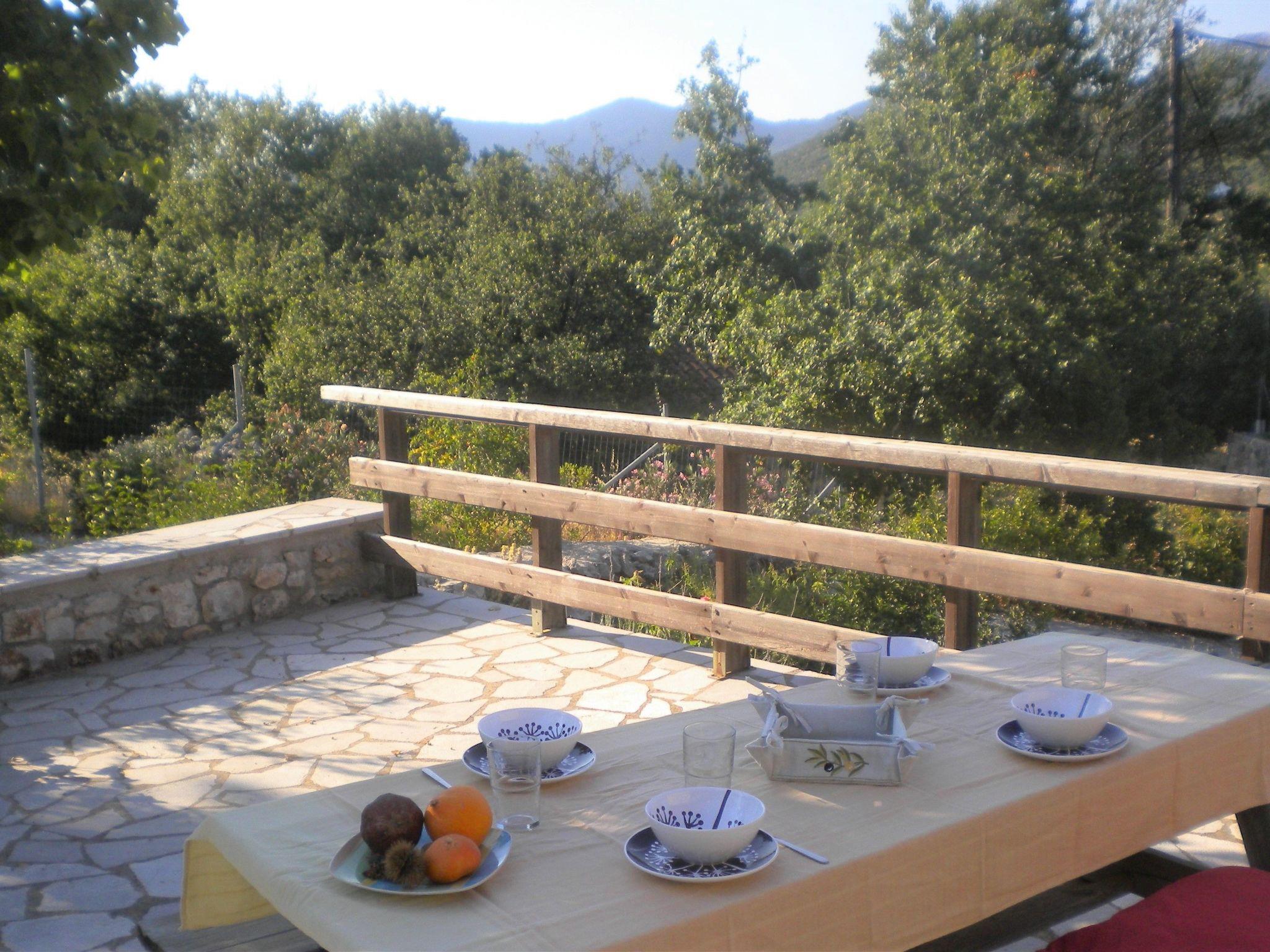 FEATURES: A self contained two-bedroom holiday Home of 95m2 opening out to large verandas and a large garden area. It features 2 large BEDROOMS : A main bedroom with double bed. A second bedroom with two single beds. An extra foldaway bed for a 5th person, for a child is available, on request. The house is equipped with a private BATHROOM with bath, hairdryer and washing machine, towels and bed linen are provided. The accommodation is fitted with a charming, spacious LIVING ROOM with sitting and dining place, wood stove, study corner and KITCHENETTE fitted with a fridge, stovetop and coffee machine. The house is heated, a flat-screen TV-Sat and Free unlimited WiFi (very fast 4G +) is provided. Private parking and a Barbeque area with outdoor dining place and 2 large verandas. The House is ideal for relaxing vacations, for swimming, fishing, diving, climbing, cycling, hiking, and as base for exploring the Peloponnese. For one or two couples or for a family with two or three children. It is suitable also for long-term rentals (Spacious and pleasant living room, study office, washing machine, Kitchen, barbeque, outdoor eating place).WALKING, CYCLING & CLIMBINGThe property is situated in an excellent location surrounded by nature for a walking or cycling holiday near Leonidio. Walking options range from gentle strolls through the nearby villages of Amygdalia, Pigadi and Peleta to more energetic hiking along the old shepherd paths to the beaches of Poulithra and Fokianos.The location also provides a very good base for road cycling along quiet roads in excellent condition with best of both mountainous terrain and coastal riding. We can recommend opportunities on where to take a break for a refreshing swim in one of the numerous secluded bays or stop and relax for a coffee in a traditional taverna along the way.Further information on possible routes and recommendations on where to go can be tailored on request.The area has now developed a large climbing network and the property is located between the areas in Leonidio and Kiparissi - ideal for beginners through to multi stage advanced walls.