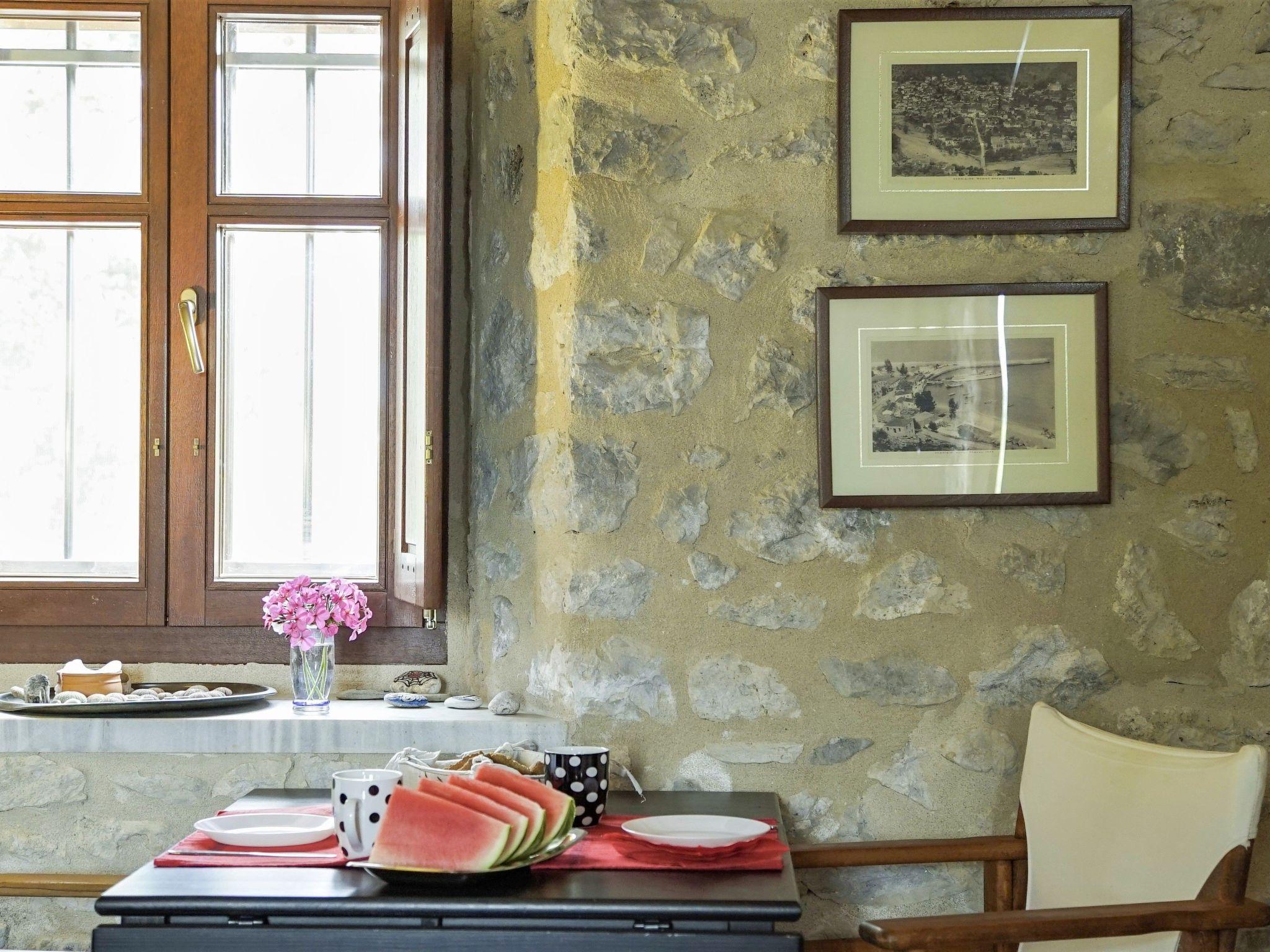 A Charming Home whith 1 Living room, 2 Bedrooms with AC, 1 Bathroom, Kitchenette, Sleeps 4+1child. LOCATION : The property, two Restored Stone Homes of an old farmer Hamlet is surrounded by a forest area in a quiet unspoiled landscape. It offers a unique view on the garden, the peaks of Mount Parnon and the nearby village of Amygdalia. It is placed near Leonidio between the beaches and the mountain villages at a distance of 18km from Mount Parnon and Leonidio city, on the way to Kyparissi. The beaches of Fokianos and Poulithra are a 15-minute drive away (12km). The high mountains touch the sea creating picturesque beaches. There is a cool and dry atmosphere, pleasant in the summer nights.