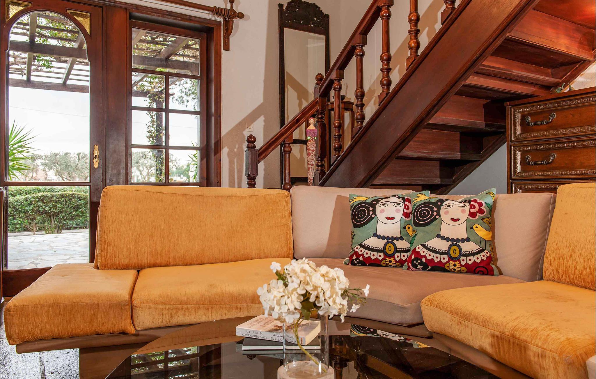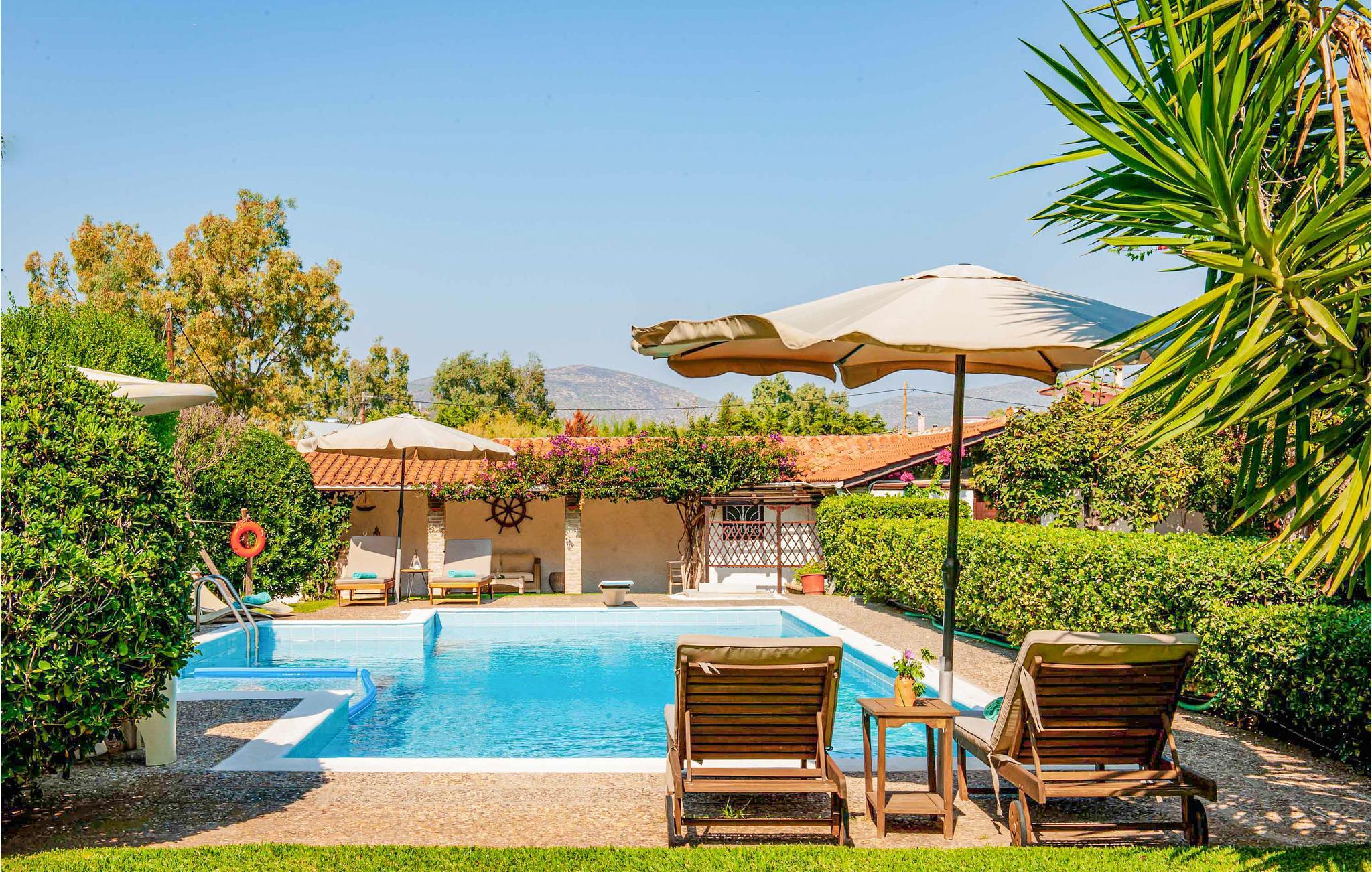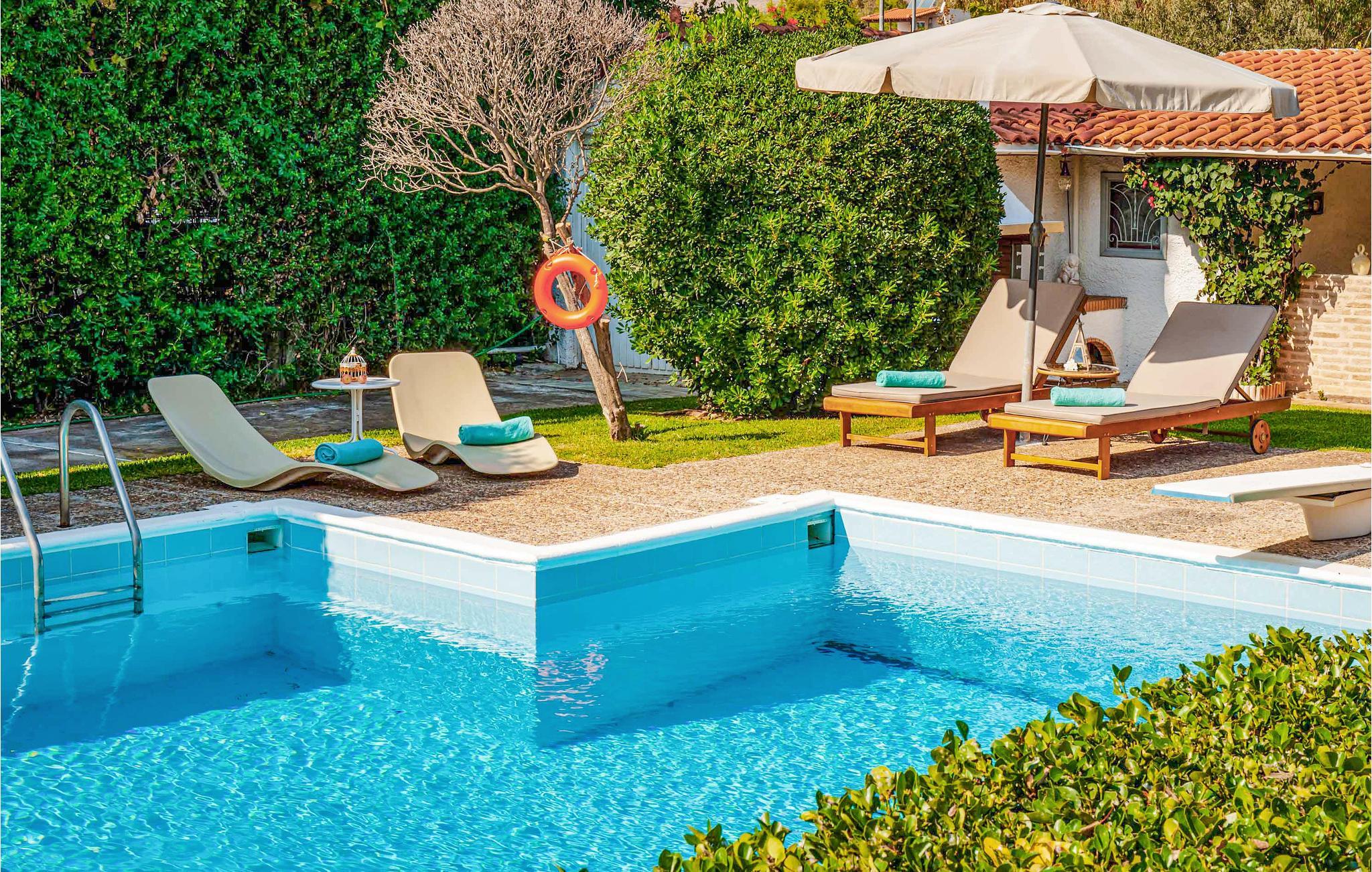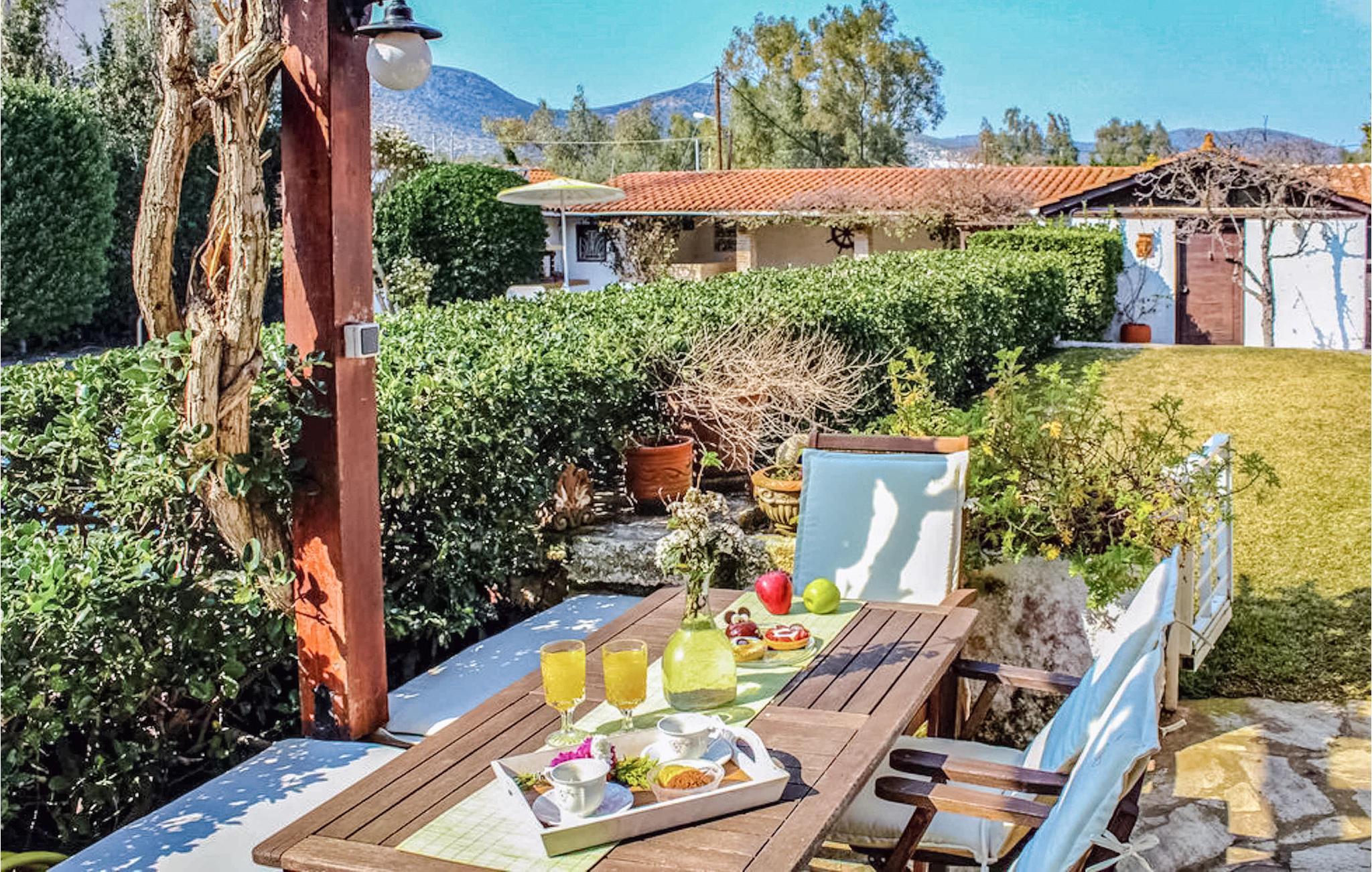 Das schöne Ferienhaus liegt nur 40 Minuten von Athen entfernt und in der Nähe des wunderschönen Sandstrandes von Marathon Schinias. Das Haus ist umgeben von wunderschönen Landschaftsgärten mit Bäumen und bunten Blumen und viel Grün Der Garten auf der linken Seite bietet einen voll ausgestatteten Grillplatz, hier können Sie eine schöne Mahlzeit für Ihre Familie zubereiten. Direkt neben dem Grillplatz ist eine eigene Bar errichtet, wo Sie im kühlenden Schatten ein erfrischendes Getränk genießen können. Außerdem gibt es ein Bad im Außenbereich mit Toilette, Dusche und warmen Wasser.