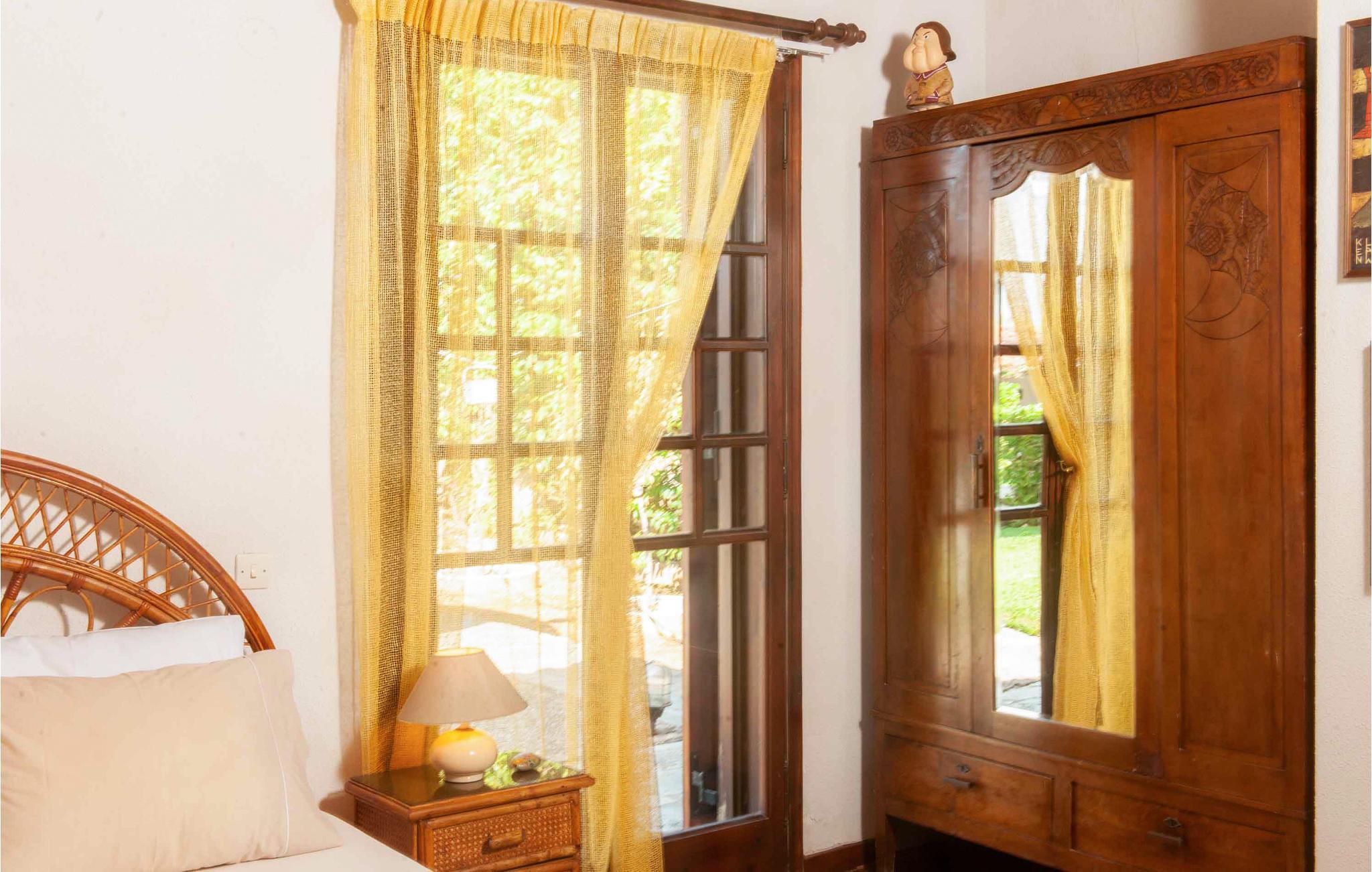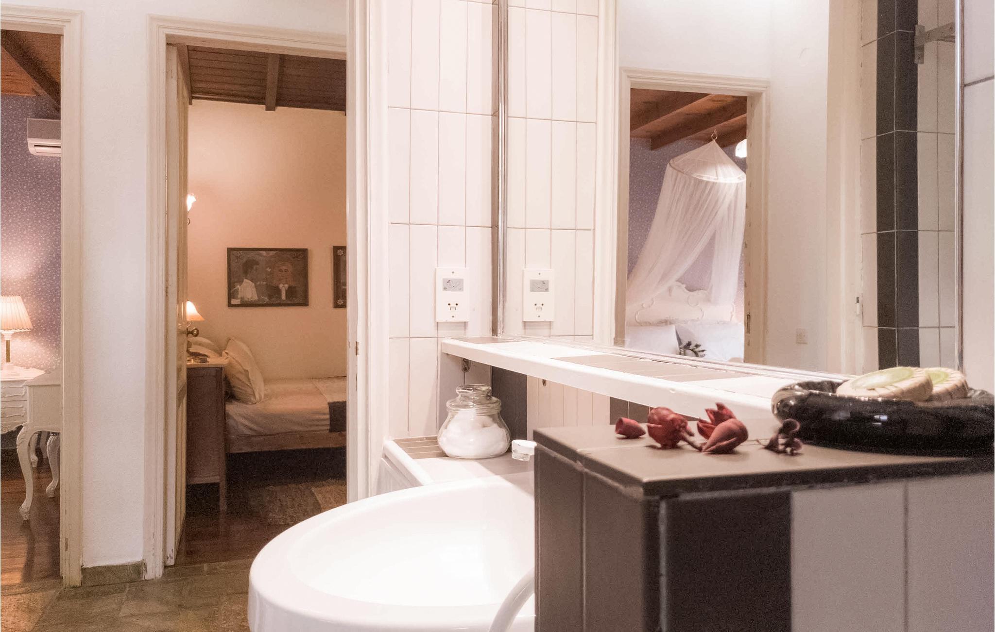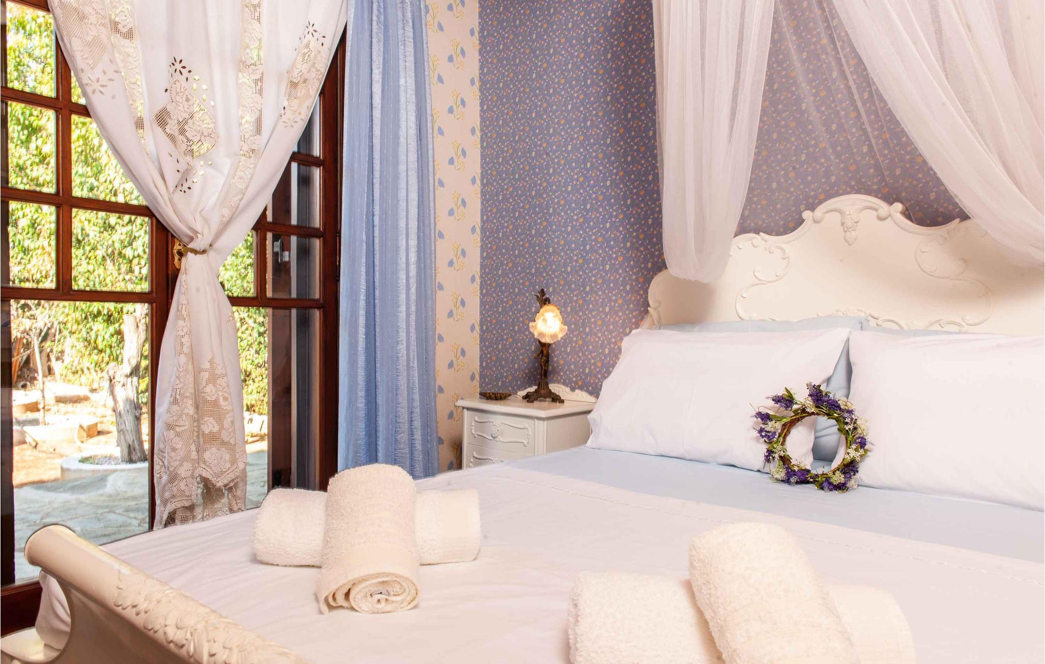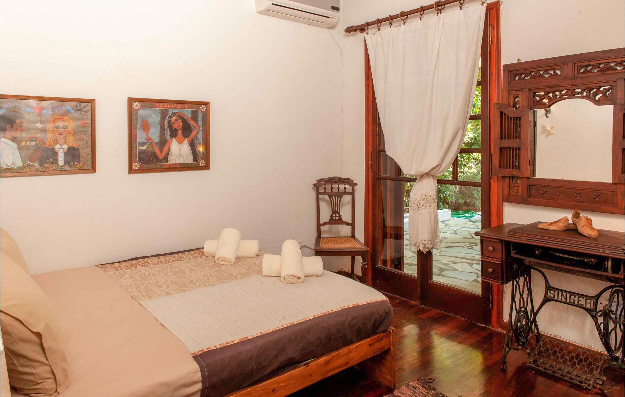 Im Erdgeschoss gibt es drei große und sehr komfortable Zimmer, die geschmackvoll eingerichtet sind. Jedes Zimmer hat seinen eigenen Charakter und eine private Veranda. Das vierte Bett befindet sich auf der oberen Ebene. Dieses Zimmer verfügt über eine eigene Terrasse mit Blick auf den Pool und ist zum Sonnenuntergang ausgerichtet.