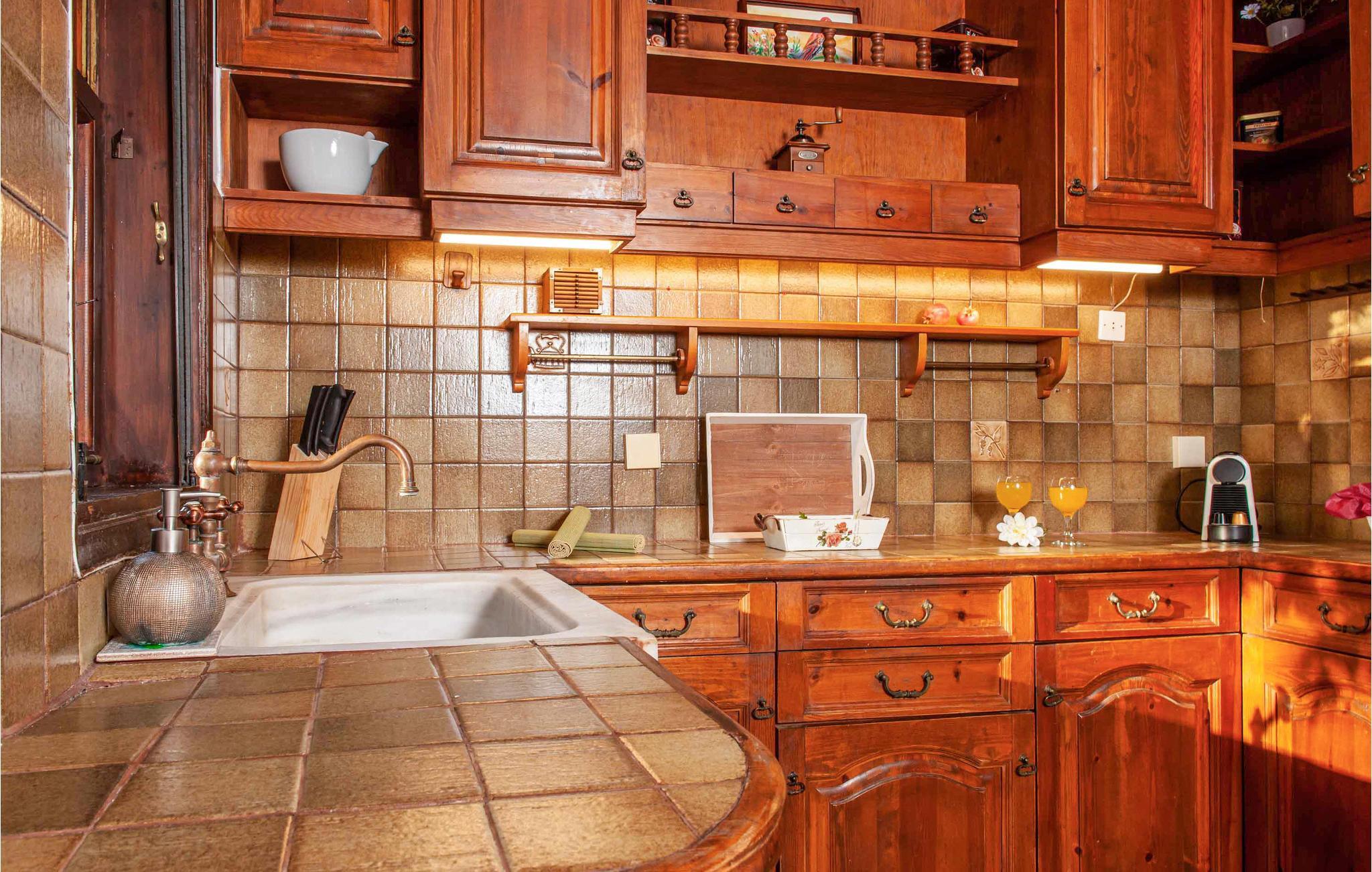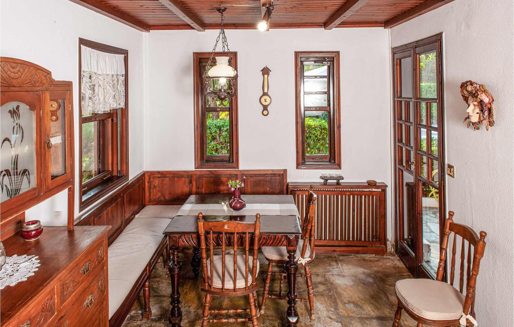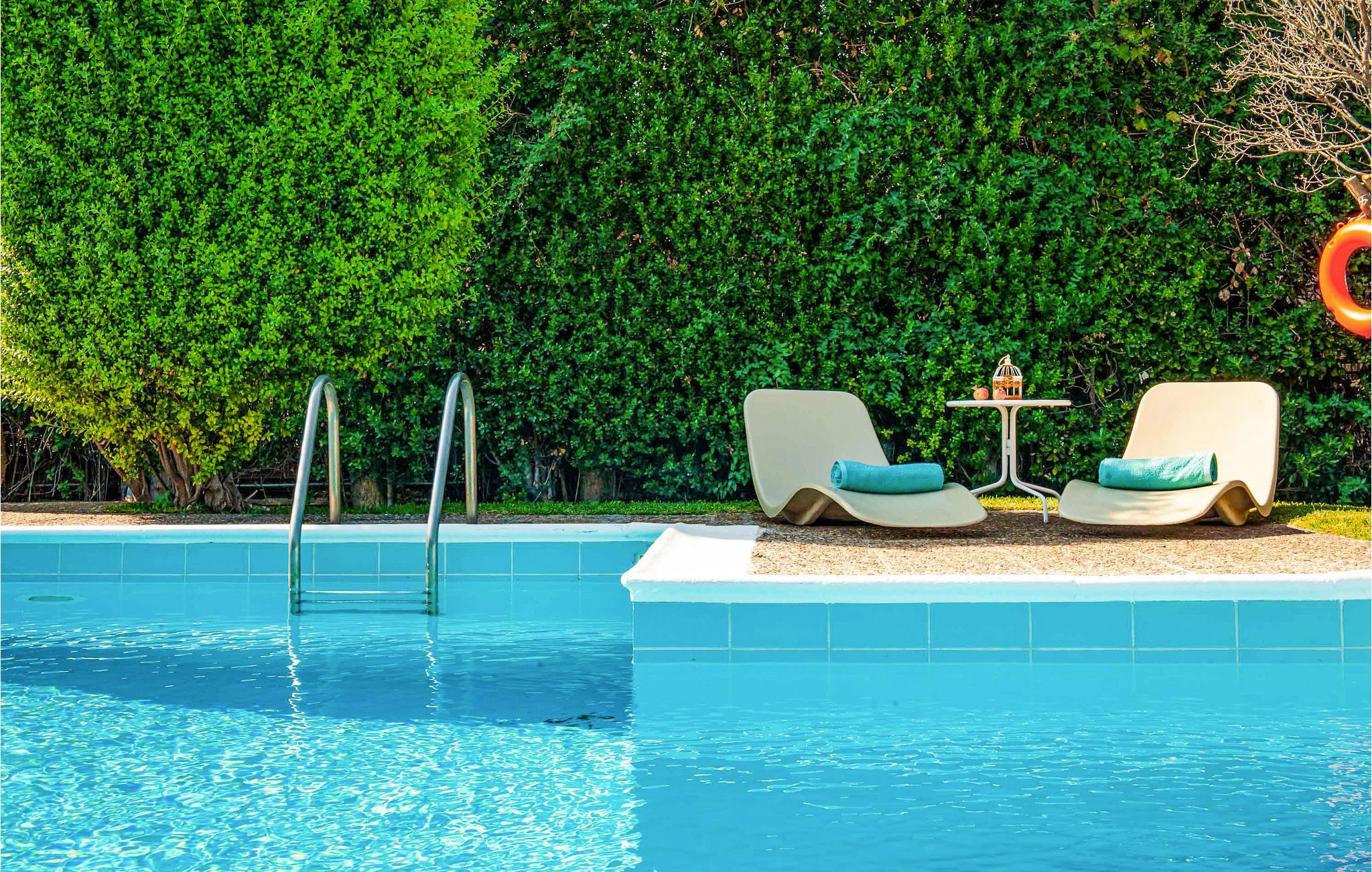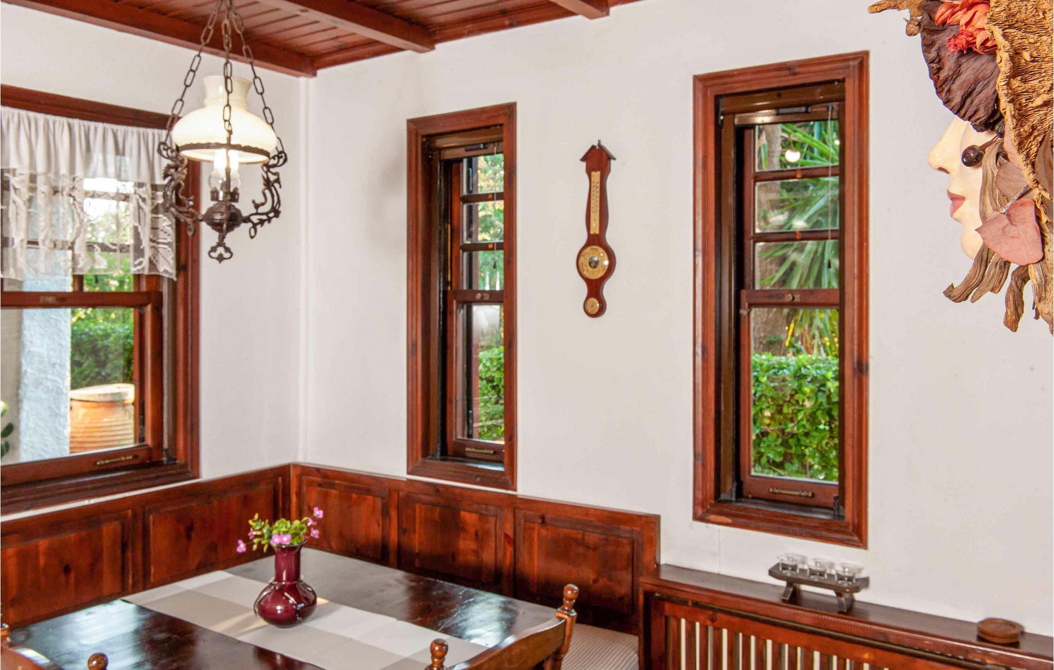 Das Haus verfügt über einen großen Pool mit weitläufigen Terrassen, ideal zum Sonnenbaden, mit bequemen Sonnenliegen und Tischen, um Ihr Frühstück zu genießen. Das Innere des Hauses bietet viel natürliches Licht und wirkt durch Holzdecken besonders gemütlich.