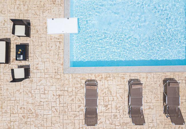 Amenities include full air conditioning, high-speed Wi-Fi throughout, and a private swimming pool (25 sq. m, 1.40 m deep) surrounded by outdoor seating and sun loungers—an ideal spot to soak up the sun and stunning sea views. Private parking is available directly in front of the villa.