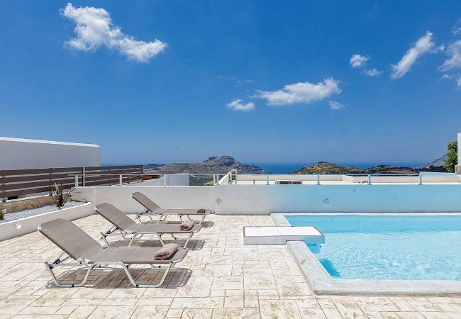 Amenities include full air conditioning, high-speed Wi-Fi throughout, and a private swimming pool (25 sq. m, 1.40 m deep) surrounded by outdoor seating and sun loungers—an ideal spot to soak up the sun and stunning sea views. Private parking is available directly in front of the villa.