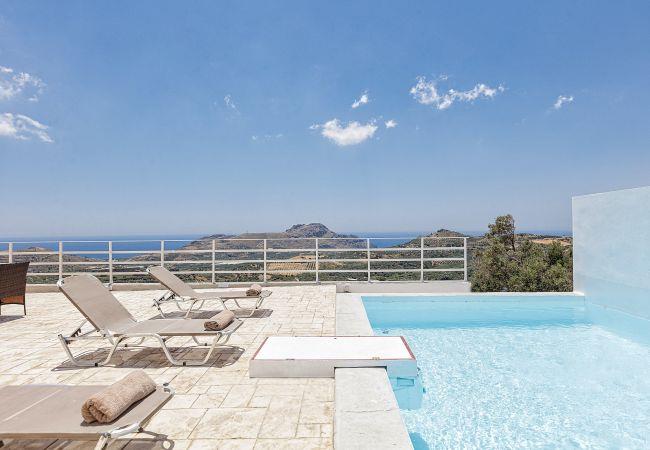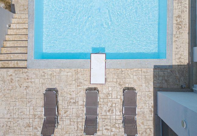 Amenities include full air conditioning, high-speed Wi-Fi throughout, and a private swimming pool (25 sq. m, 1.40 m deep) surrounded by outdoor seating and sun loungers—an ideal spot to soak up the sun and stunning sea views. Private parking is available directly in front of the villa.