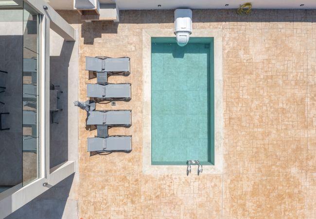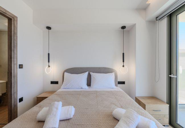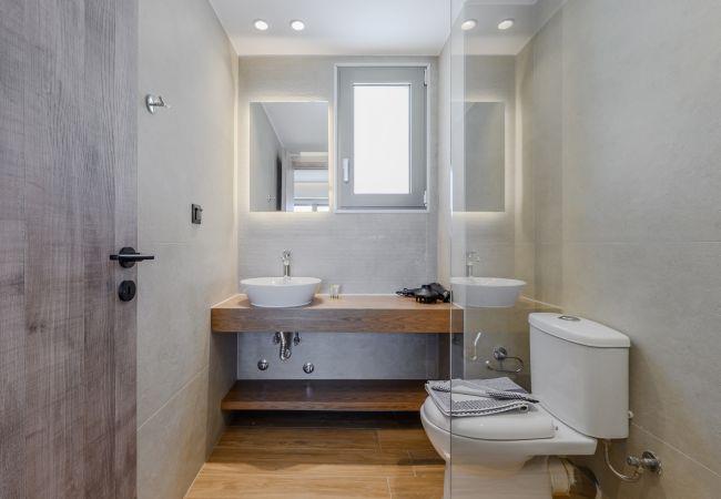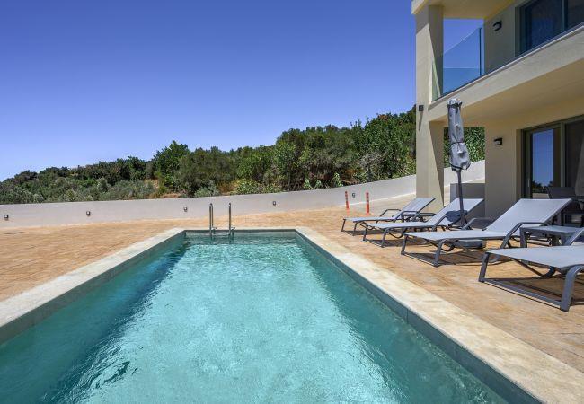 Step outside to enjoy the villa's exterior amenities. A private swimming pool invites you to cool off on warm Cretan days, while the fenced garden provides a safe and serene environment. The terrace with the loungers, the umbrellas and the garden furniture offer perfect spots for alfresco dining or simply soaking in the Mediterranean sun. For outdoor cooking enthusiasts, a barbecue is available for preparing delicious meals under the open sky.