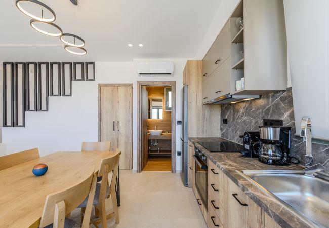 As you enter the villa, you'll be greeted by a thoughtfully designed ground floor. Here, you'll find a spacious living room perfect for relaxation and entertainment, complemented by an open-plan modern kitchen. The kitchen is fully equipped with all the essentials, including a refrigerator, microwave, oven, freezer, dishwasher, and a variety of small appliances to make your stay comfortable and convenient.Furthermore there is a wc.