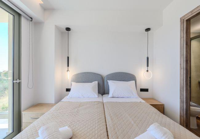 Ascending the stairs to the first floor, you'll discover two well-appointed bedrooms, offering a peaceful haven for rest and rejuvenation after a day of exploring the local area. One bedroom has a double bed and the other two single beds and they both have en-suite bathrooms and balcony with splendid views.