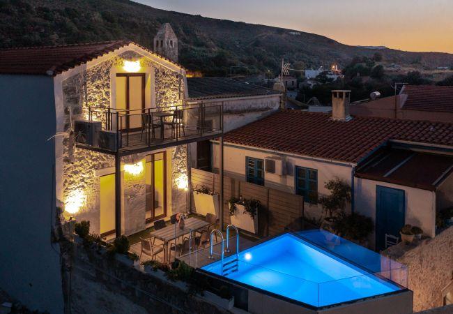 Villa Iliahtida is a beautifully restored stone house from 1880, located in the heart of the traditional village of Maroulas, just 8 km from the center of Rethymno. Combining historical charm with modern amenities, the villa covers 150 m² and can accommodate up to six guests in total comfort. It offers 3 bedrooms and 4 bathrooms.
