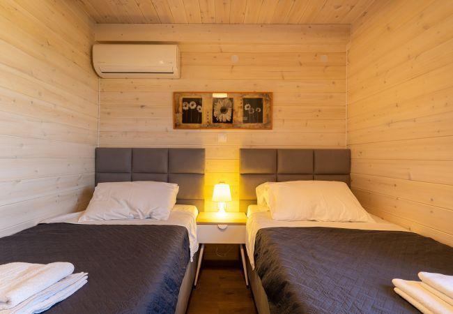 Crafted entirely from wood with an unwavering commitment to ecological principles, Villa Faragi Sophie seamlessly blends rustic charm with modern comforts. Boasting 2 bedrooms(one double on the upper floor and one twin on the ground floor ), two bathrooms (one in the house and one outside next to the pool) and a capacity for 4 people, this cozy 55 m² villa is perfect for families or couples seeking a peaceful escape in nature.