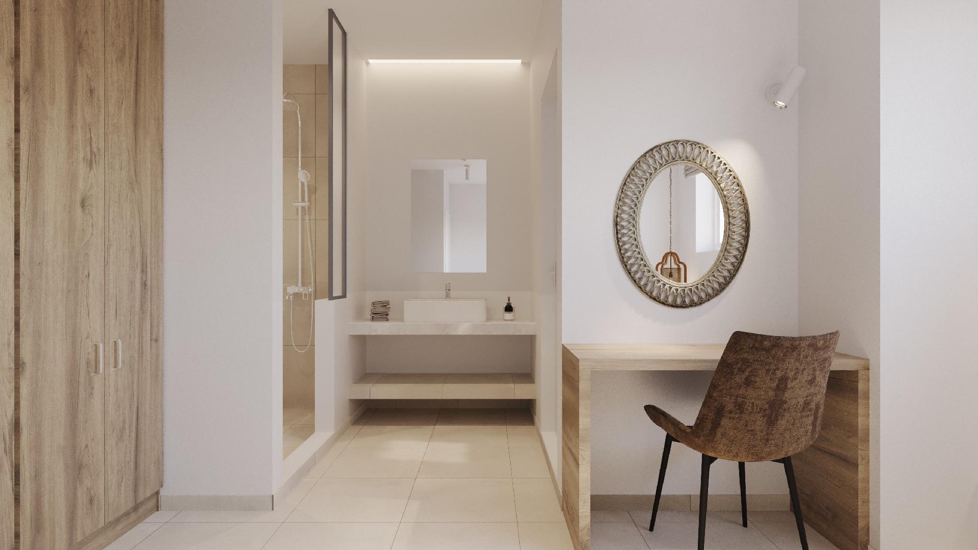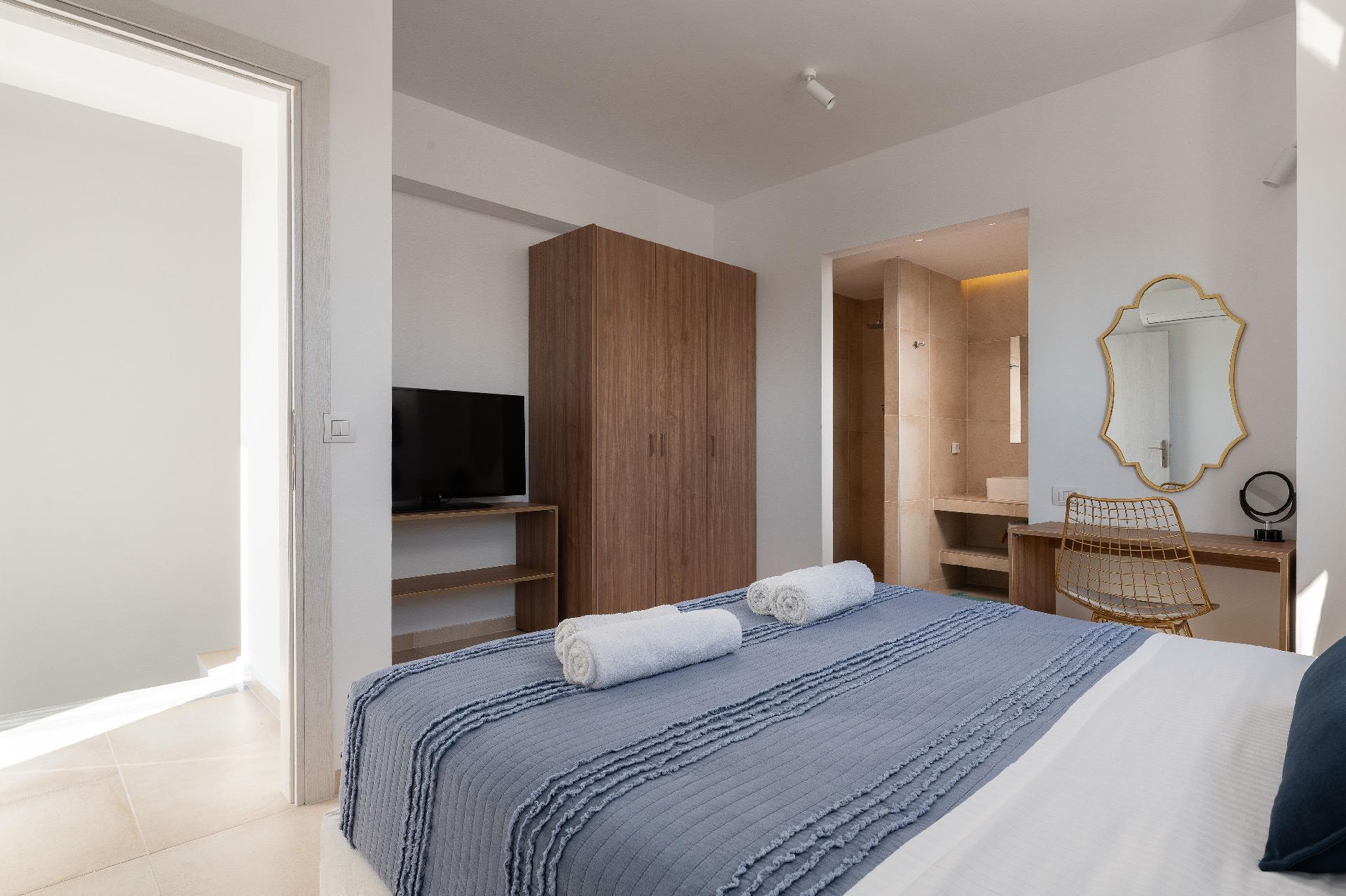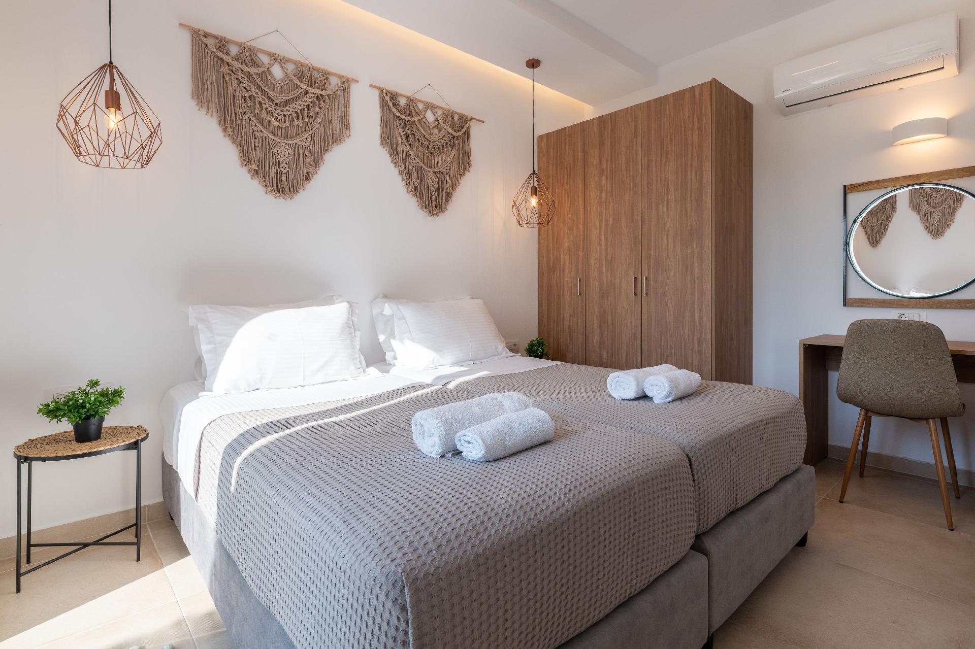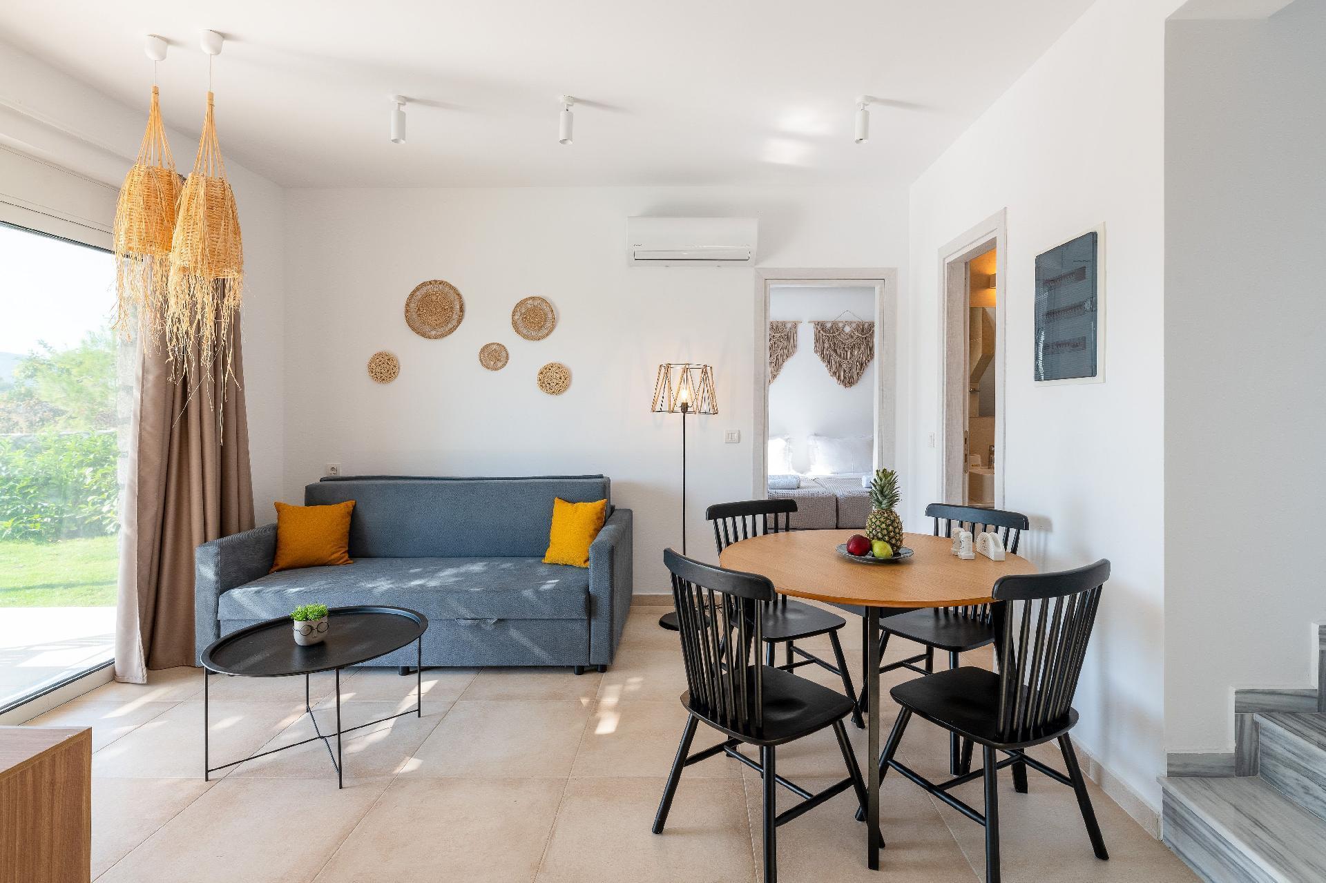 The beach is about 1km metres away. Charaki bay its 1 km away ,with its restaurants and supermarkets Massari village its 200 m away with all you need for shoping , pharmacy etc