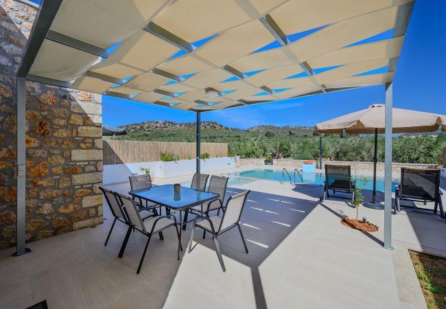 Nestled near the charming and picturesque village of Melidoni, the Melidoni Stone Villa 2 offers an idyllic retreat for up to 4 guests. This single-story, fully-equipped villa spans 50 m², blending comfort and modern amenities with rustic charm. Surrounded by breathtaking views of lush gardens and majestic mountains, the villa promises a serene escape in a family-friendly and rural setting.