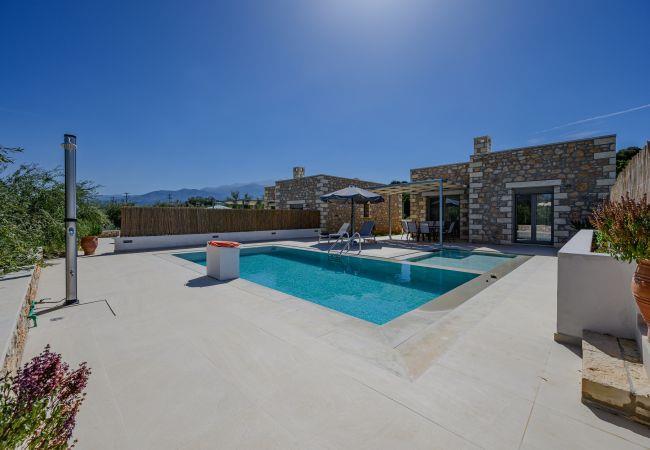 Nestled near the charming and picturesque village of Melidoni, the Melidoni Stone Villa 3 offers an idyllic retreat for up to 4 guests. This single-story, fully-equipped villa spans 50 m², blending comfort and modern amenities with rustic charm. Surrounded by breathtaking views of lush gardens and majestic mountains, the villa promises a serene escape in a family-friendly and rural setting.