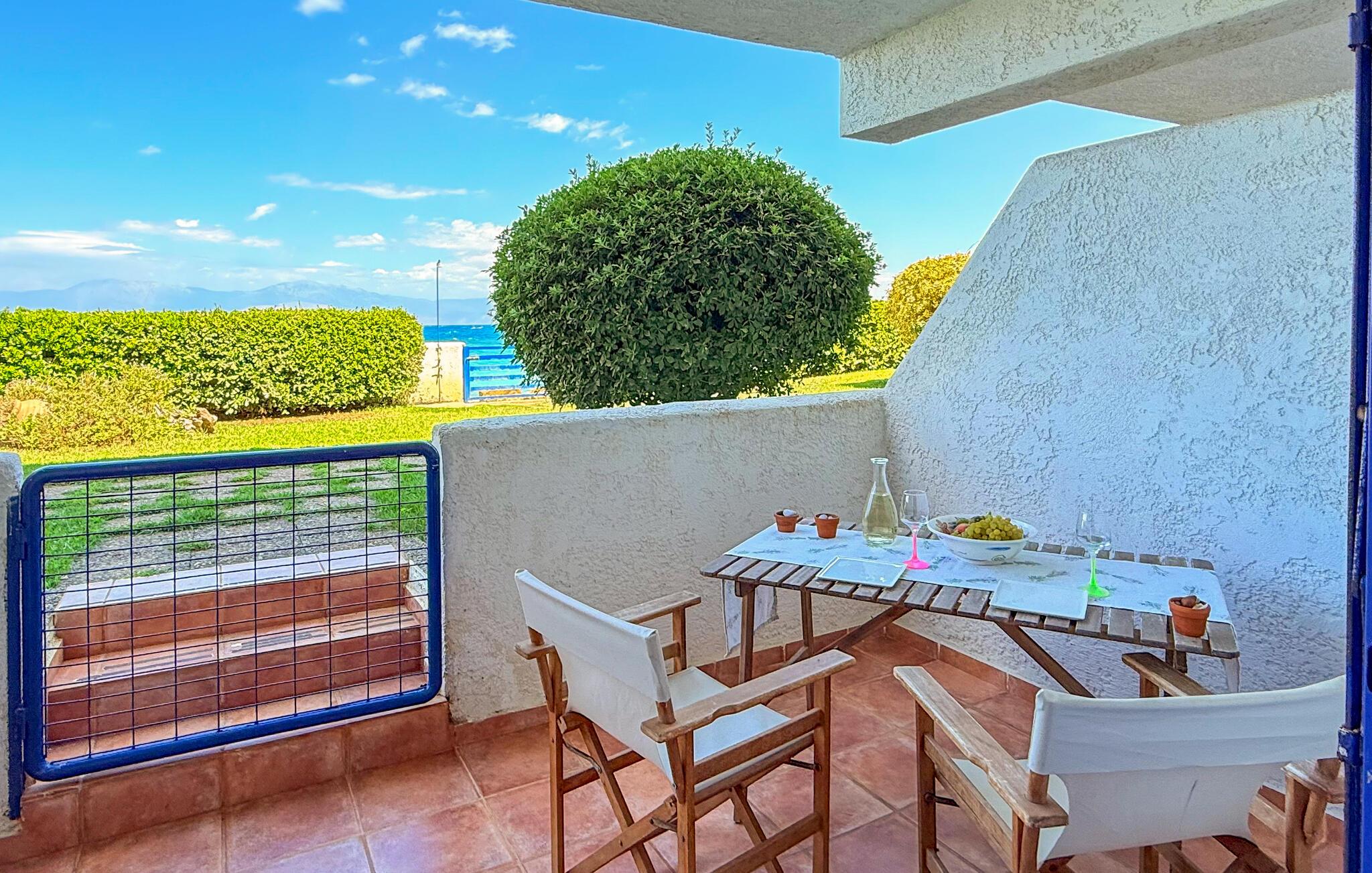 Treten Sie hinaus auf den Balkon und lassen Sie Ihren Blick über das glitzernde Meer schweifen. Nehmen Sie hier Ihr Frühstück ein oder entspannen Sie mit einem Glas Wein am Abend. Nutzen Sie die unmittelbare Strandnähe und gehen Sie schwimmen, wann immer Sie möchten. Genießen Sie das mediterrane Klima im kleinen Gartenbereich oder finden Sie ein schattiges Plätzchen für eine Pause.