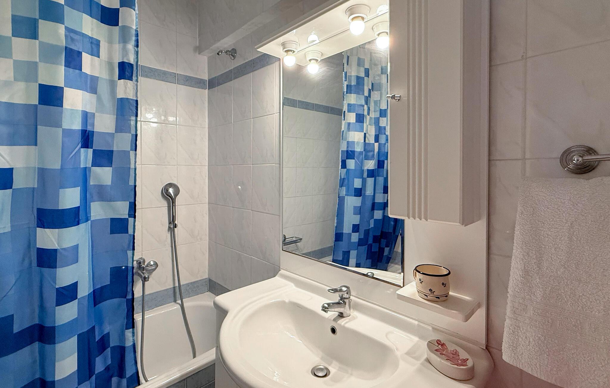Verbringen Sie erholsame Tage in einer Ferienwohnung, die Ihnen den Strand buchstäblich zu Füßen legt und gleichzeitig beste Voraussetzungen für abwechslungsreiche Ausflüge bietet. Genießen Sie im Innenbereich die freundliche, mediterrane Atmosphäre. Nutzen Sie das gemütliche Wohnzimmer mit Sofaecke, Fernseher und Kamin für entspannte Stunden. Essen Sie gemeinsam am großen Esstisch und bereiten Sie in der praktischen Küche Ihre Lieblingsgerichte zu. Die Wohnung eignet sich ideal für Familien oder eine kleine Freundesgruppe.