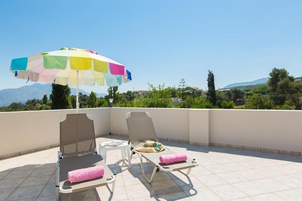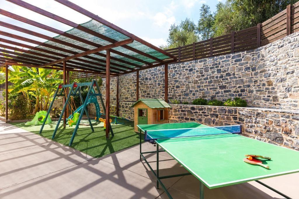 Featuring a 1.000 m2 outdoor area, with comfy sun beds that are there to welcome you by the unique private shaped pool 1-1.8 meters deep, with sun terrace surrounded by a colourful flower garden. A playground setting for our young guests and a table tennis for those who are sport lovers, will offer you some quality family time and endless fun. Enjoy the magnificent views of the surrounding area and hills and the refreshing country air. Soak up the sun around the pool terrace and be charmed by nature’s music, harmonically combined with the perfume of wild Cretan countryside. For the lounge lovers, there is a sitting area, under the trees where you can rest, all you may need after a long day of exploring, offering you the opportunity to read your summer books and enjoy the company of your loved ones. You can try preparing your meals at the BBQ facilities available and try al fresco dining. The villa has its own yard and garden where healthy biological (organic) vegetables are grown and offers you the opportunity to experience the Cretan pure products, so don’t hesitate to try the fresh fruit and vegetables during your stay. What's more, three bicycles will be at your disposal during your stay, for you to explore the surroundings.