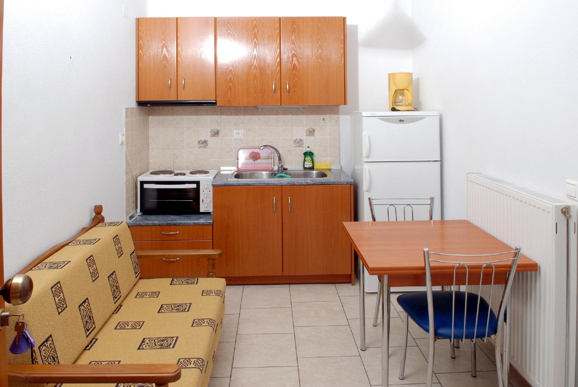 Kitchen: Fridge; Mini-oven