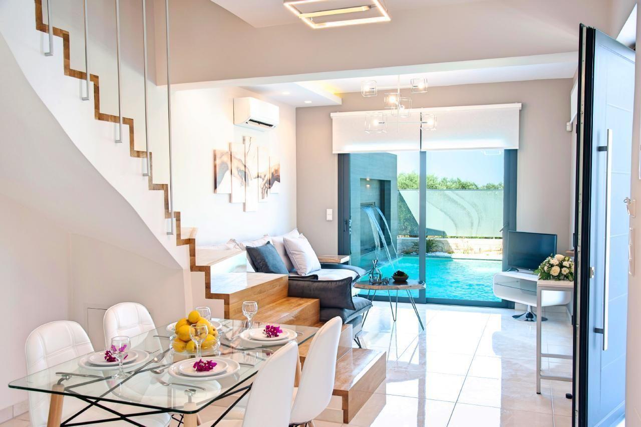 The Perla Villa, with its private pool, is distinguished by its ample space and its graceful ambience.It offers a stylishly designed master bedroom with a comfortable queen-size bed, a comfy second bedroom with twin push-together beds and an elegantly adorned bathroom with a rejuvenating shower.This chic Villa features a living room area with corner sofa, a separate cozy dining room with a fine bathroom with shower and a fully equipped kitchen.Outdoors, a spacious terrace with BBQ and dining area overlooks the Jacuzzi, the private pool and the relaxing sun beds area.Perla Nera Villa Facilities:Ground floor 50sqm? A living room with large Corner Sofa (can accommodate up to two quests) and direct access to the terrace and the pool area? A fully equipped Kitchen with an oven, microwave dishwasher, a fridge, a coffee maker, tea facilities, a toaster and a kettle.? A large bathroom with shower.Upper Floor 50sqm? A bedroom with a queen-size double bed.? A second bedroom with two twin push together beds.? A bathroom with shower.? TV at the living room.? Air-conditioning in all areas.? Free WiFi internet access.? Outdoor dining set (table with chairs).? Washing machine.? Iron and ironing board.? Safe deposit box.? Hair dryer.? Linen and towels.? Toiletries.? Swimming pool towels.? Baby cot.? High chair for children.? Towels and bed linen changed and cleaned every 3 or 4 days.? Private parking area.? Direct access to the swimming pool area.? Private Swimming pool 20sqm? Sun lounge area with sun beds under a pergola.? BBQ with dining area next to the swimming pool.? Plot 300sqm? The outdoor pool is heated and can reach 6 to 8 degrees more that the 24 h average air temperature with maximum value of 29°CShort descriptionOther : Non-smoking houseShort description 1Number of kitchens : 1SurroundingNearby sports facilities : Basketball, Bike tours, Canoeing, Climbing, Diving, Fishing, Mountain climbing, Mountainbiking, Paragliding, Riding possibilities, Sailing, Surfing, Tennis, Water skiingRental Facilities : Bicycle rental service, Boat rental service, car rentalGarden and outdoorGarden facilities : Garden furniture provided, GrillOn-site leisure facilities : Outdoor swimming pool exclusive use, Swimming poolService benefitsService facilities (may incur additional costs) : Transfer service (airport etc)