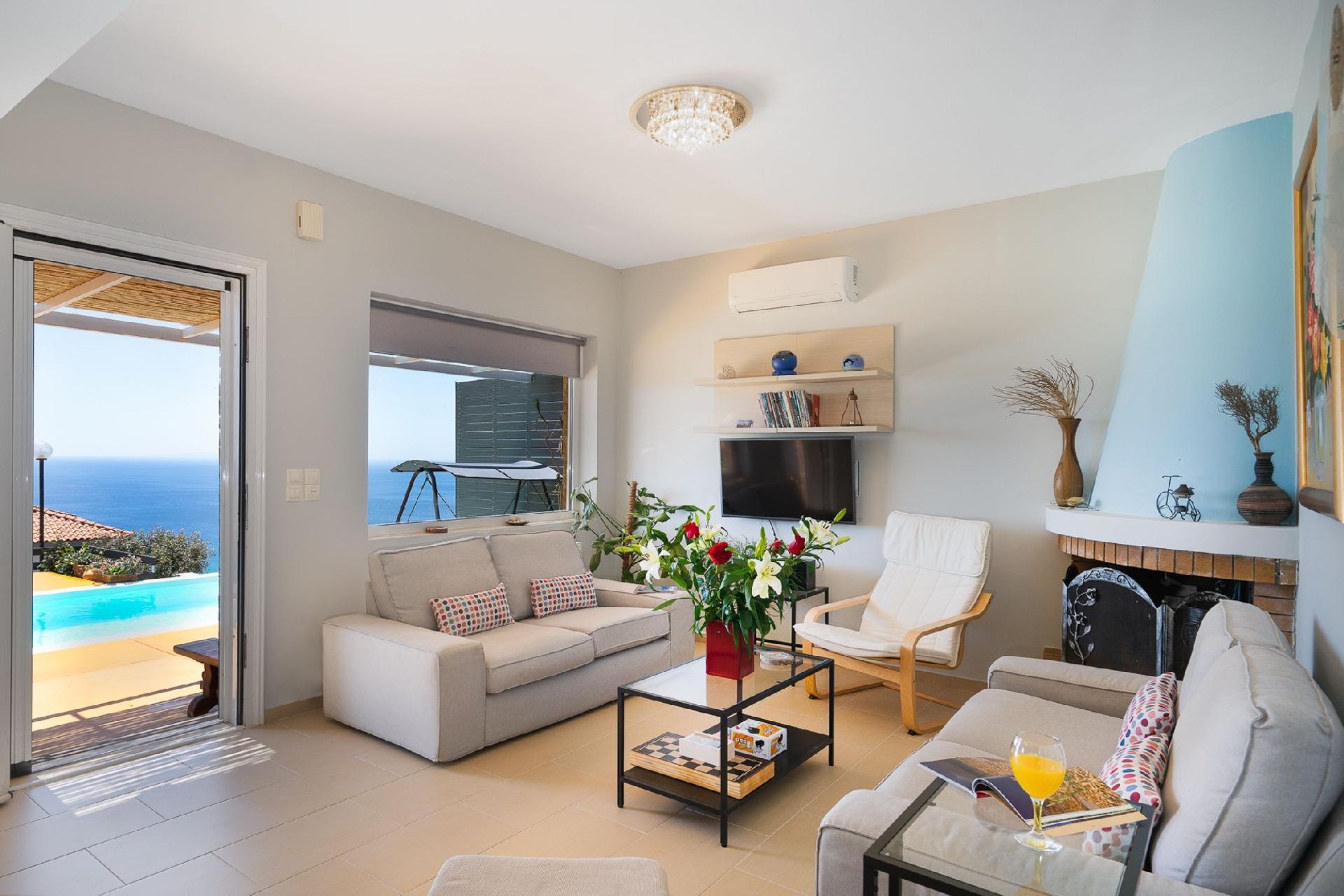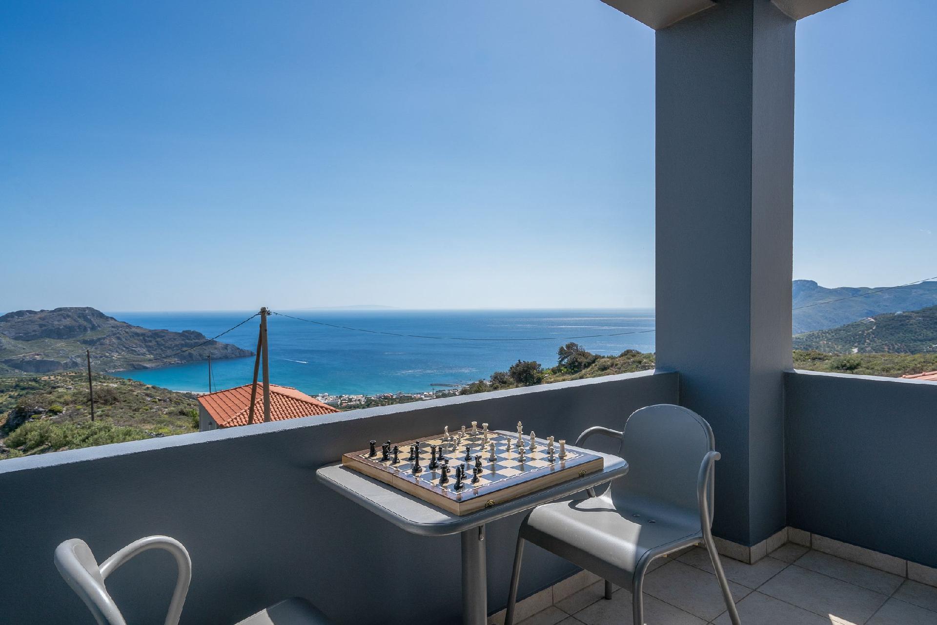 Mirthios Panorama Villa is a newly built three-bedroom villa that guarantees a very special holiday to remember. It’s light, it’s modern and the holiday-feel it exudes is tactile. This comfortable vacation villa boasts excellent facilities and access to a garden with an outdoor swimming pool and spectacular views of the bay of Plakias. Inside, Mirthios Panorama Villa is modern, bright and open with comfortable living areas and tastefully designed bedrooms for comfort with their own balconies. The beautiful kitchen is fully equipped and has everything you need to make a great dinner or a quick snack while enjoying the views from the windows. The open plan living area with cosy couches offers a beautiful setting to rest and unwind with your favorite reads, while the fireplace provides great heating if you’re visiting in winter months. Outside on the pool terrace, the Mirthios Panorama Villa boasts spacious grounds built on levels with a private infinity pool overlooking the vast Libyan Pelagos beyond. The roof relax lounge really shows off the panoramic views available from this great location with gorgeous Mediterranean views– the perfect spot for a sundowner while you soak in the sunset! Admire the panoramic views of the Libyan Sea and the wild rugged nature of the surrounding mountains from your balcony. This villa provides friendly service and its guest felt comfortable and more than welcomed.