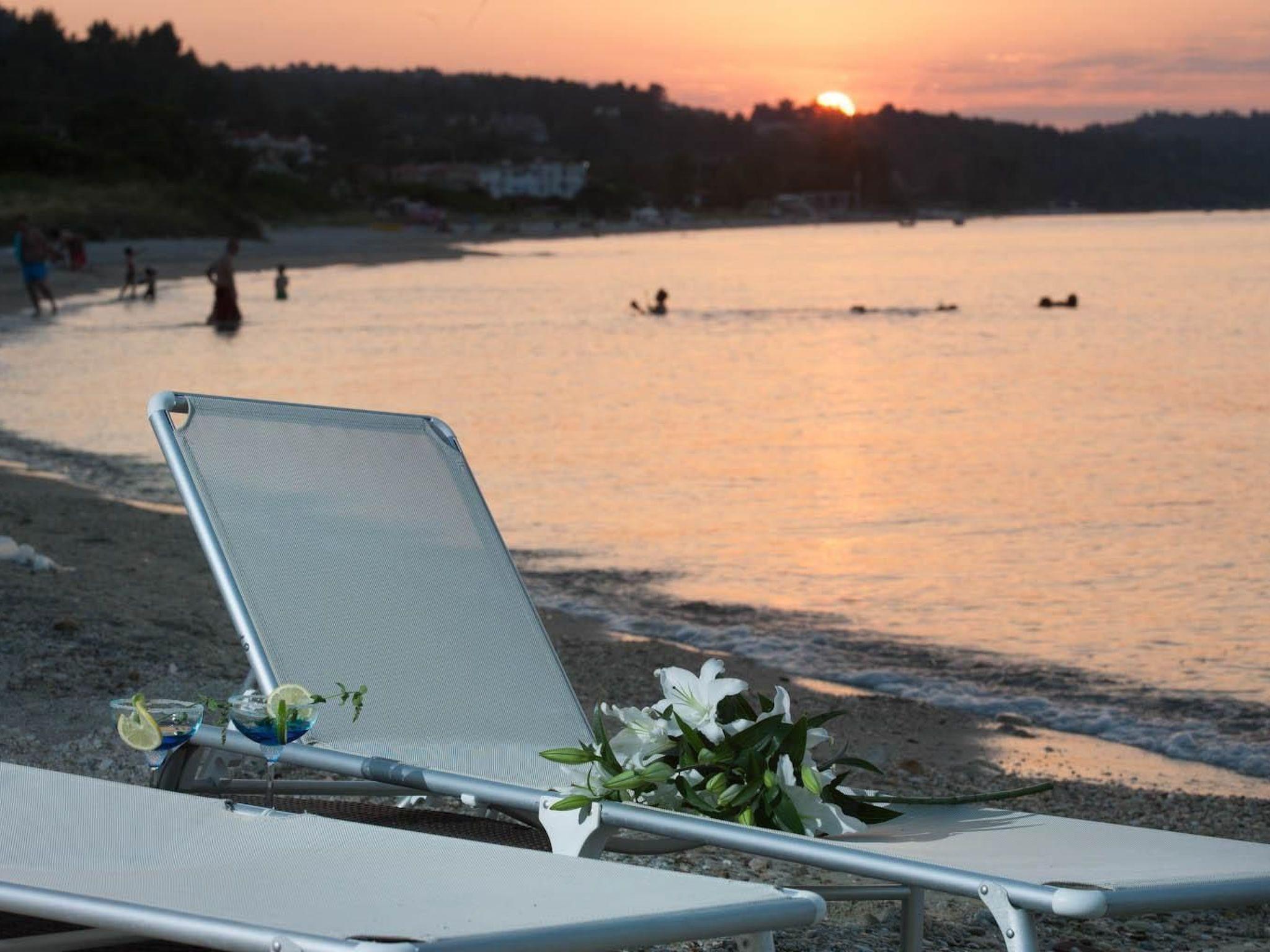 You are in a place where you can enjoy the sea breeze and the best Mediterranean climate. With private access to the beach, direct location to the crystal-clear bay with sunrises and sunsets, surrounded by idyllic countryside and several cycling and hiking trails. The ideal retreat from the hustle and bustle of modern life. Would you prefer to enjoy nature rather than water sports such as water skiing or windsurfing? You can still have a wonderful time in the area surrounding your accommodation, mountain biking, cycling tours, hiking, golf, mini golf, bowling, and so on. In general, you can see, hear, smell, taste and feel Greek culture in Halkidiki. When travelling around the peninsula, you can hardly get enough of the visual attractions that the natural landscape has to offer. Green pine forests alternate with golden flat sandy beaches, green meadows with olive and pistachio trees, steep coasts with extensive vineyards. You will be accompanied by the scent of herbs from the lush vegetation, birdsong and fresh, iodised sea air. For history buffs, there are also numerous museums, archaeological sites and artefacts to explore to familiarise you with ancient Greek culture. Take a trip to Kassandra, where the traditional market takes place, to Meteora, to the Pella theatre and open-air concert, to the ancient archaeological site of Olynthos or to the famous cave in Petralona. Athitos, a newly awakened, traditional stone-built village with cobbled alleys and marvellous panoramic spots and bathing bays, is also worth a visit. The town centre is approx. 700 m away on foot for shopping facilities.