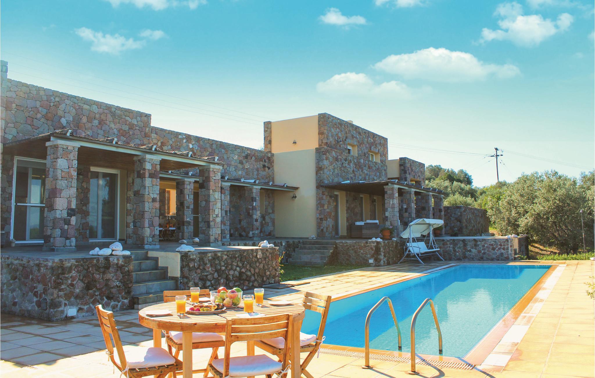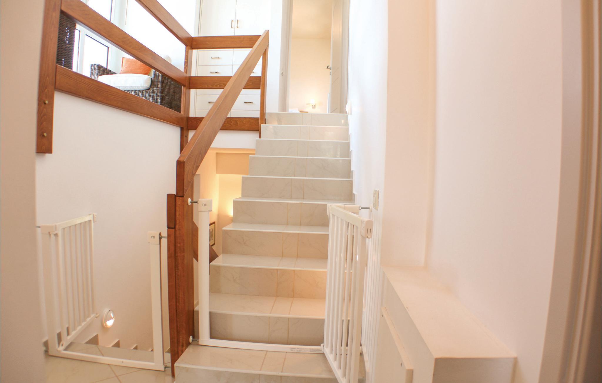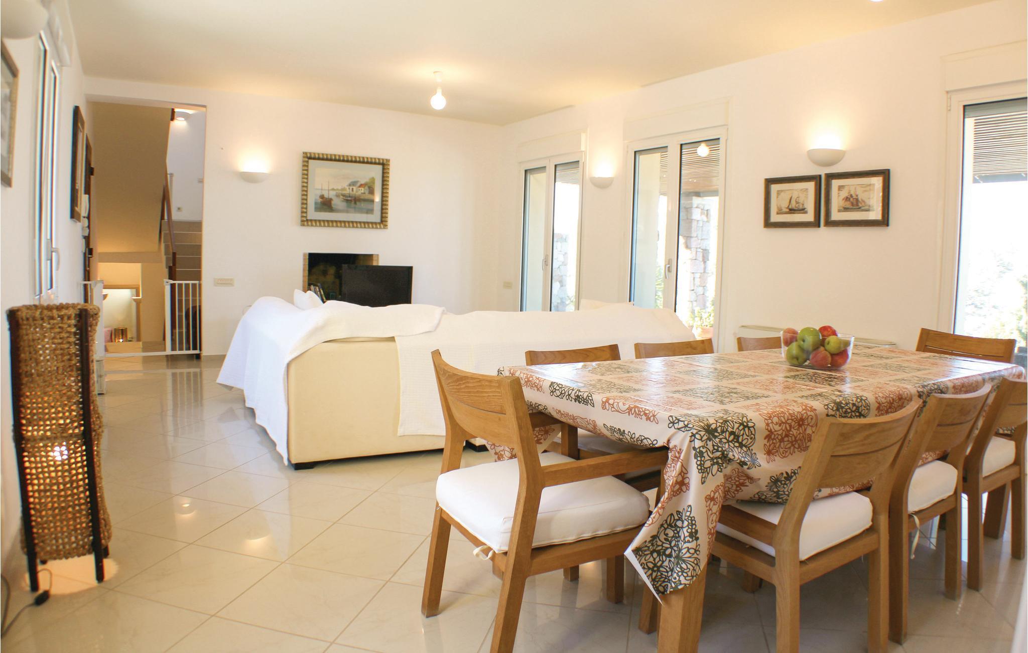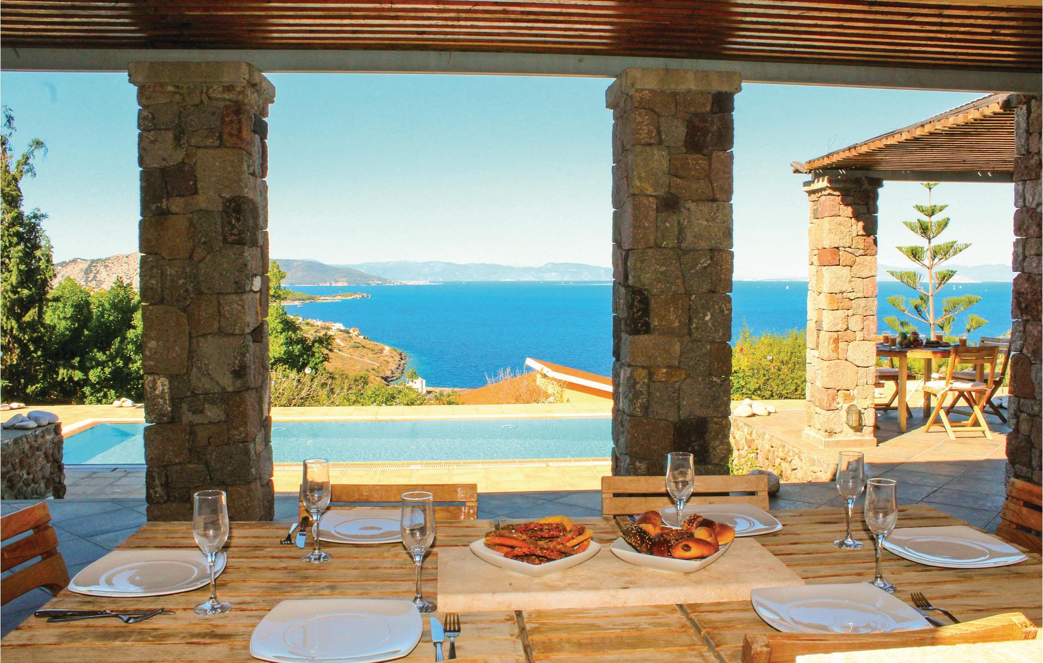 Das Anwesen verfügt über sechs Schlafzimmer (für bis zu zwölf Personen), fünf Badezimmer, zwei Küchen und ein geräumiges Wohn- und Esszimmer. Es verfügt über eine schöne überdachte Terrasse mit Essbereich, auf der Sie sich entspannen können, während Sie die atemberaubende Aussicht auf das Meer und den fantastischen Sonnenuntergang genießen. Zum Strand sind es nur 500 m.