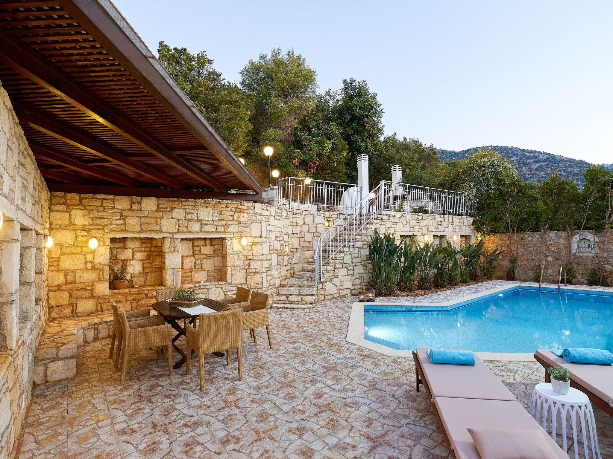 They are within the great region of the beautiful bay of Bali, one of the most favourite tourist resorts of the sunny Greek island of Crete. They are close, as well, to the Northern Highway of Crete at a distance of 39,5 km from Heraklion and of 37,5 km form Rethymno. Thus, they offer access to many tourist attractions, beaches, big cities, airports, harbours/ports, etc. You can visit on foot or by car the calm beach at the bay of “Kalo Chorafi” which is at a distance of only 600 m from the Villas. You can swim at the light blue transparent waters of the secluded beach enjoying the Cretan sun under the umbrellas and the sunbeds provided by us.Newly built (2010), fully detached sea view holiday villa with a private swimming pool, sunny terrace with a traditional stone grill and a beautiful garden