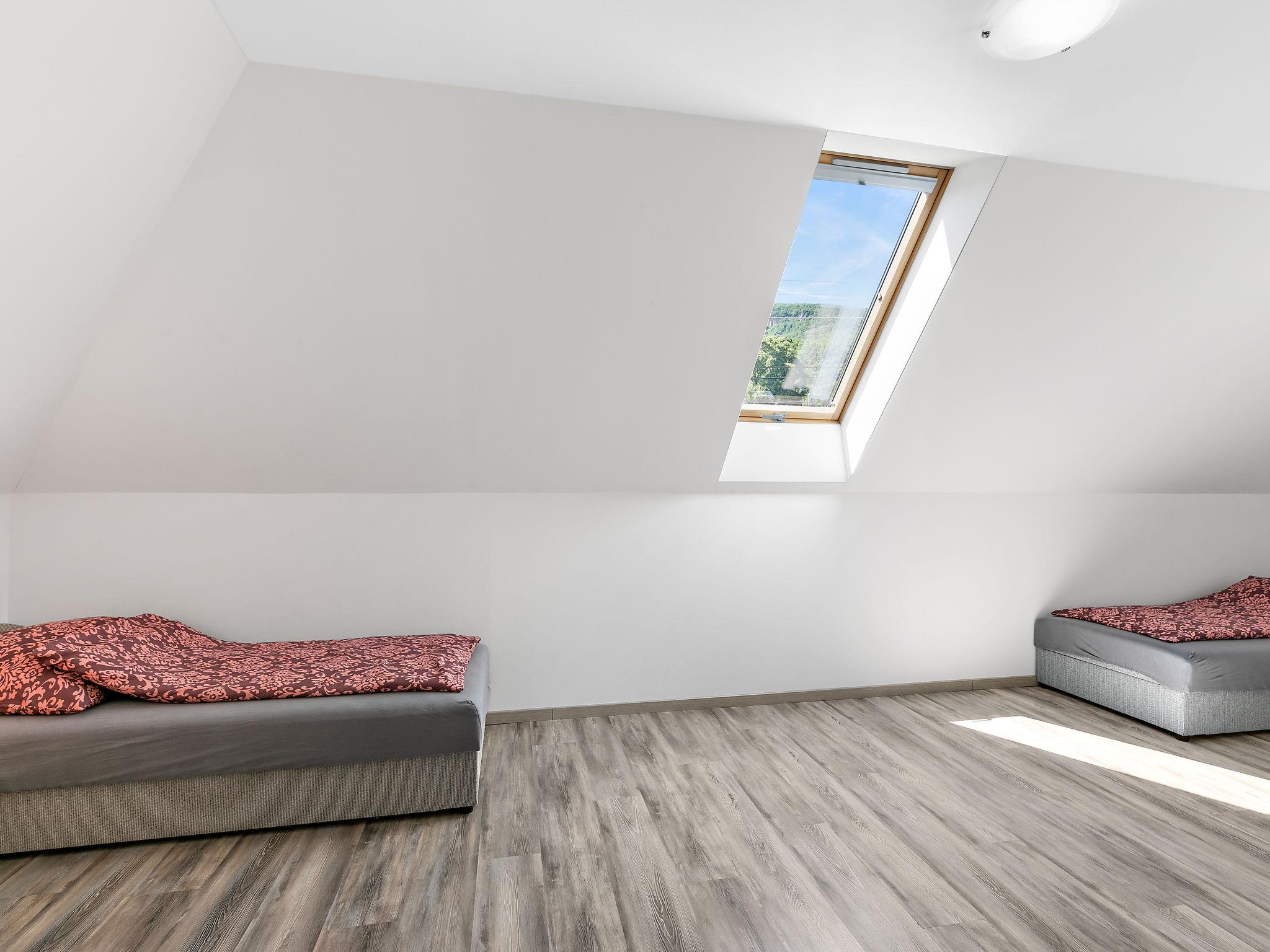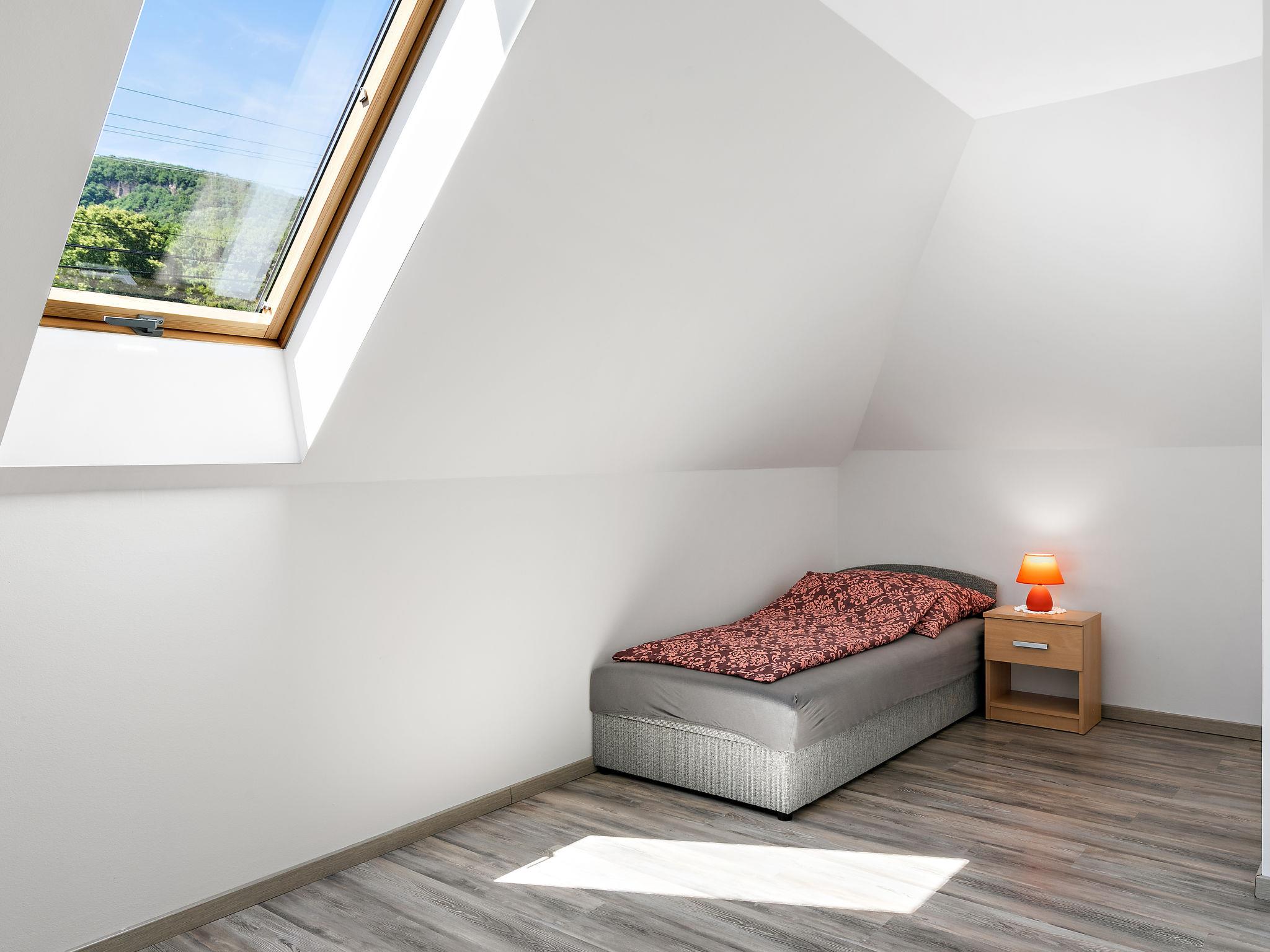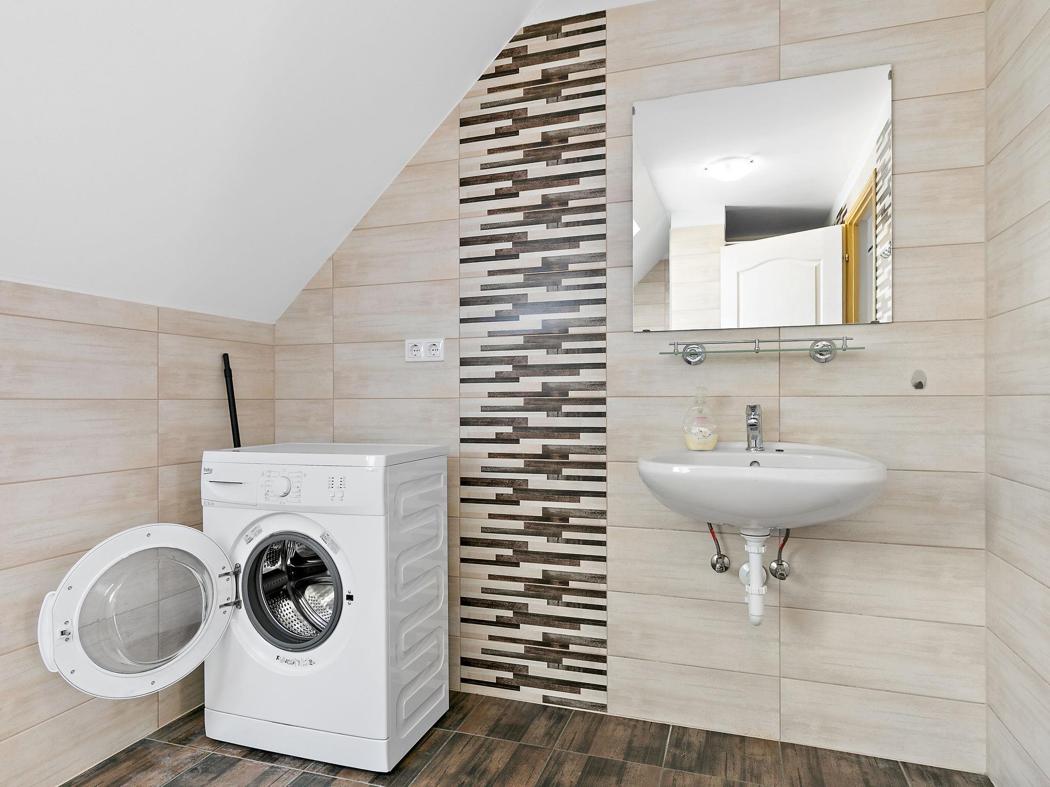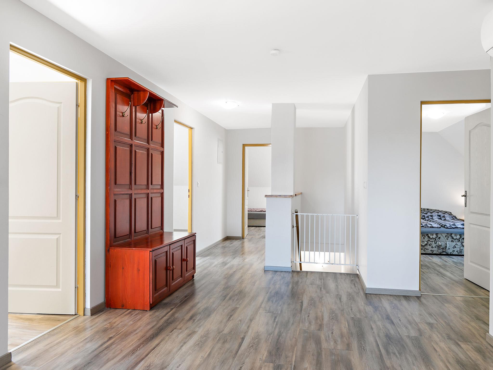 "Beate", 5-room apartment 120 m2 on 1st floor. With sloping ceilings, modern furnishings: living room with satellite TV and air conditioning. Exit to the balcony. 2 rooms, each room with 2 beds (90 cm, length 200 cm). 2 rooms, each room with 1 french bed (160 cm, length 200 cm). Open kitchen (oven, dishwasher, 4 ceramic glass hob hotplates, toaster, kettle, microwave, electric coffee machine) with dining table. Shower/WC, sep. WC. No heating option. On the lower ground floor: kitchen (4 hot plates, oven, dishwasher) with separate WC. Exit to the garden. Balcony, patio roofed. Balcony furniture, barbecue, deck chairs (6). Facilities: washing machine, baby cot. Internet (WiFi, free). Please note: non-smokers only. Private entrance. MA19011110