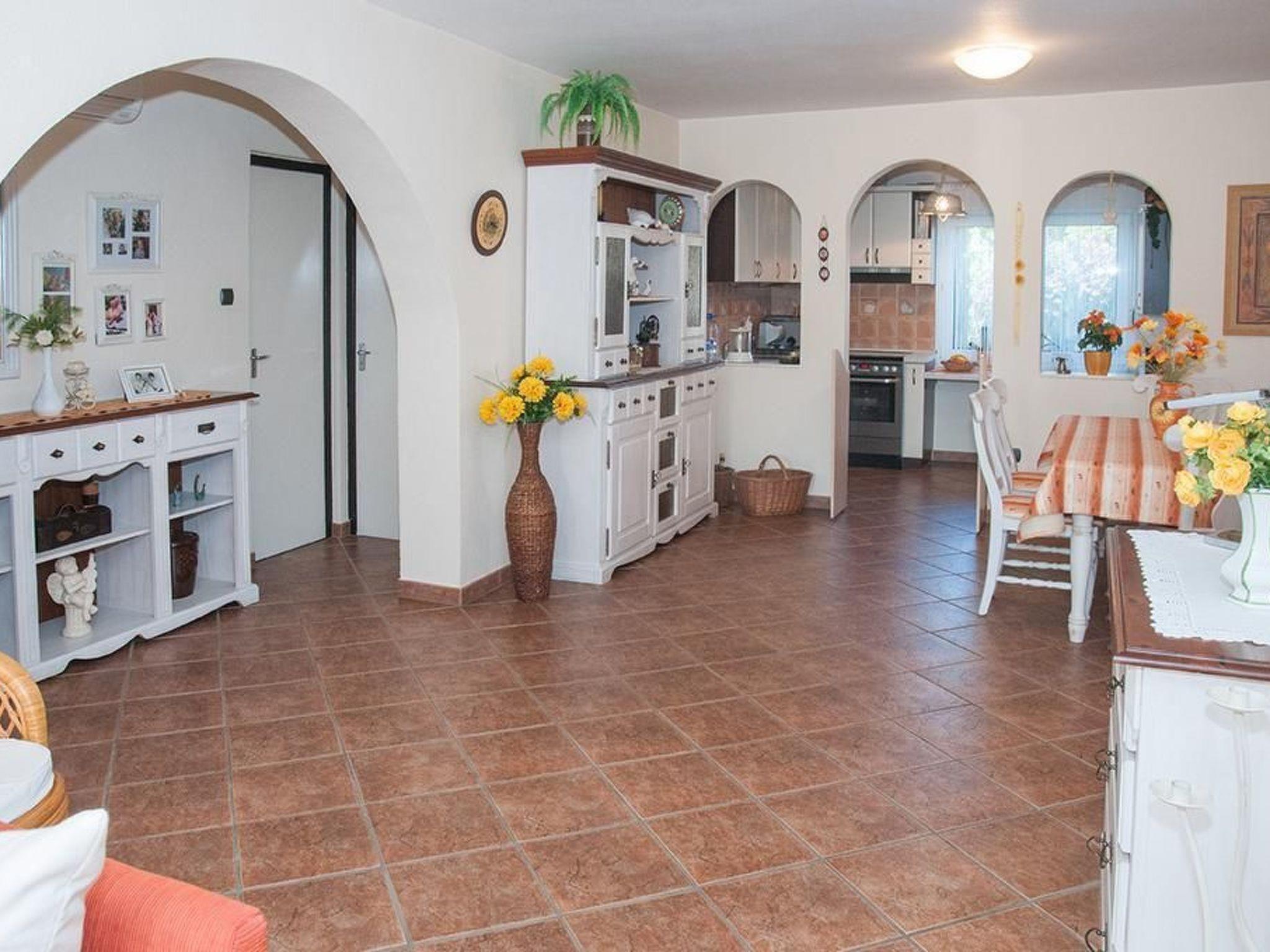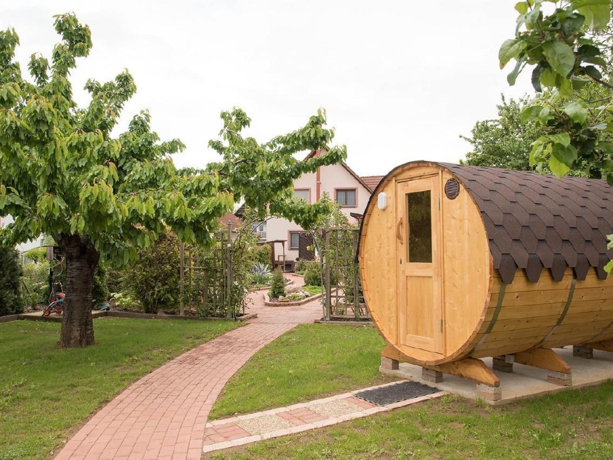 I rent in our beautiful holiday home "Urlaubstraum" in Balatonbereny at the southwestern Balaton (15km from Keszthely) an approx. 100sqm ground floor holiday flat with covered terrace all year round, as also heatable for 4-6 persons, with pool, air conditioning, 600 m lake, sauna in the garden, trampoline, deckchairs, children's swing, parking on the property, WLAN, TV. Bathroom with bath and shower plus guest toilet. As already mentioned, this is the ground floor of a house with two flats. The flats are of course completely separate and can be reached via a shared entrance. Of course, the house is completely equipped with mosquito protection. Beautiful, quiet holiday resort with a lovely lido suitable for children and a nude beach 2 km away. In the village and the neighbouring villages there are restaurants for every taste. The house is in mint condition with high-quality furnishings. Washing machine, bed linen, kitchen, two bedrooms. Can be extended with a double sofa bed in the living room and a cot. Bicycle hire possible subject to availability. Barbecue possible on request. Keszthely 15km, Heviz 20km, Zalakaros 25km. Small Lake Balaton 20km. A holiday for people who don't want to party every day. Minimum booking 7 days. Sauna use possible on request. Sauna towels can be rented for a washing fee. Also very suitable in winter for people looking for peace and relaxation. Also very suitable as a base for a spa trip to Heviz, Zalakaros and other thermal baths. It is also popular for bookings during the grape harvest and Christmas/New Year's Eve. We will be happy to make you an offer for off-season stays and longer stays. If there are more than 6 of you, or if there are no more dates available for this house, we have another property with two houses of the same quality and facilities in the same village. Just ask for it. Attention! Please note that according to EU law you must also carry a child's identity card for children of all ages. This may be required at borders and must also be available for registration with the tourist authorities. Persons of any age without ID must be refused entry and please also note that we have to collect a tourist tax for the municipality for persons aged 18 and over. This may vary in amount and will be collected in cash when the keys are handed over. We wish you a nice holiday.short descriptionOther : Non smoking house.Brief description 1Number of kitchens : 1Bedroom 1Other bedroom facilities : wardrobe,bedside cabinetsBedroom 2Other bedroom facilities : wardrobeBathroom 1Other bathroom facilities : toilet extra roomSurroundingsLeisure facilities : bike hireSports facilities in the neighbourhood : golf course, cycling toursSurroundings 1Excursion possibilities : Heviz,Zalakaros,KeszthelyLocation description : Very clean and well-kept holiday resort with the daily shopping facilities, gastronomy, lido and in about 2km nude beachOther sports and leisure facilities : Golf about 20kmGarden and outdoor facilitiesLeisure facilities at the property : Outdoor pool shared use, sauna, swimming poolGarden equipment : Garden furniture available, barbecue, playground equipment