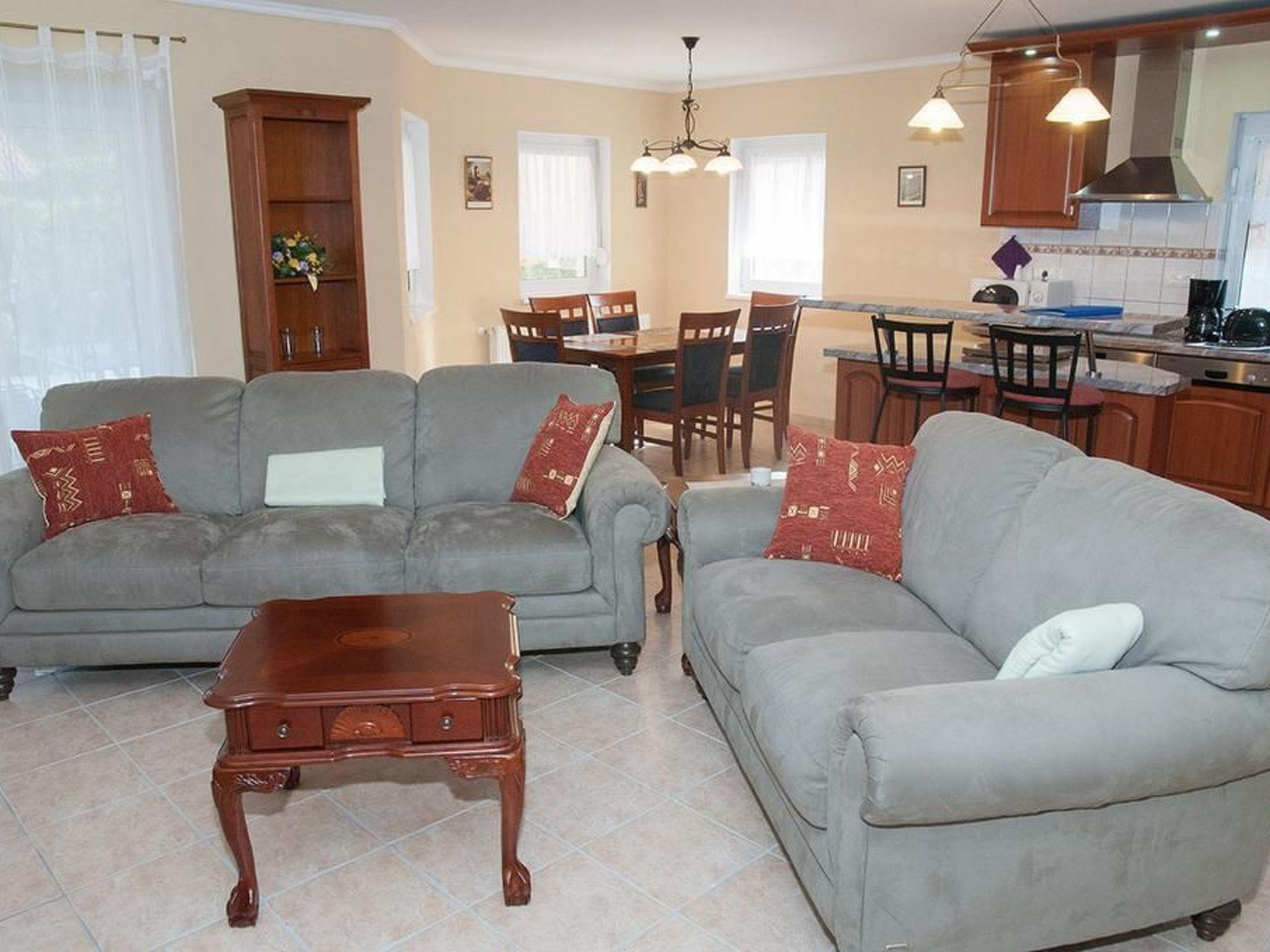 Are you looking for a high-quality holiday home on the south side of Lake Balaton in Balatonbereny? We offer you our holiday home "Steffi G" without the stress of the surrounding area and yet within easy reach of everything you need for a good holiday, such as restaurants, shops for your daily needs, post office, doctor, train, bicycle hire. Please note that there are only four normal beds available. A possible fifth and sixth person sleeps on a sofa bed in an extra room, a seventh and eighth person sleeps on mobile guest beds. A cot for children is also available. The house is equipped with W-LAN. Please note that we are obliged to collect a tourist tax for the municipality per day and person aged 18 and over in cash on arrival. The amount of the tourist tax may vary. Of course, some bicycles are also available in your holiday home, subject to availability. You can also use a gas barbecue on request. For colder days we have a beautiful barrel sauna in the garden for up to 8 people, which is very popular. Our manager manages the keys for this and will also provide you with the necessary sauna towels for a washing fee per towel. Please do NOT make any infusions in the sauna. You only pay for electricity if the total electricity consumption during your holiday exceeds 200kwh. There is a small charge for over this amount. Garden, pool and sauna are used by both holidaying families on the property. A lido can be found 800 metres away. For friends of naturism you will also find a very nice lido 2km away. The cycle path around Lake Balaton also leads through our village. Keszthely, the largest town on Lake Balaton, is 15 kilometres away. It offers a lot of sights, a very nice lido, a really nice boulevard and of course all the necessary shopping facilities you can think of for your holiday. There is also a hospital there. And of course a lot of restaurants. Boats also leave from there across Lake Balaton. About 17 kilometres from Balatonbereny you will find the world-famous thermal spa Heviz. In 20km you will find another extremely beautiful thermal bath in Zalakaros and for friends of unspoilt nature the Kissbalaton area begins in 15km. You will find further suggestions in an information folder in the house on arrival. Your contact person, who will give you the keys, speaks German and will answer any questions you may have. Should you ever want to come to us with a maximum of 6 people, there is the possibility of renting another, also very high-quality holiday home for 4-6 people in the immediate vicinity of your house. Attention! Please note that according to EU law, you must also carry a child ID card for children of all ages. This may be required at borders and must also be available for registration with the tourist authorities. Persons of any age without ID must be turned back. We wish you a relaxing and stress-free holiday with us. If you like it, please feel free to visit us again. We would be delighted.