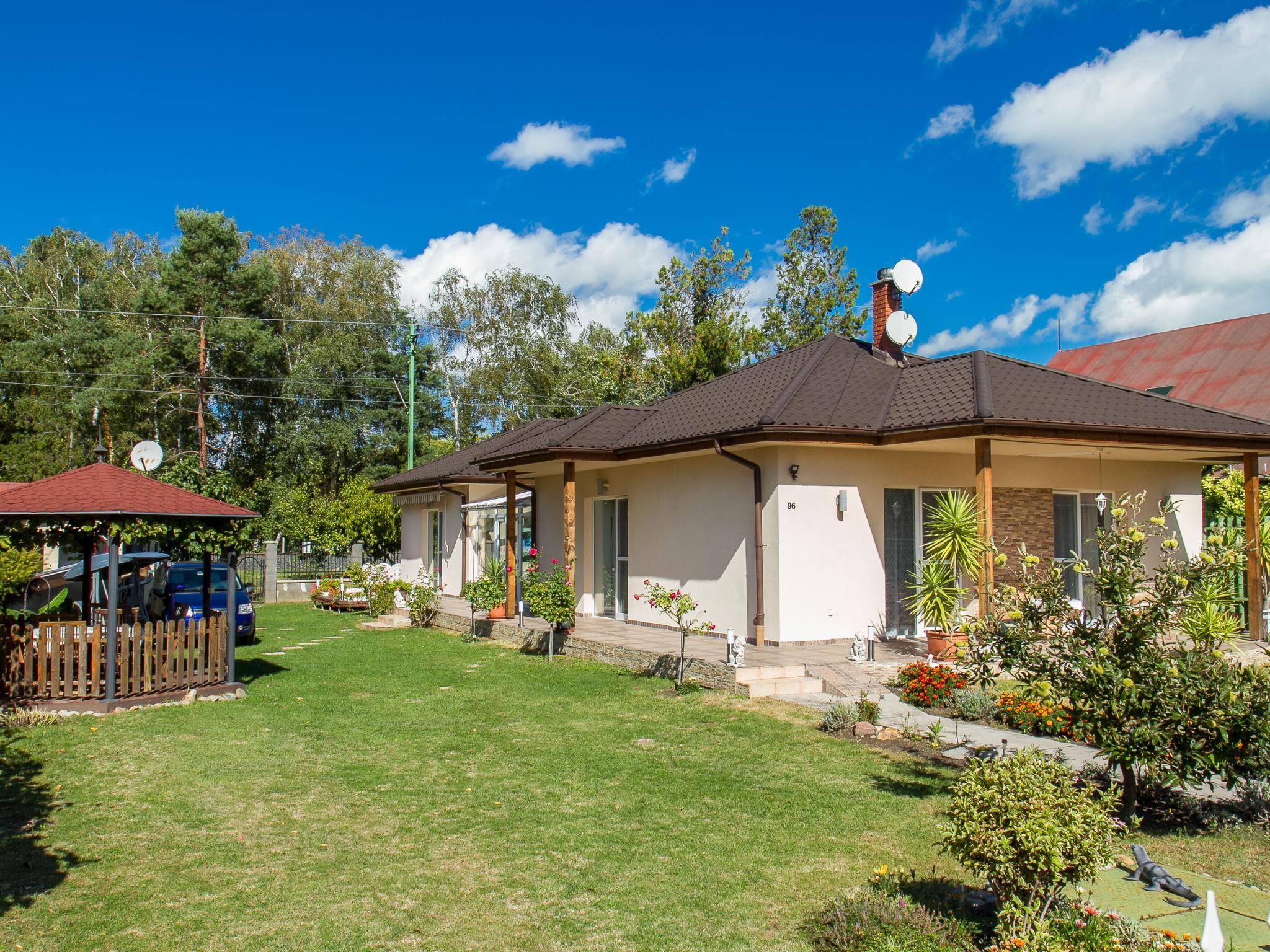 Balatonboglár: Modern, beautiful semi-detached house "Twin Combo". In the resort, 150 m from the lake. Private: property 300 m2, well-kept garden (fenced) with lawn and flowers. Patio. In the house: WiFi, washing machine. Grocery 150 m, restaurant 50 m, grass beach 150 m. Please note: railway line closeby.
