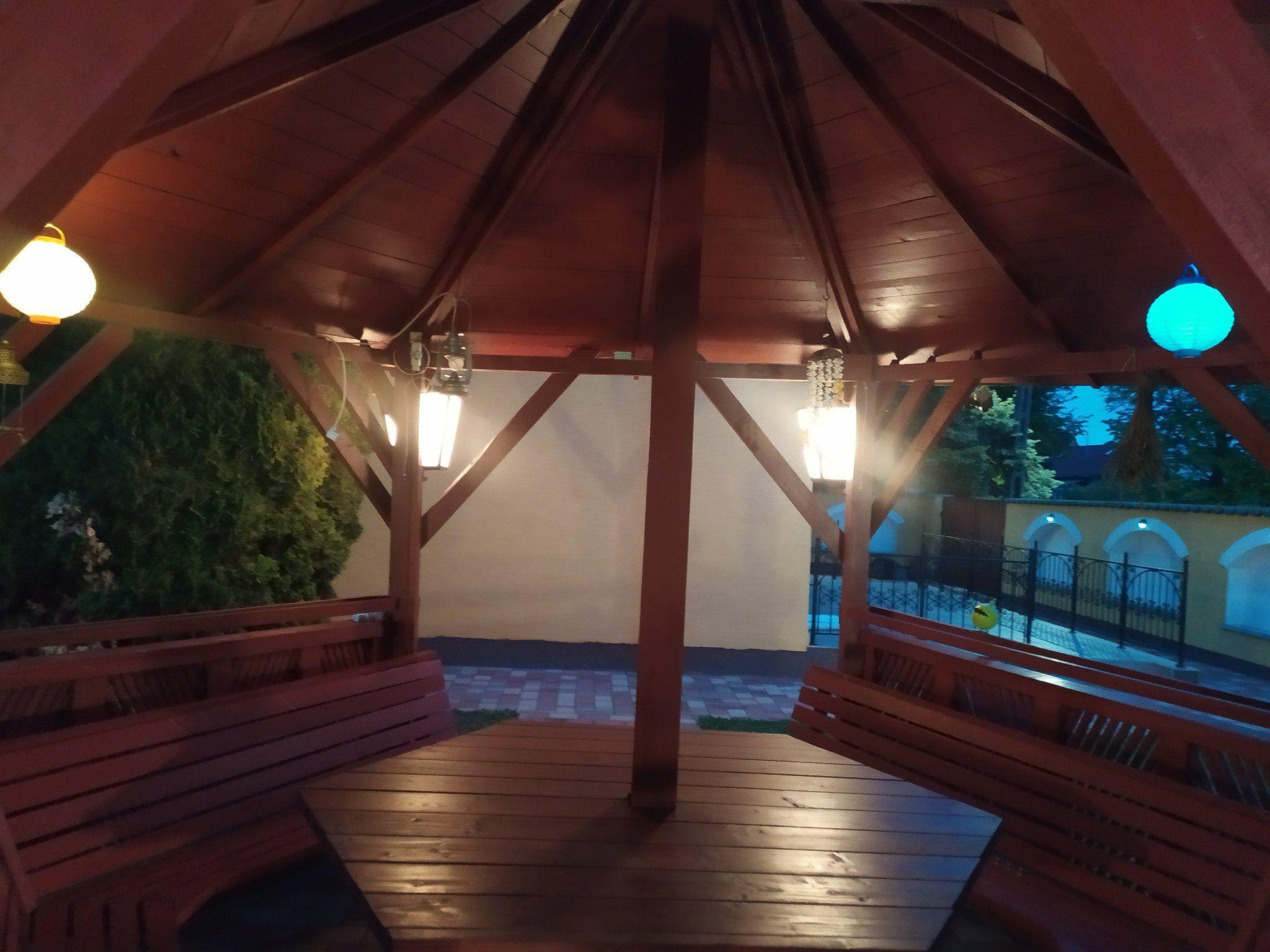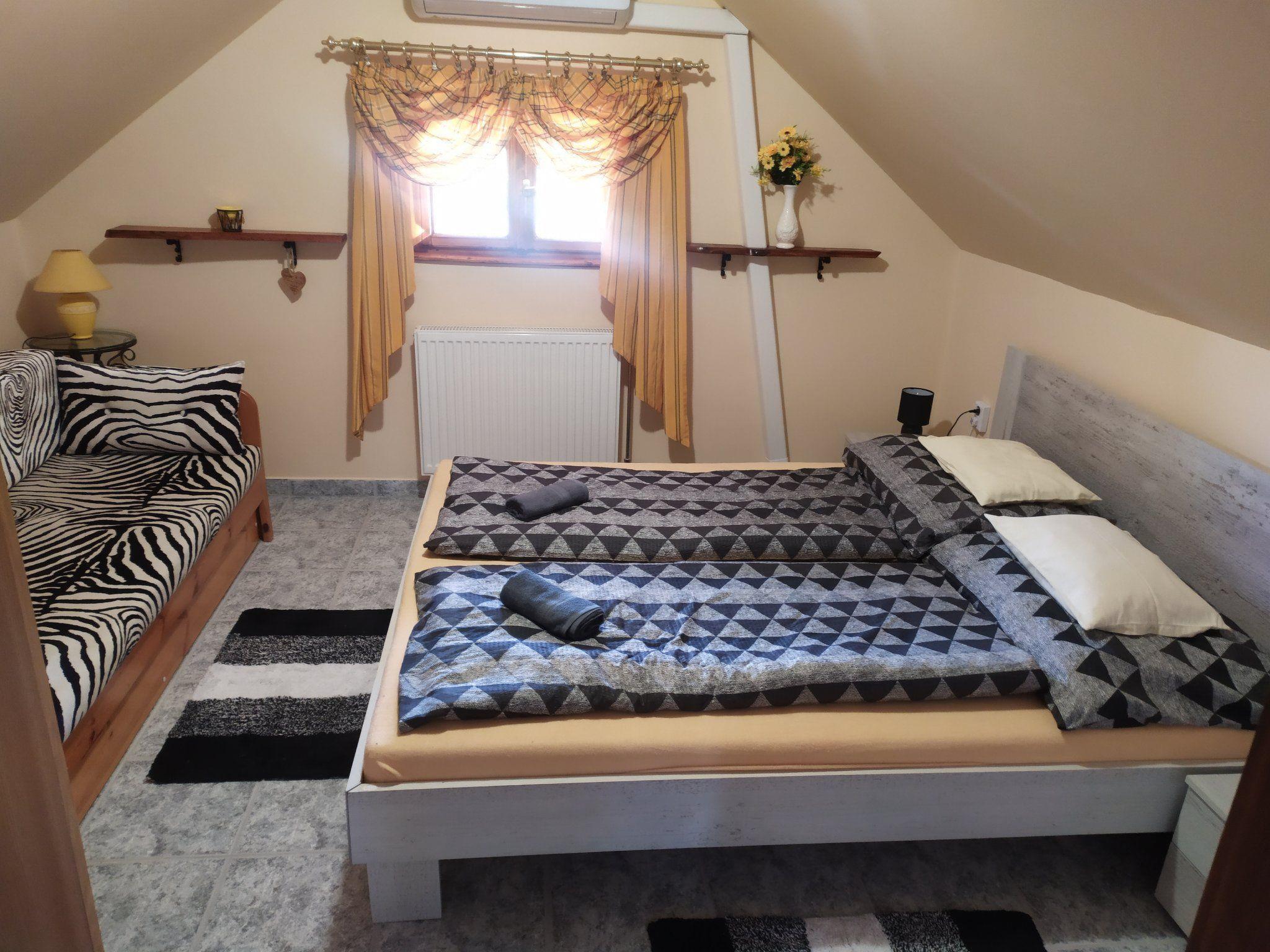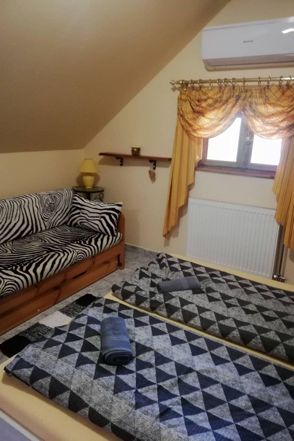 Location: Hungary, Lake Balaton, Balaton south shore, BalatonfenyvesNo. of persons: 16Living area: 300 m²Distances: Beach 700 m, shopping 200 m, restaurant 200 m, centre 600, railway station 600 m, bus stop 600 m.Ground floor: open spacious and nice combined living/dining room with sitting set, SAT-TV, W-LAN, with nice and well equipped kitchen and with sleeping possibility for 2 persons and with SAT-TV. 2 air-conditioned double rooms each with French beds. In the kitchen there is a gas cooker, 2 coffee machines, fridge, microwave, dishwasher, kettle, toaster etc. Bathroom with shower, separate WC. There is also a washing machine in the bathroom. Upstairs: open-plan spacious and beautiful combined living/dining room with sofa, W-LAN, with beautiful and well-equipped kitchen and with sleeping possibility for 2 persons and with SAT-TV. 2 air-conditioned double rooms each with French beds. The kitchen is equipped with a gas cooker, fridge and microwave. Bathroom with bathtub and bidet, separate WC. Attic: 2 air-conditioned double rooms each with French beds. Bathroom with small bathtub, separate WC. Balcony.Equipment: gas cooker, coffee machine, fridge, microwave, dishwasher, kettle, toaster. Washing machine. SAT-TV, W-LAN, Netflix (all available to guests at no extra charge). All bedrooms are air-conditioned. Terrace with garden furniture. Balcony. Gazebo with seating. Nice barbecue area.info: This new tasteful family house invites you to a relaxing holiday. Sophisticatedly furnished house for discerning guests in a sunny and idyllic location, in a quiet street. Enclosed, well-kept large garden plot for sole use. Owner does not live there. If you don't feel like eating out in one of the many good restaurants, you can also barbecue in the garden. Parking is available in the courtyard (3 cars).included: final cleaning, bed linen, water, gas and electricity.pets: not allowed.