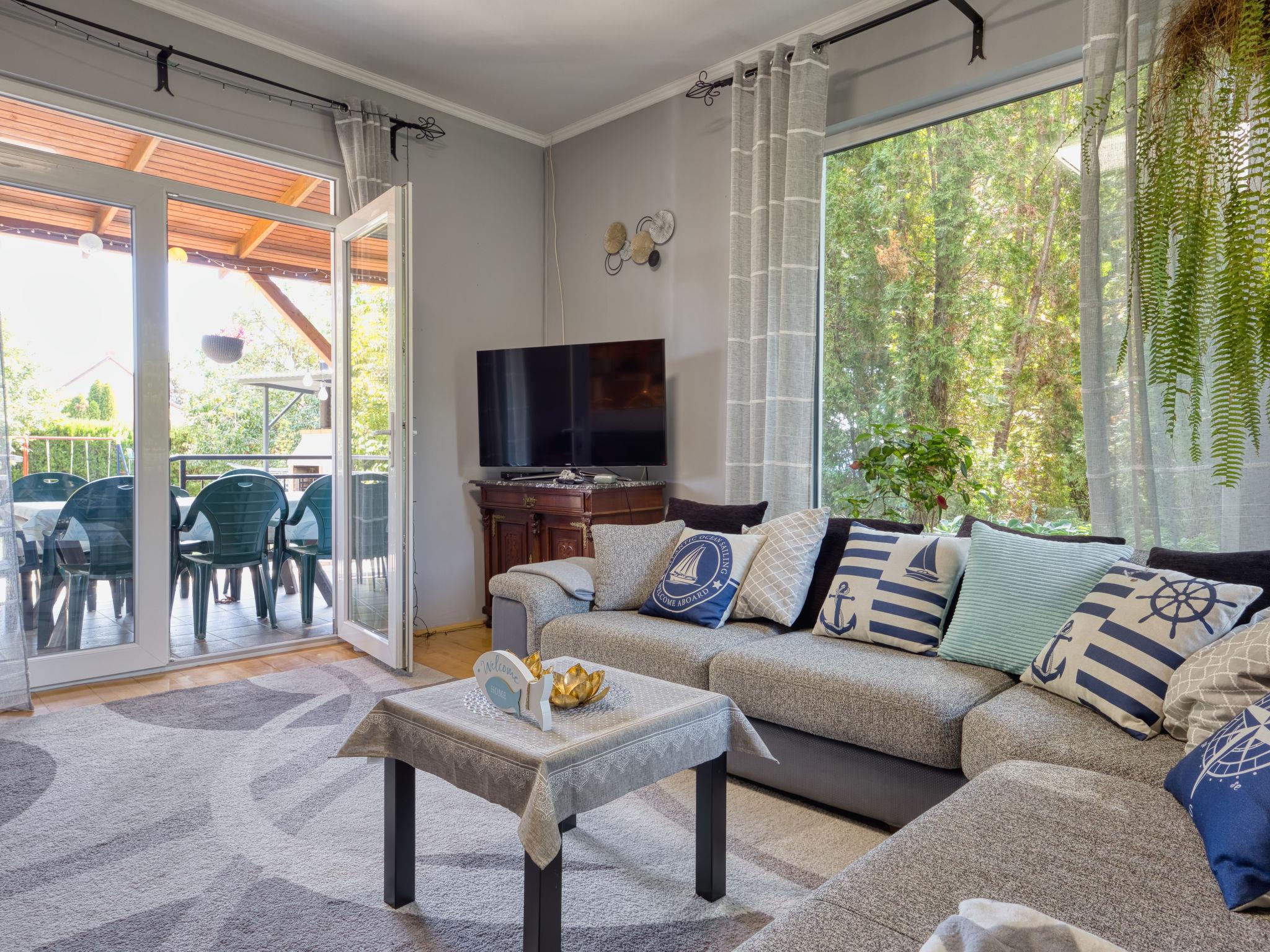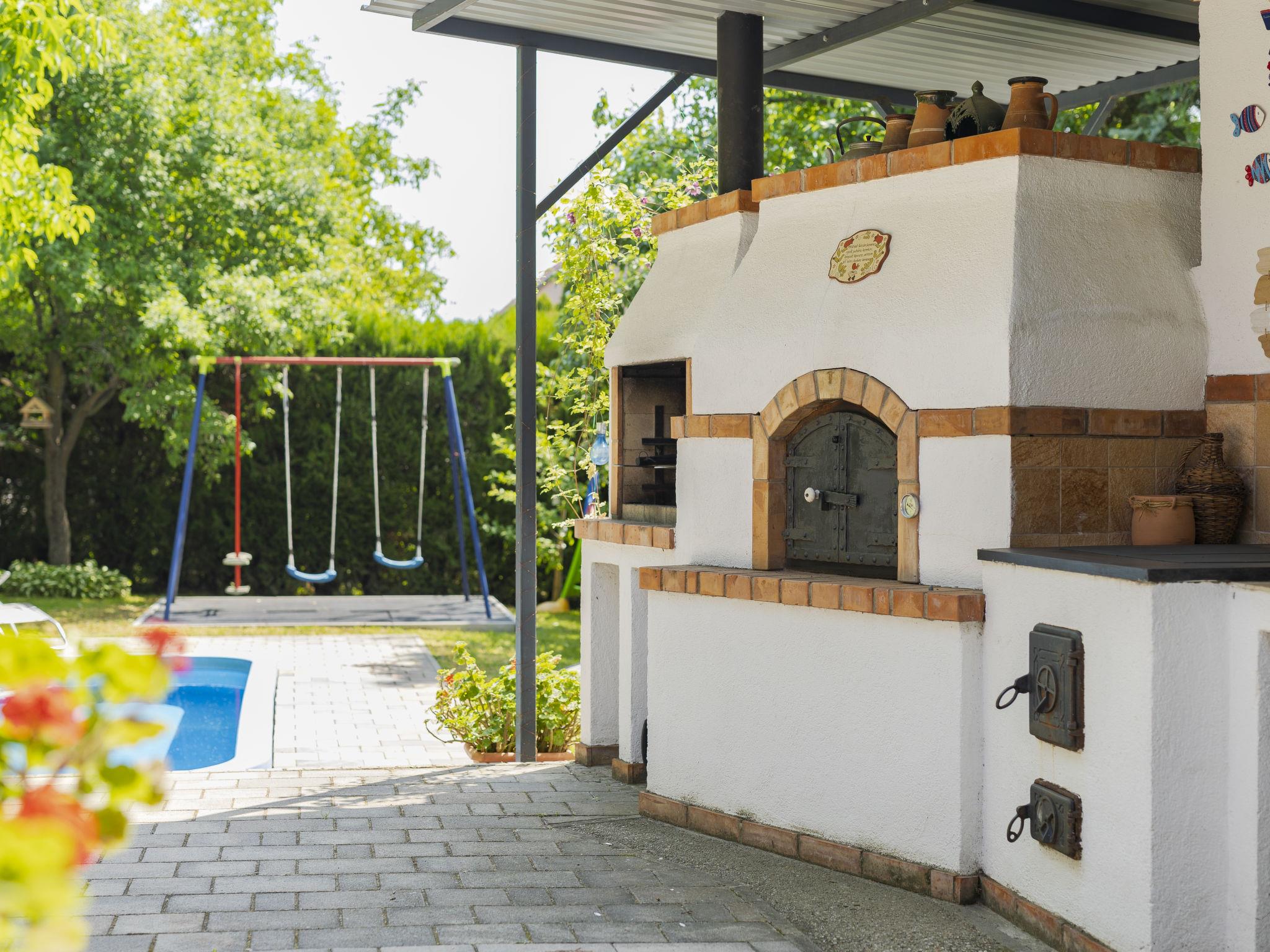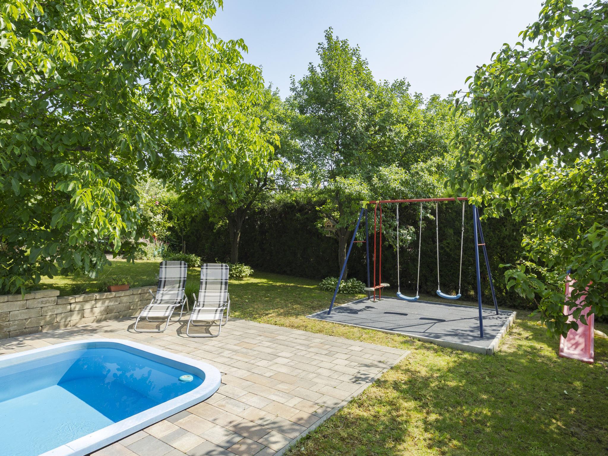 Balatonederics 12 km from Badacsony: Beautiful single-family house "Emöke", detached. In the district of Balatonederics 500 m from the centre of Baltonederics, 5 km from the centre of Balatongyörök, 12 km from the centre of Keszthely, in the residential district, 1.5 km from the lake, 1.4 km from the beach. Private: property 1'000 m2 (fenced), well-kept garden with lawn and wildlife garden, swimming pool (4 x 2 m, depth 120 cm, seasonal availability: 15.May. - 25.Sep.). Barbecue, children's playground (swing, sandbox). In the house: air conditioning. Stepped path (5 steps) to the house. Parking on the premises. Grocery 500 m, supermarket 14 km, restaurant 600 m, thermal baths "Hévíz" 20 km. Tennis 8 km, minigolf 8 km, riding stable 4 km, cycle lane 1.2 km, children's playground 550 m. Nearby attractions: Tapolca Lake Cave Visitor Centre 13 km, Festetics Nature House visitor center 13 km, Szigliget Castle 6 km, Keszthely Giant Wheel 15 km, Hévíz Thermal Bath 20 km, Festetics Castle 15 km.