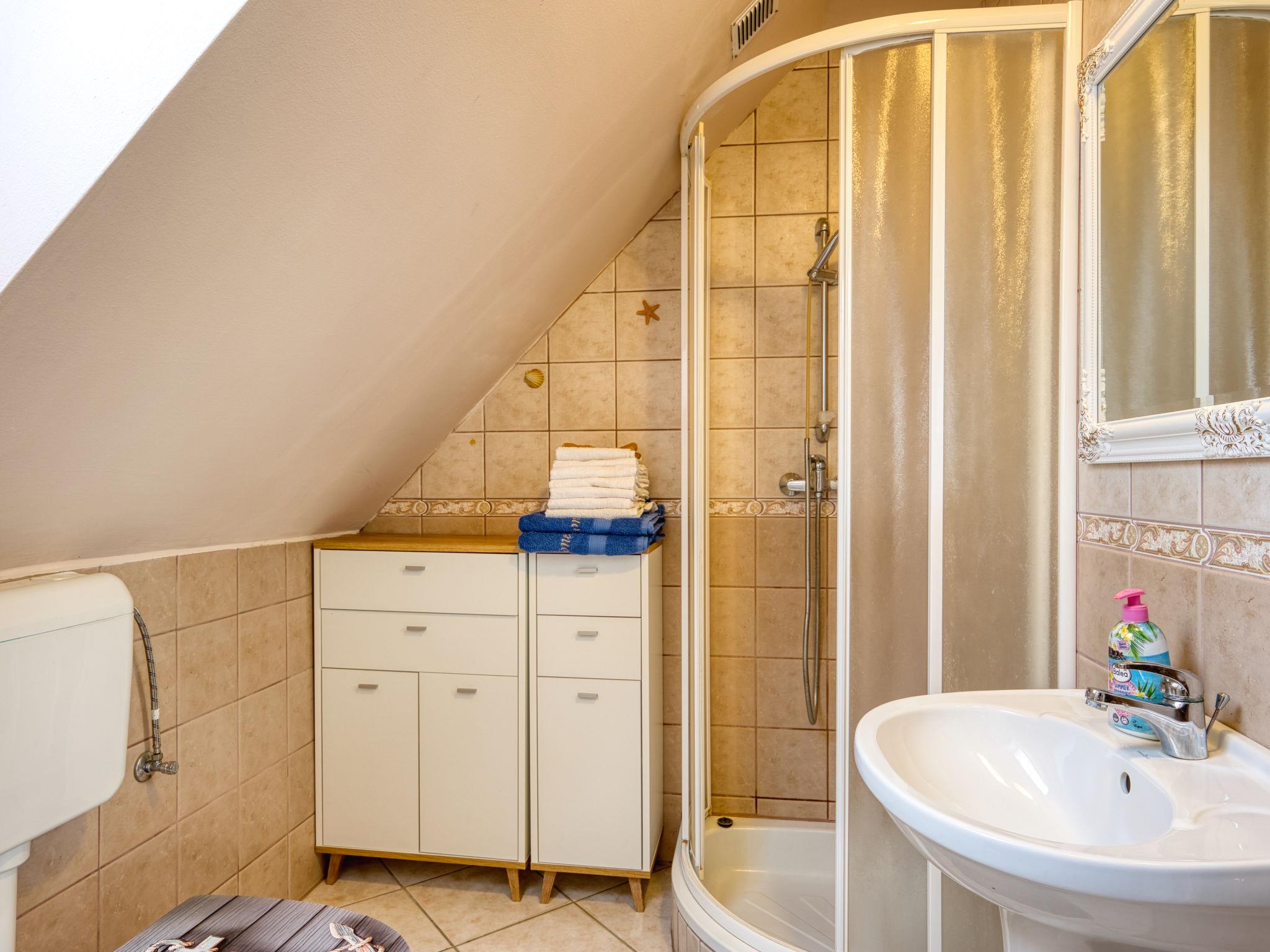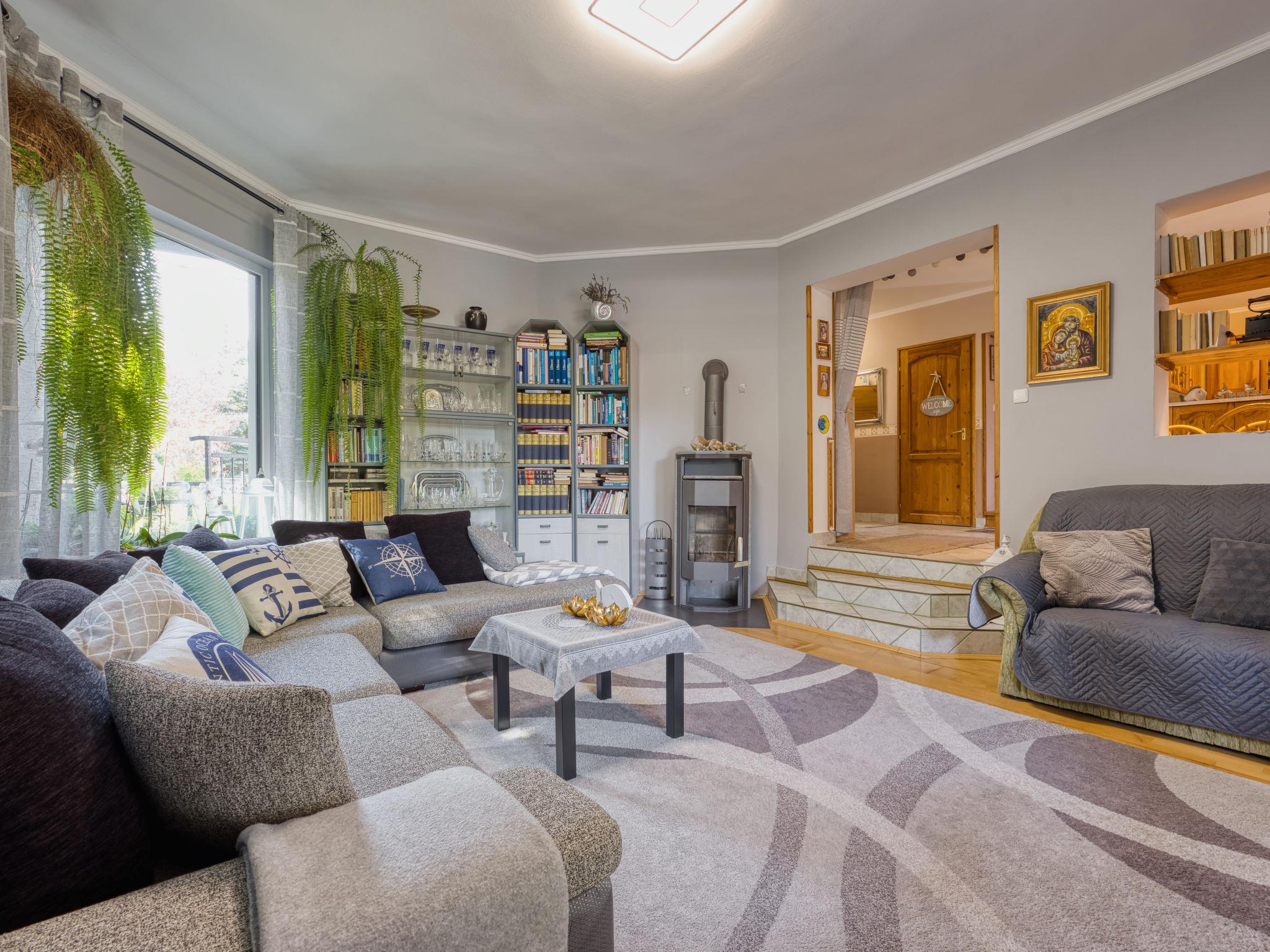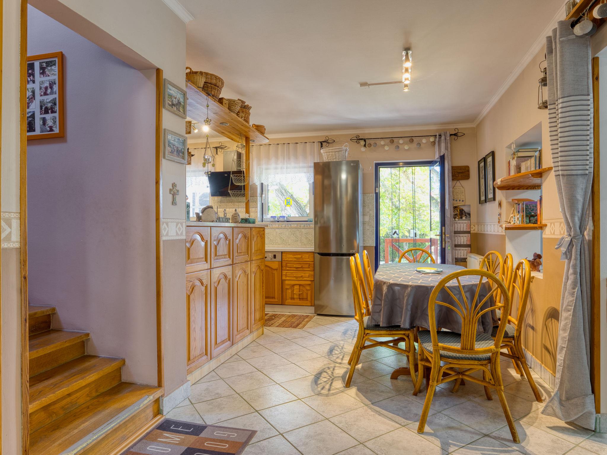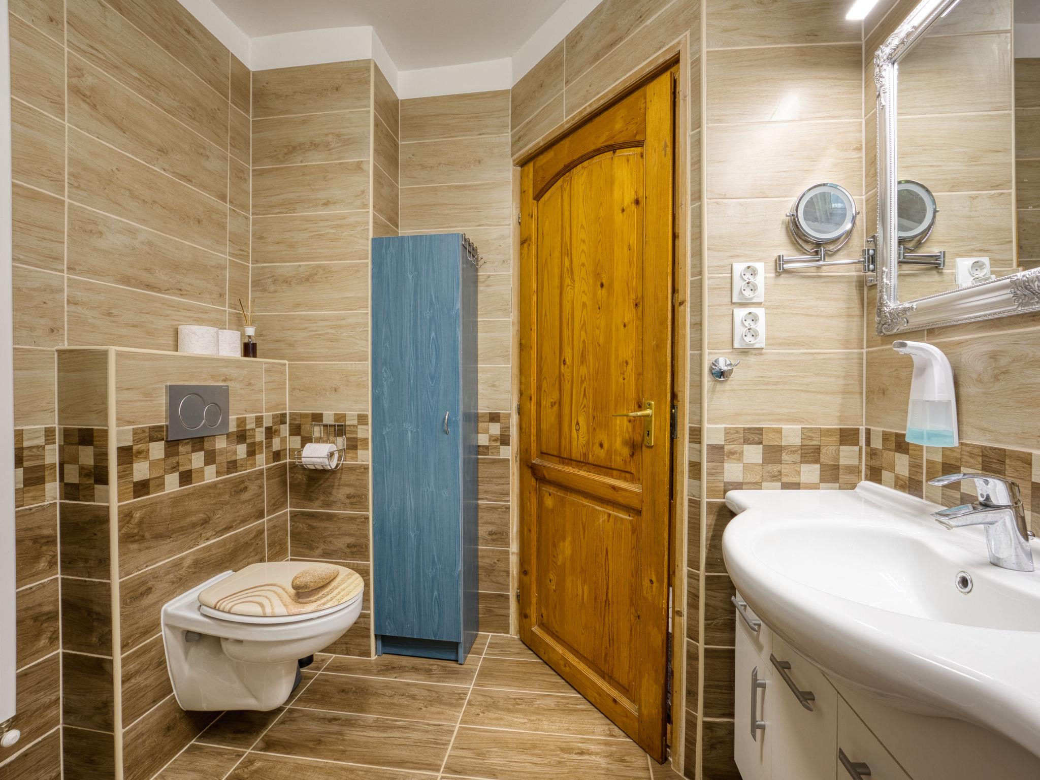 "Emöke", 7-room house 130 m2 on 2 levels. Cosy furnishings: living room with satellite TV (flat screen). Exit to the terrace. 1 room with 1 french bed. Open kitchen (oven, dishwasher, 4 ceramic glass hob hotplates, toaster, kettle, microwave, freezer, electric coffee machine) with dining table. Exit to the terrace. Shower/WC, sep. WC. No heating option. Upper floor: living room. 2 rooms, each room with 1 french bed (180 cm, length 200 cm). 1 room with 1 french bed (180 cm, length 200 cm). Exit to the balcony. 1 room with 1 sofabed. Exit to the balcony. Small kitchen (3 gas rings). Shower/WC. No heating option. Carpet. Balcony, terrace roofed, patio. Terrace furniture, barbecue, deck chairs (6). Facilities: washing machine, mosquito net, children's high chair, baby cot. Internet (WiFi, free). Please note: non-smoking house. MA19016218