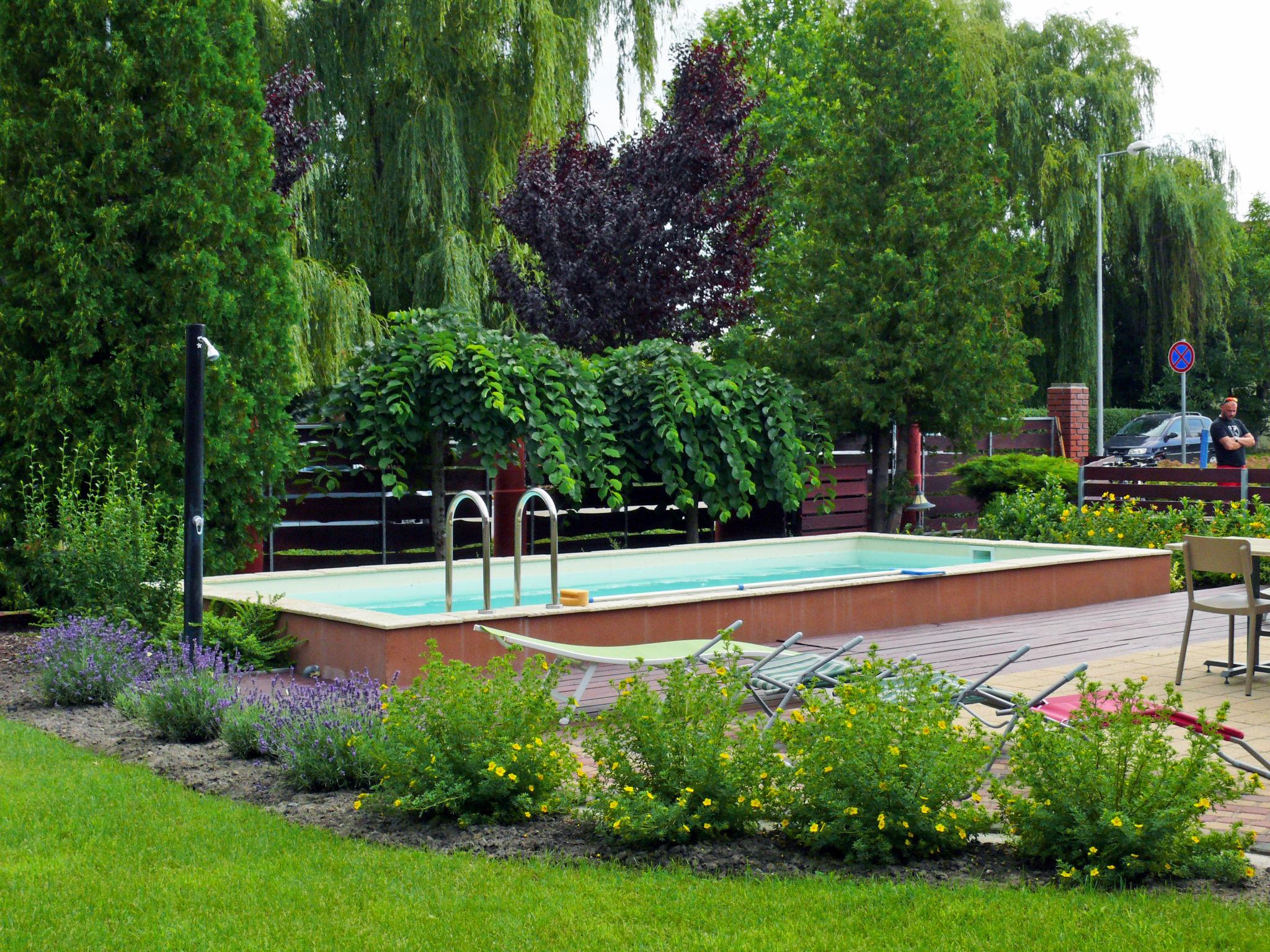 Balatonkeresztúr 20 km from Keszthely: Modern, beautiful apartment block. In the resort, 300 m from the centre, 500 m from the lake. For shared use: beautiful, well-kept garden 400 m2 (fenced), swimming pool (6 x 3 m, depth 120 cm, seasonal availability: 15.May. - 15.Sep.). In the house: WiFi, air conditioning (extra). Parking at the house. Grocery 100 m, restaurant 150 m, grass beach 500 m.