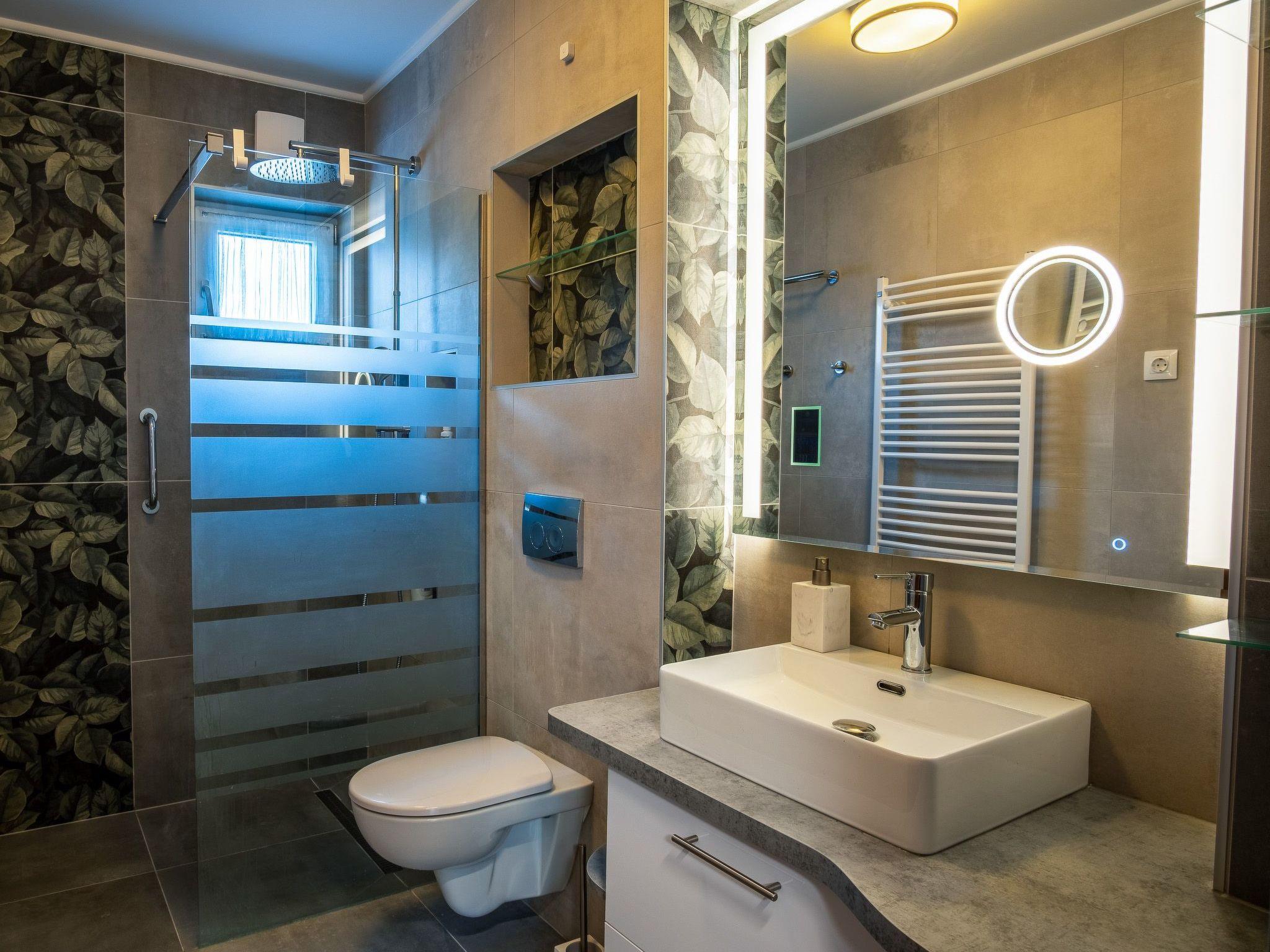 Inside you will find all the amenities that will make your stay unforgettable. The house offers four air-conditioned double rooms and a huge living room with modern HD quality TVs and over 200 German language TV channels, offering enough space for a maximum of up to 10 people. Discounts are also available if you are travelling as a small family (up to 5 people). A fully equipped kitchen fulfils all your self-catering needs, while a laundry room with washing machines and dryers completes your comfort. Each floor has its own bathroom with WC and there is also an extra WC on each floor. Comfortable beds with modern memory foam mattresses ensure a good night's sleep.