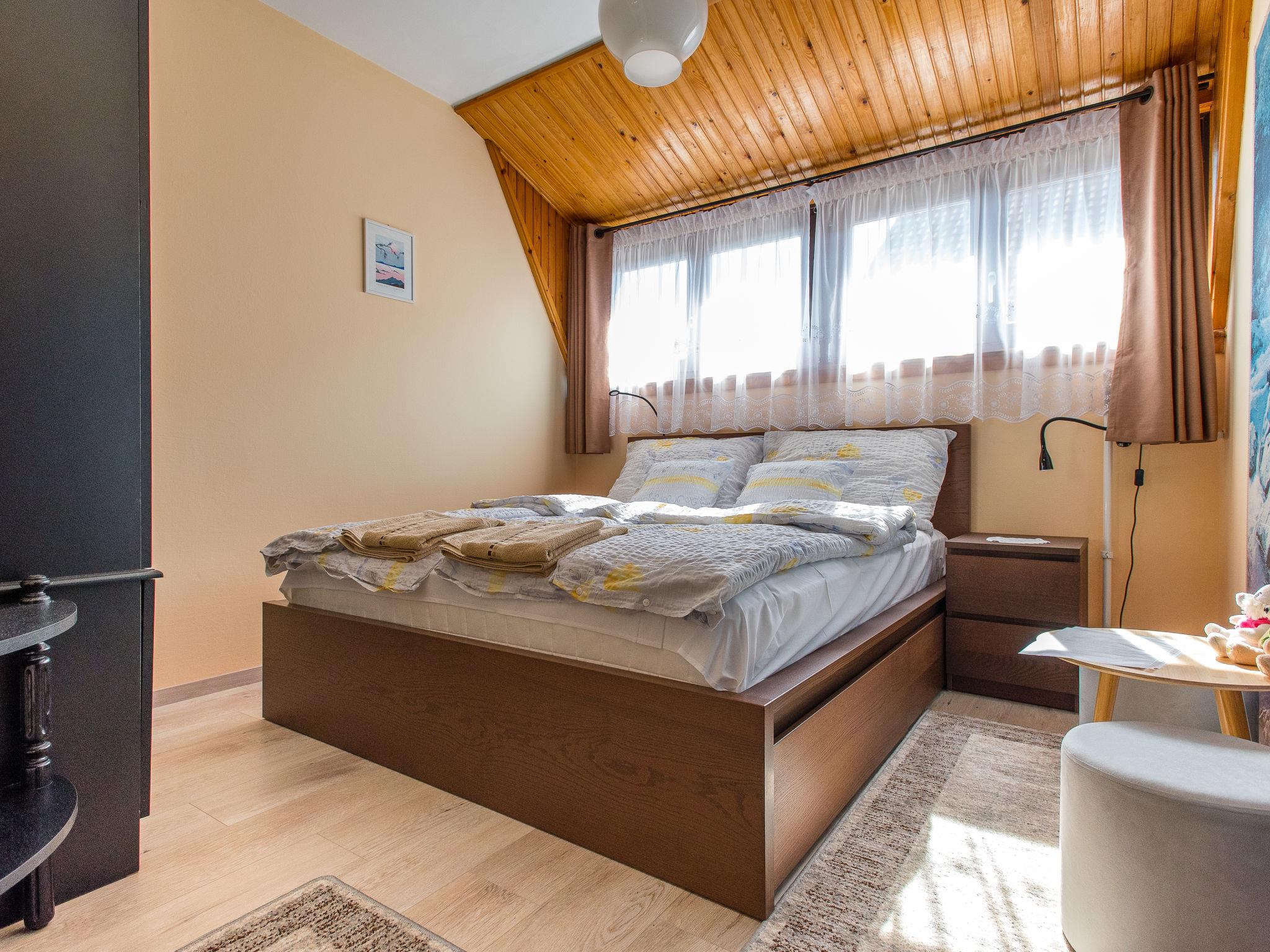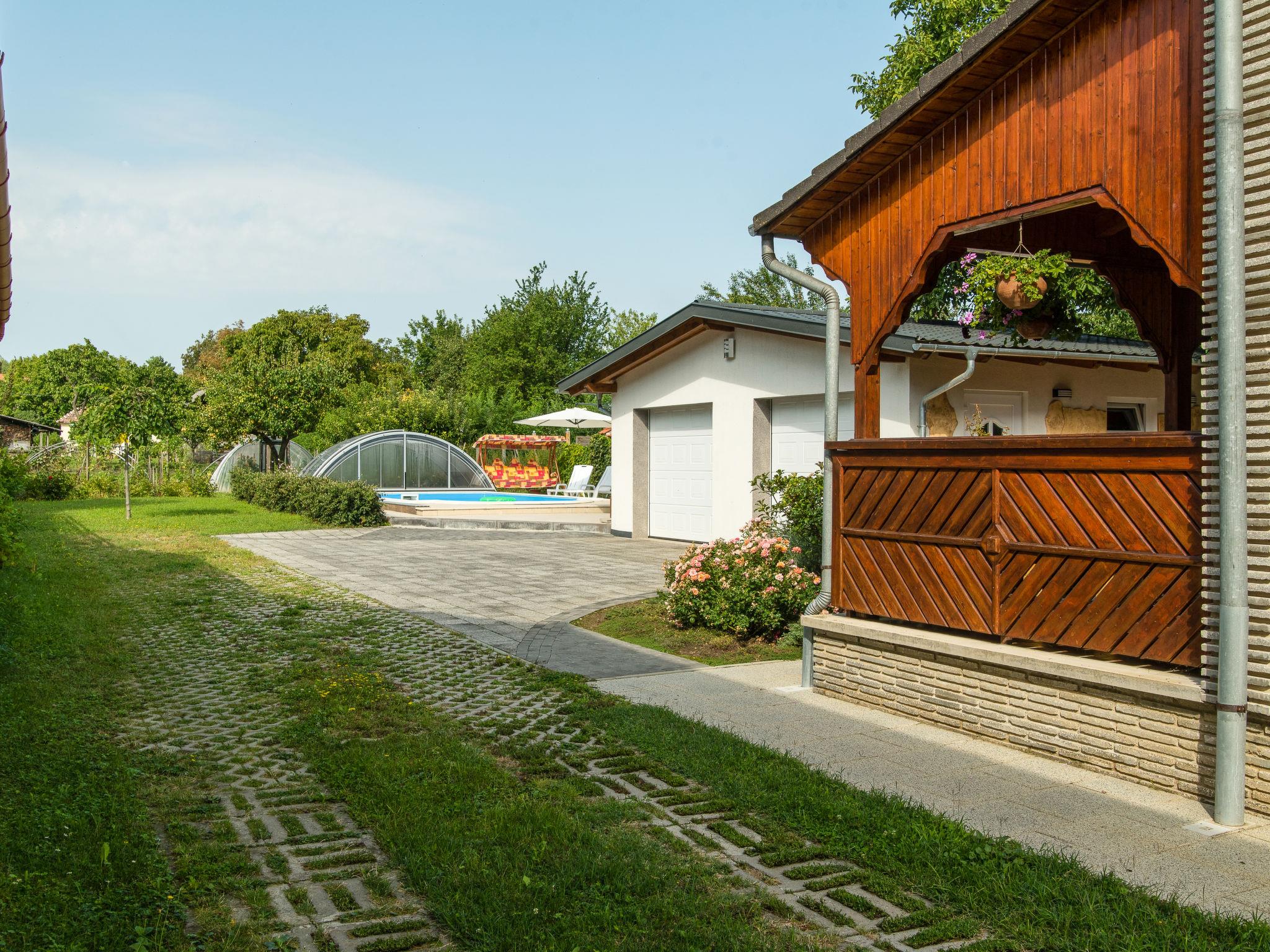 Balatonkeresztúr: Beautiful 2-family house, 2 storeys, built in 1991, renovated in 2022. In the resort, in a quiet position, 600 m from the lake. For shared use: property 980 m2 (fenced), well-kept garden with lawn and flowers. Private: swimming pool angular (8 x 4 m, 32 m2, depth 140 cm, seasonal availability: 15.May. - 15.Sep.) with shutter cover. Outdoor shower, barbecue. In the house: WiFi, air conditioning. Grocery, restaurant 500 m, grass beach 600 m. Please note: the owner lives in the same residence.