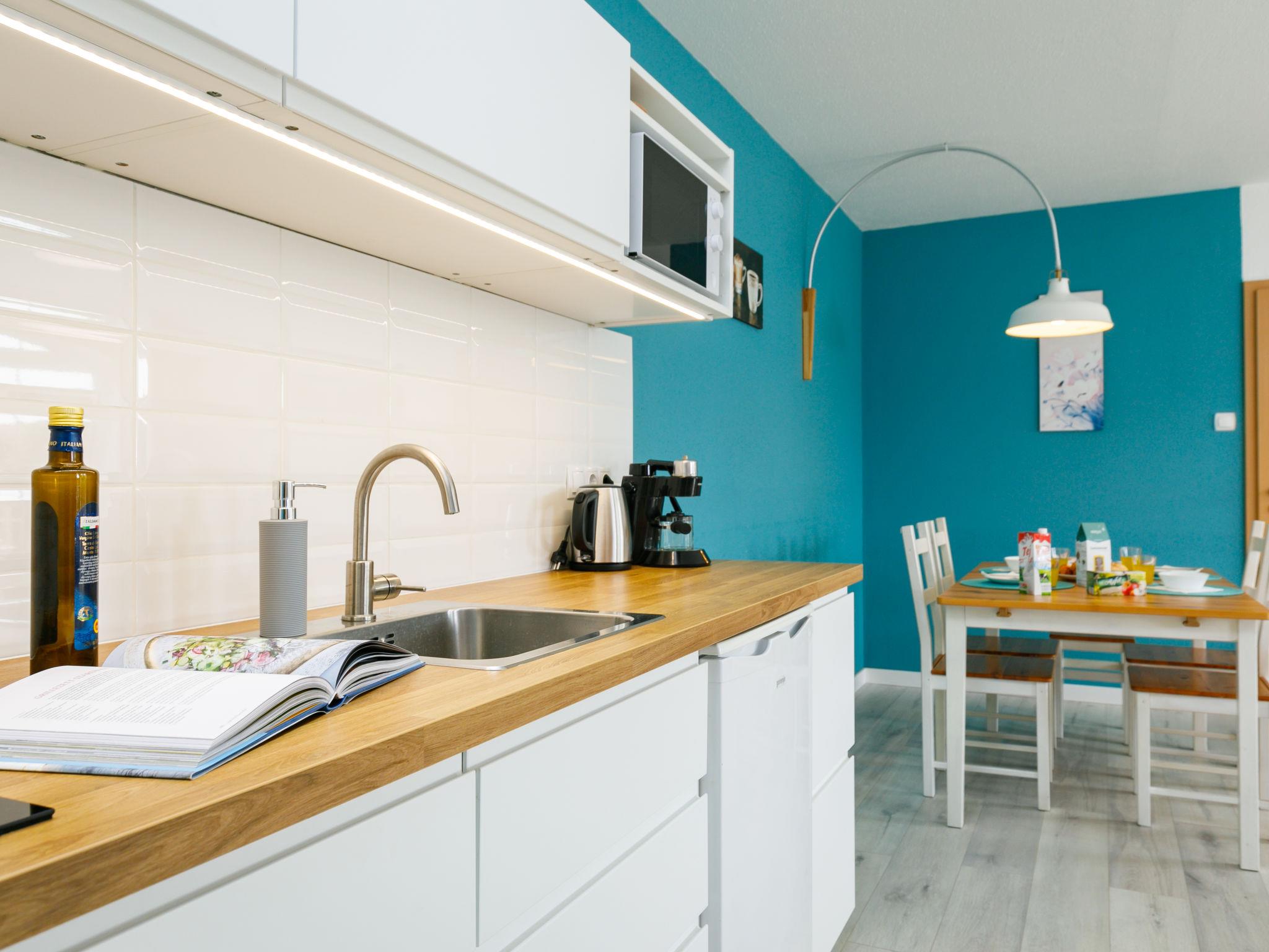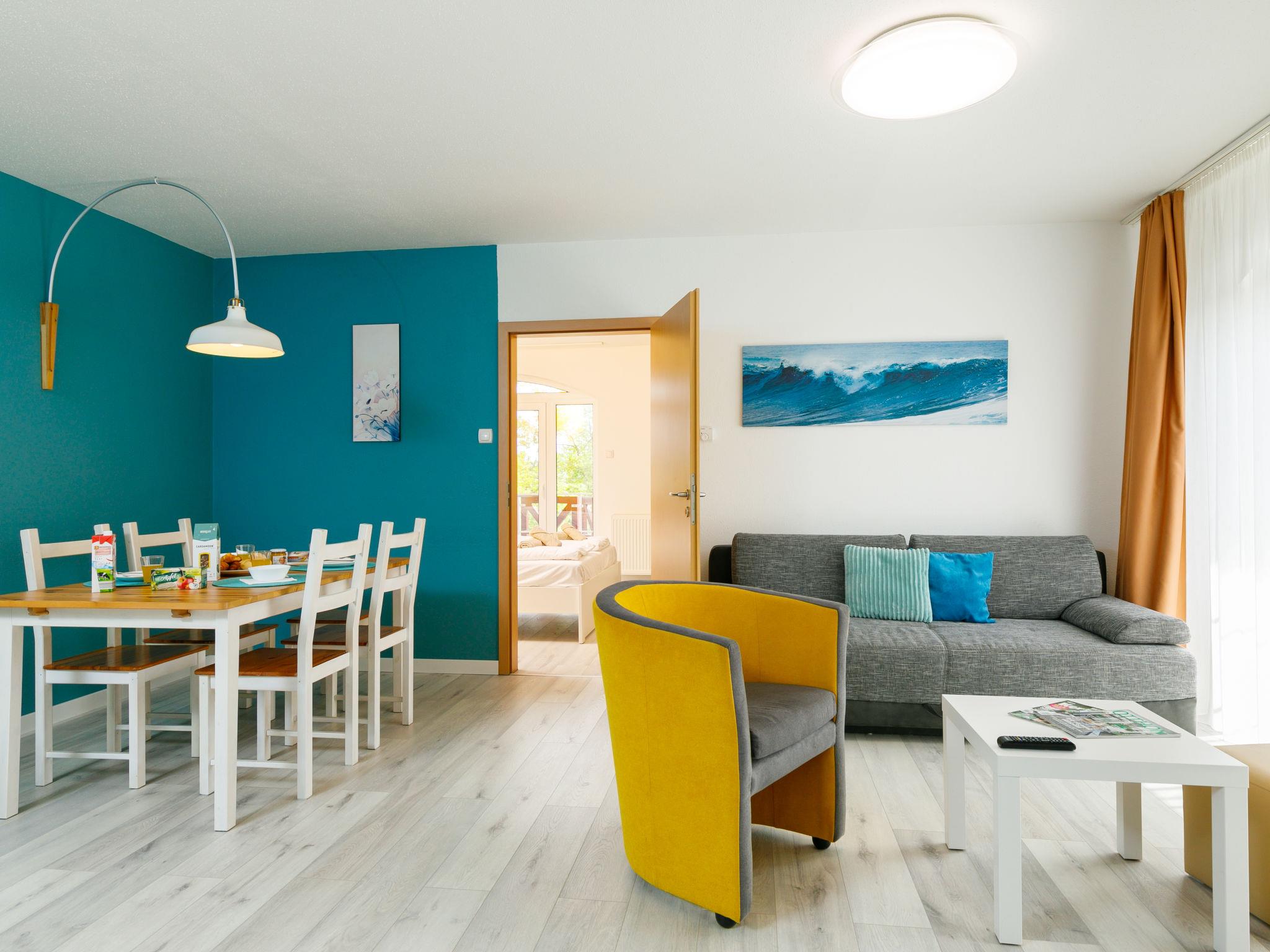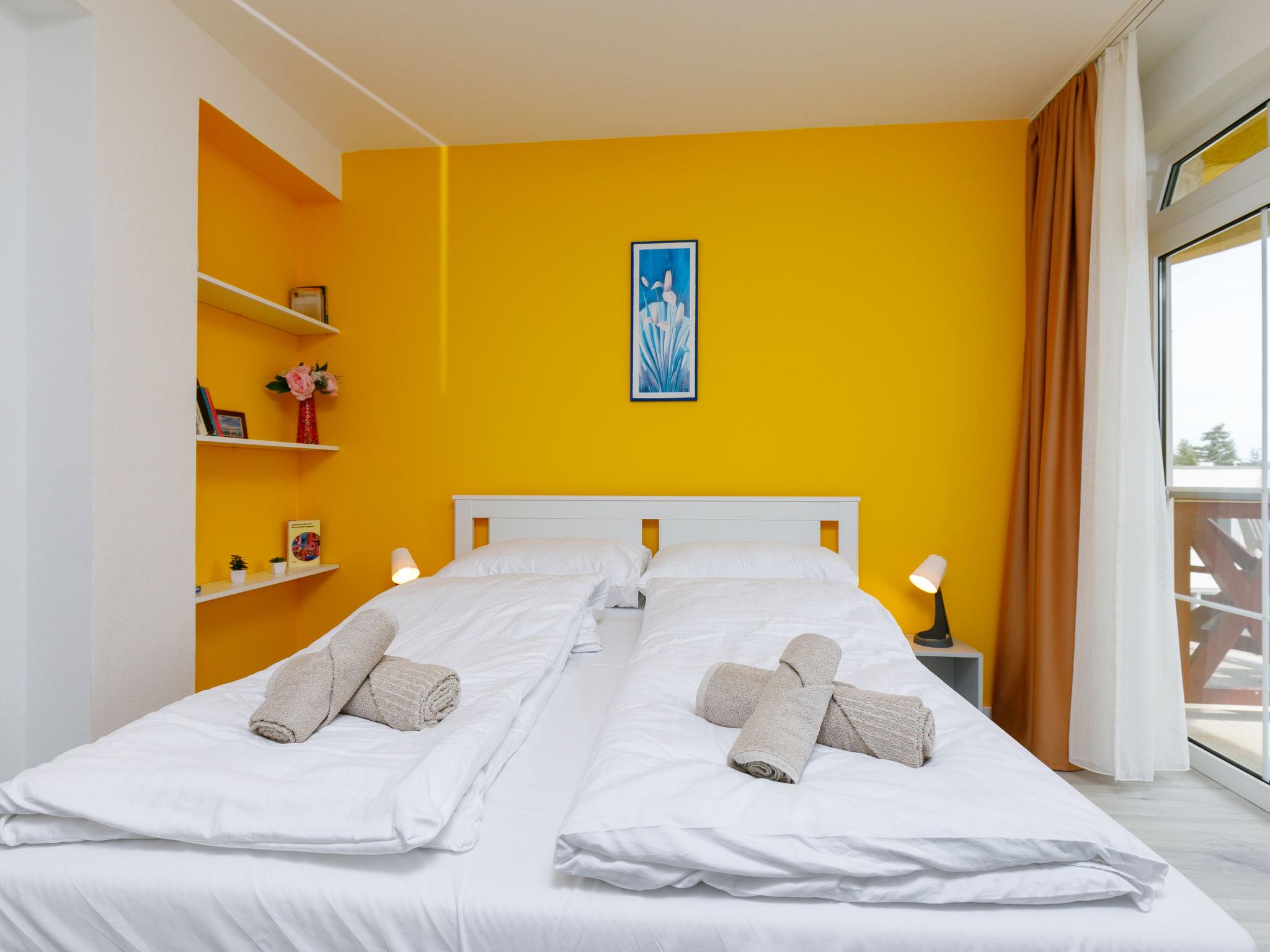 "Summer", 2-room apartment on 2nd floor, south-west facing position. Spacious and bright, comfortable and stylish furnishings: open living/dining room with 2 double sofabeds (140 cm, length 200 cm), dining table and cable TV (flat screen), air conditioning. Exit to the balcony, west facing position. 1 double bedroom with 1 french bed (160 cm, length 200 cm). Exit to the balcony, south facing position. Open kitchen (oven, 2 ceramic glass hob hotplates, kettle, microwave, electric coffee machine). Bathroom, sep. WC. Heating (extra). 2 balconies, south facing position and west facing position. Balcony furniture. Facilities: mosquito net, children's high chair, baby cot (extra). Internet (WiFi). Please note: smoke alarm.