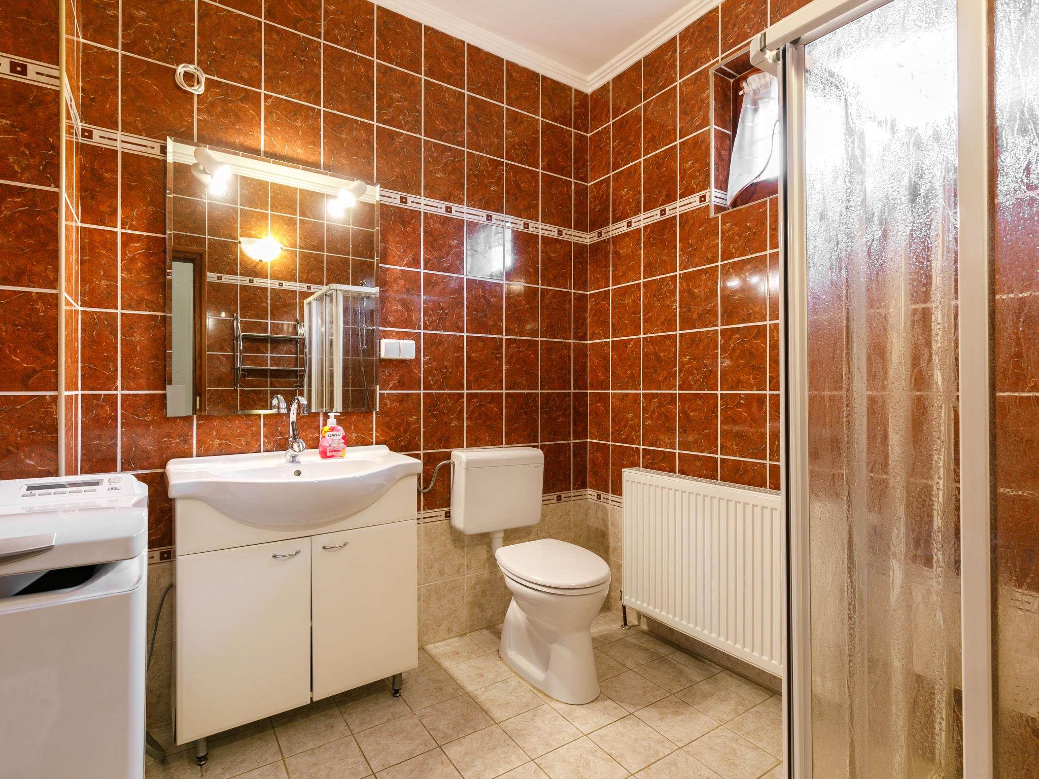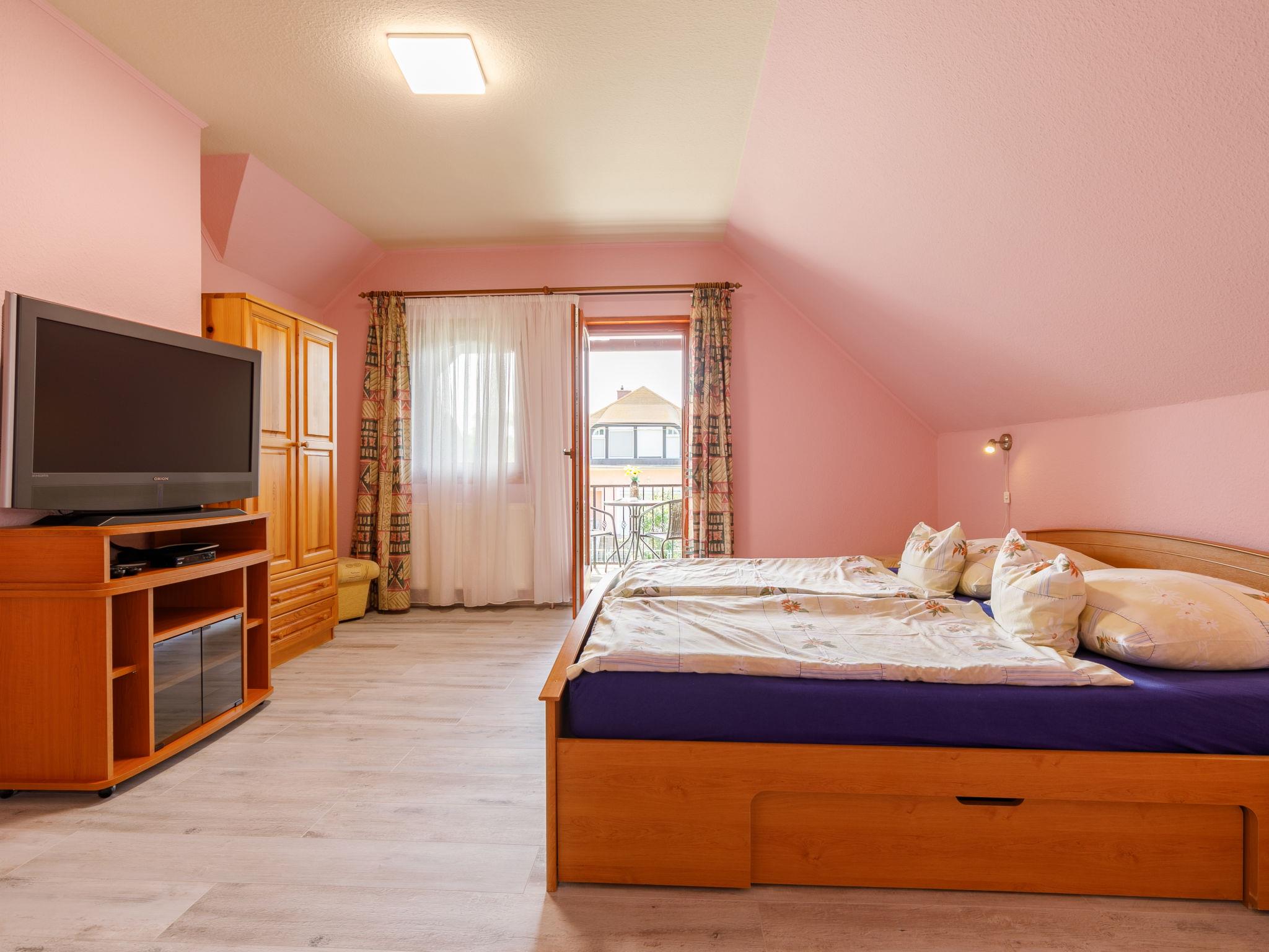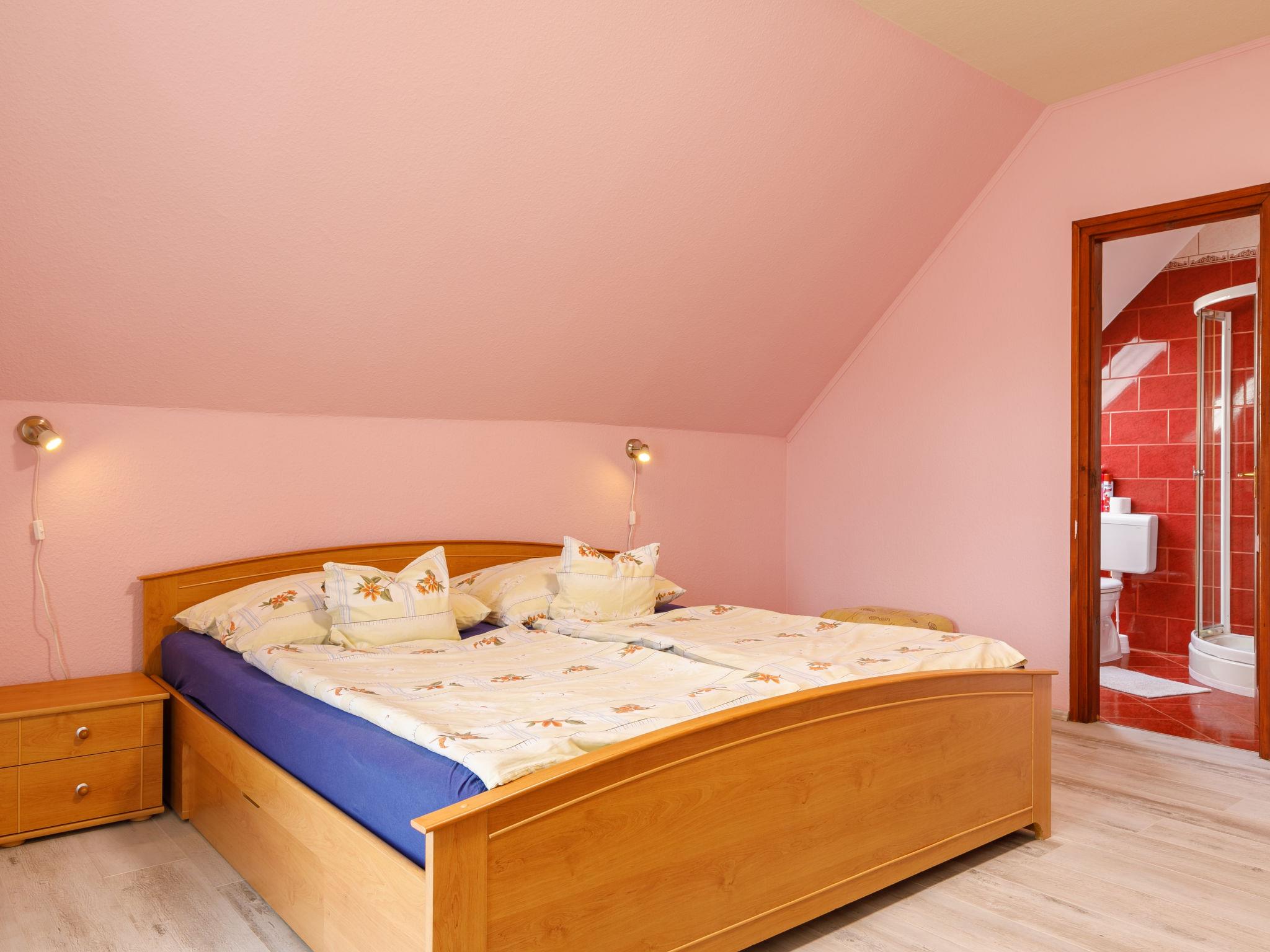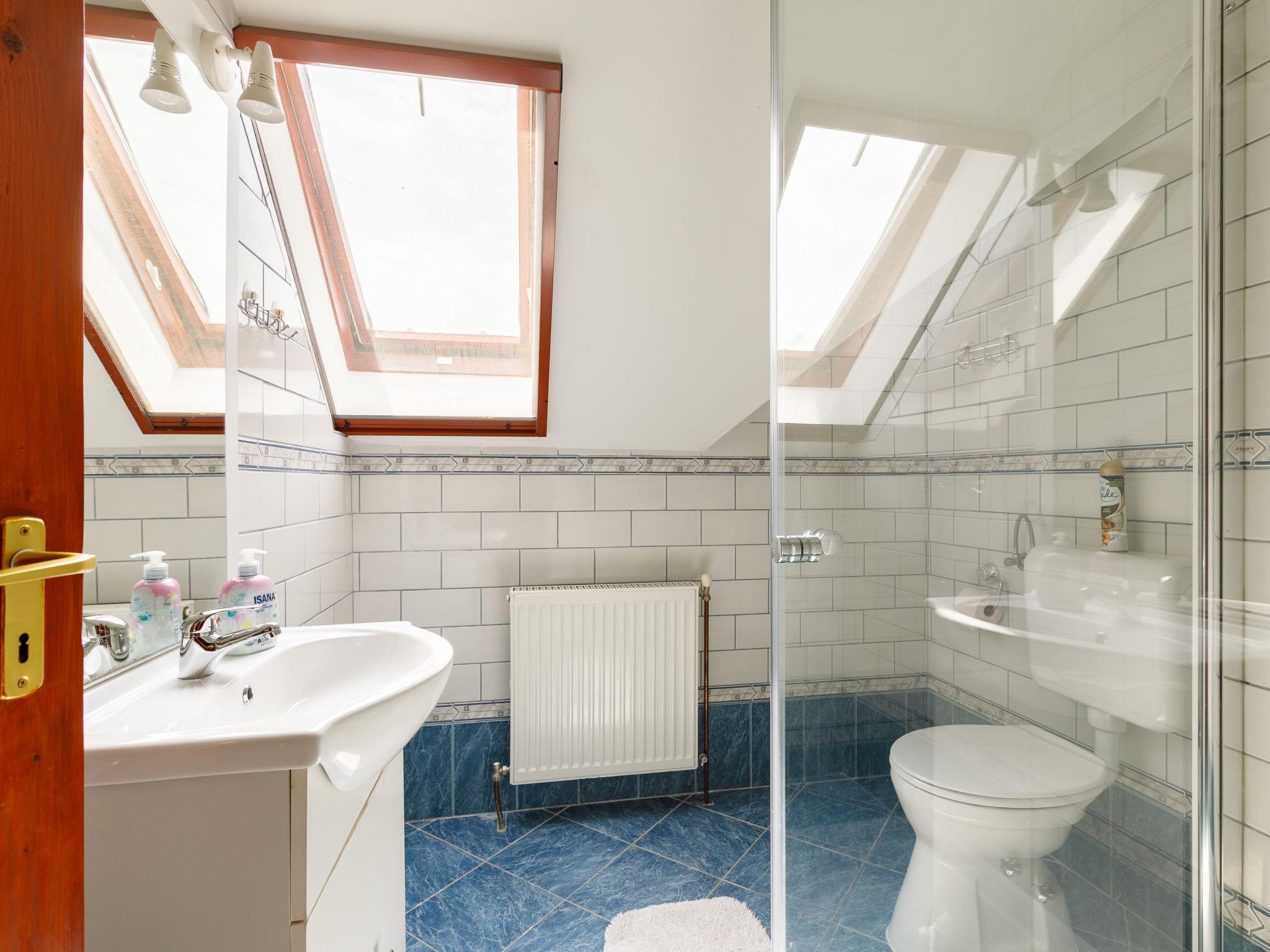5-room house 160 m2 on 2 levels. Comfortable and cosy furnishings: living/dining room with satellite TV. Exit to the terrace. 1 room with 1 french bed (160 cm, length 200 cm), TV. Open kitchen (oven, dishwasher, 4 gas rings, toaster, kettle, microwave, freezer, electric coffee machine). Shower/WC, sep. WC. Upper floor: 2 rooms with sloping ceilings, each room with 1 double bed, shower/WC and satellite TV. Exit to the balcony. 1 room with sloping ceilings with 1 french bed (160 cm, length 200 cm), satellite TV. Shower/WC. No heating option. 2 balconies, terrace partly roofed. Terrace furniture, balcony furniture, deck chairs. Facilities: washing machine, children's high chair, baby cot (extra). Internet (WiFi). Please note: non-smoking house.