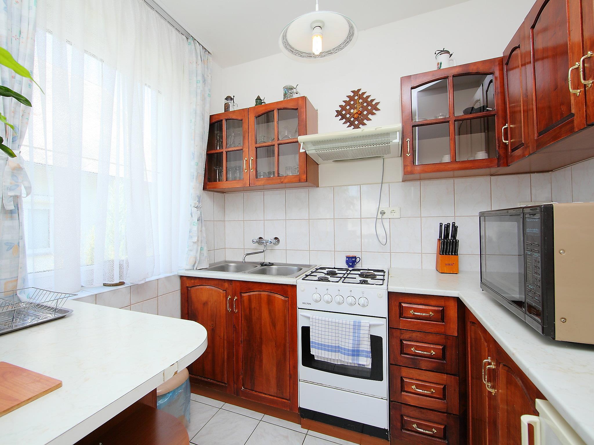9-room house 160 m2. Spacious, partly renovated in 2025, practical furnishings: living room with digital TV. Exit to the terrace. 1 room with 2 beds and air conditioning. 1 room with 2 beds. Open kitchen (4 hot plates, oven, microwave) with dining table. Bath/WC, sep. WC. No heating option. Upper floor: dining room with digital TV. 4 rooms, each room with 2 beds. Exit to the balcony. 1 room with 2 beds and air conditioning. Open kitchen (4 hot plates, oven, microwave). 3 showers/WC. Terrace. Terrace furniture, balcony furniture. Facilities: iron, mosquito net, children's high chair, baby cot, hair dryer. Internet (WiFi). Parking (fenced 6 cars). MA19010307