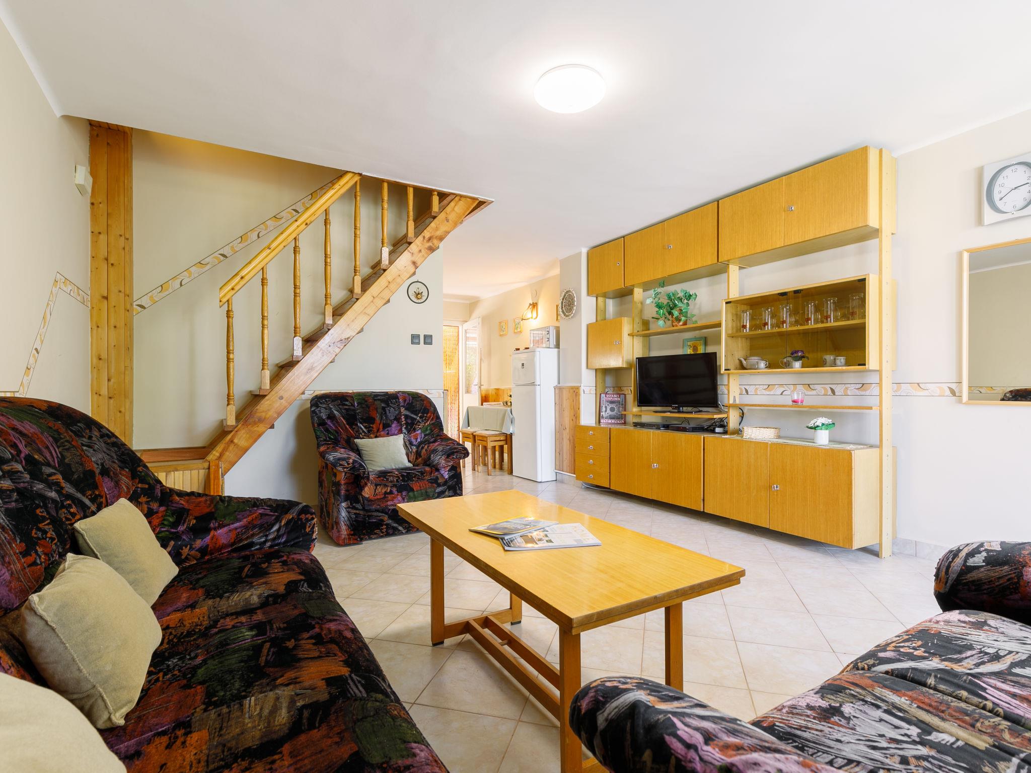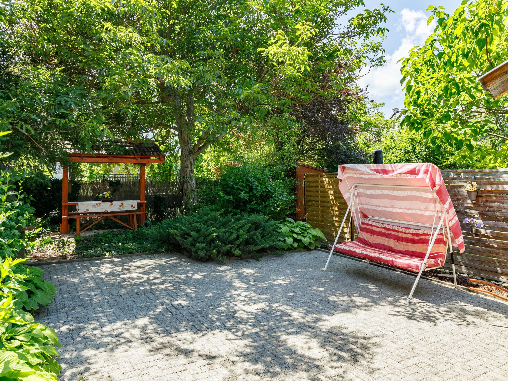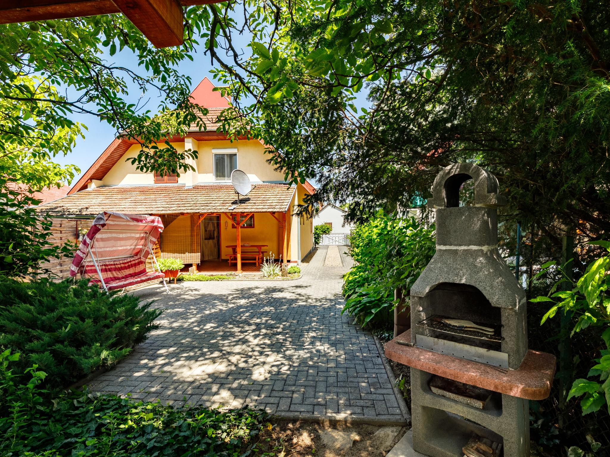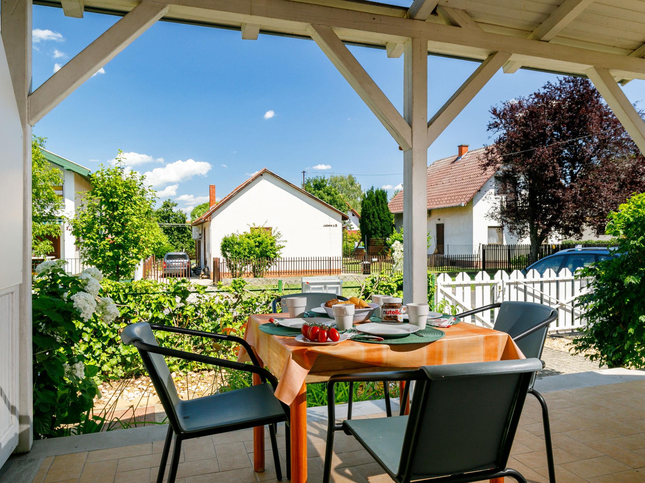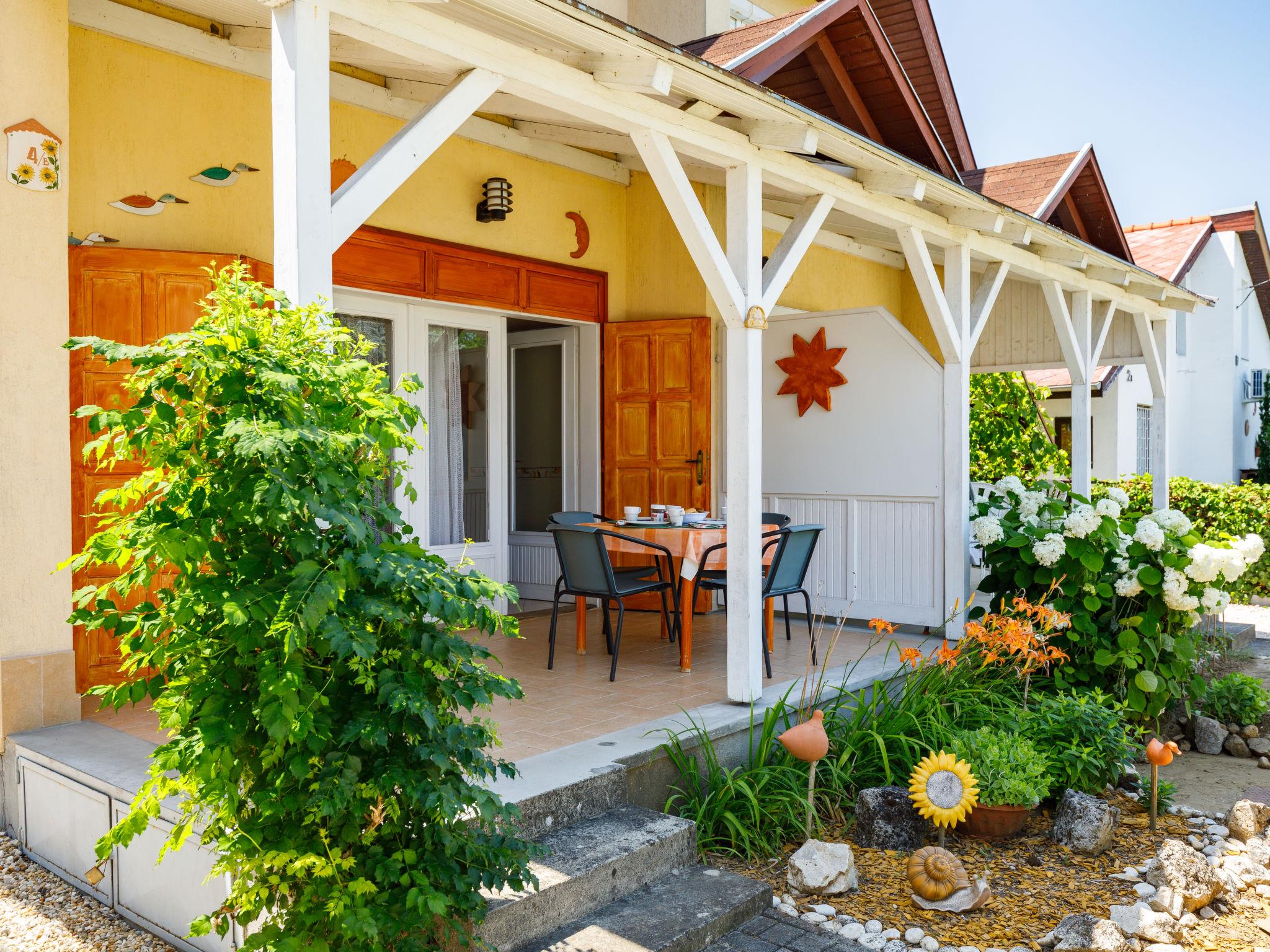 Balatonszárszó 22 km from Siófok: Cosy semi-detached house "Jazmin". 1 km from the centre of Balatonszarszo, 25 km from the centre of Siofok, in the residential district, 400 m from the lake, 600 m from the beach. Private: property (fenced) with wildlife garden, courtyard, parking on the premises. Shop 1 km, restaurant 200 m, grass beach 400 m. Object suitable for 4 adults + 1 child.