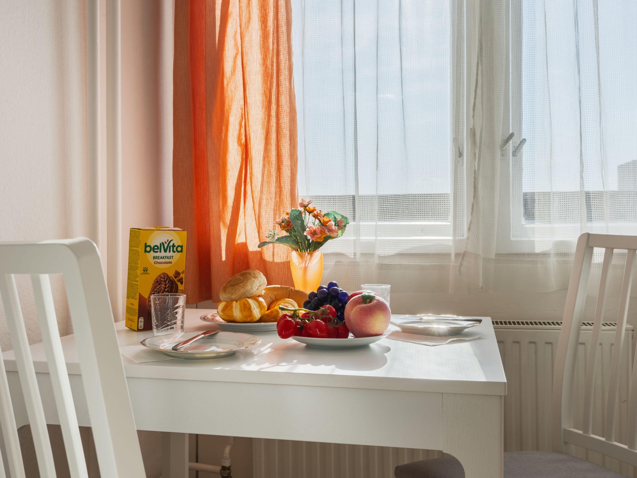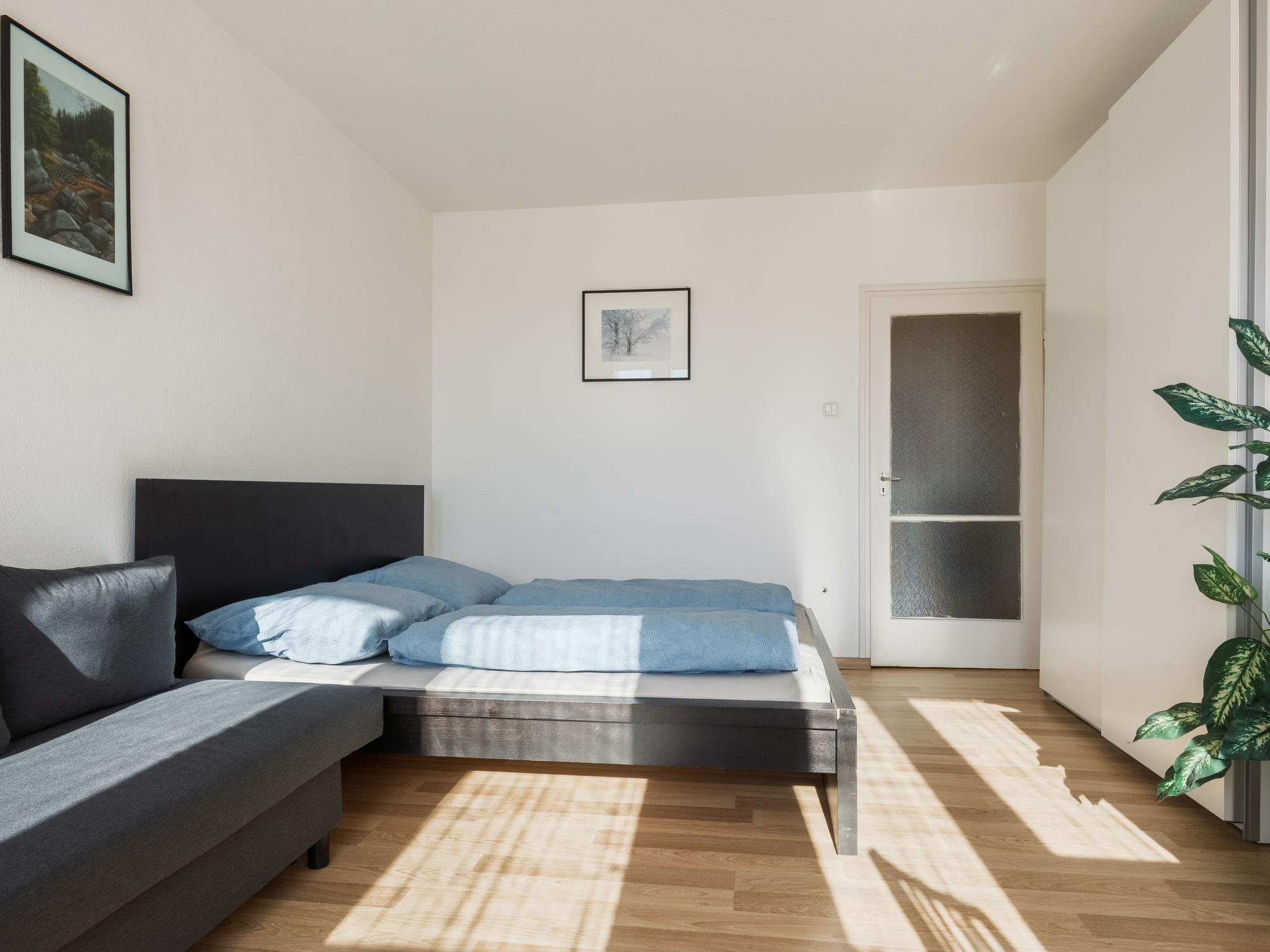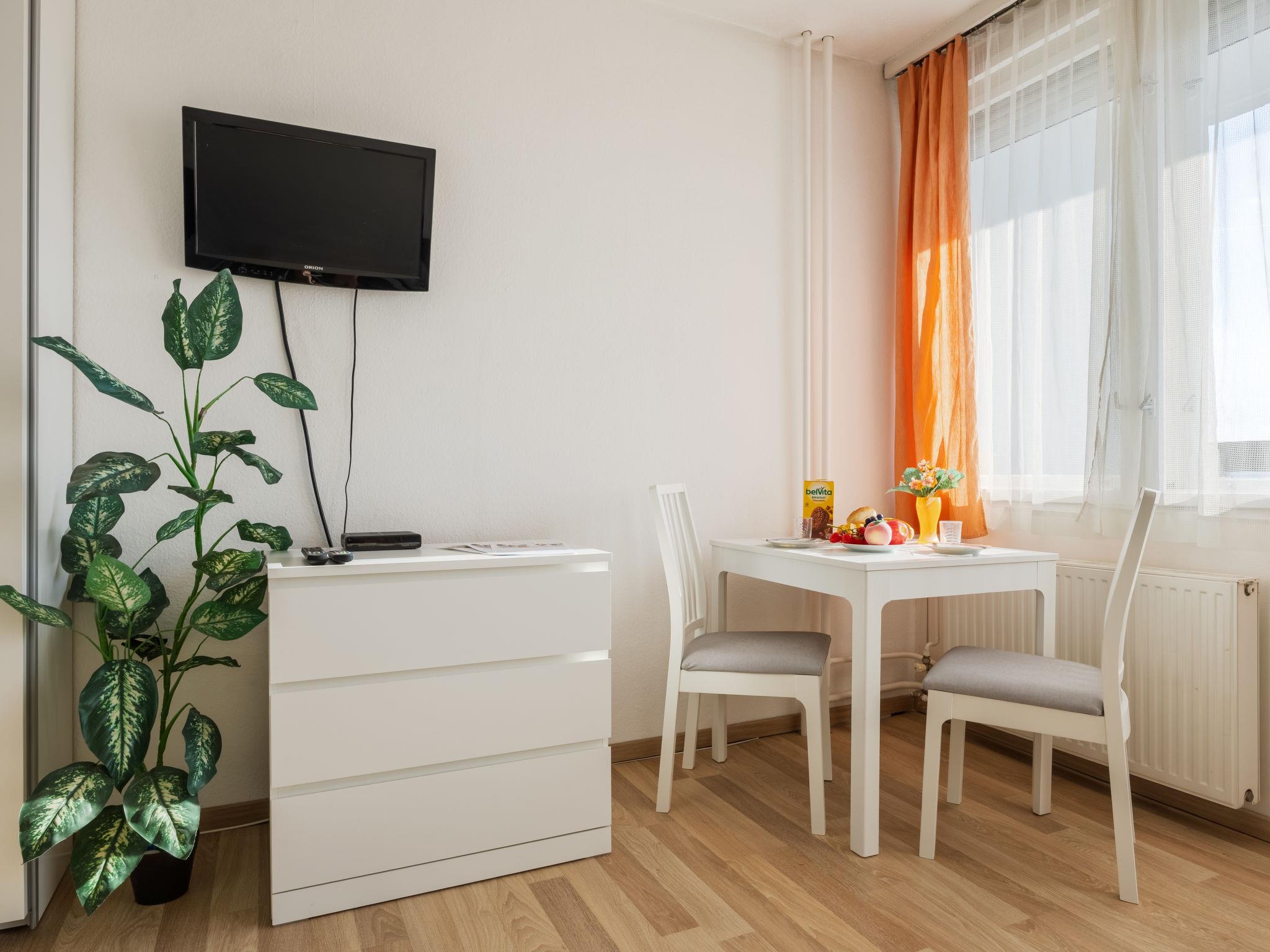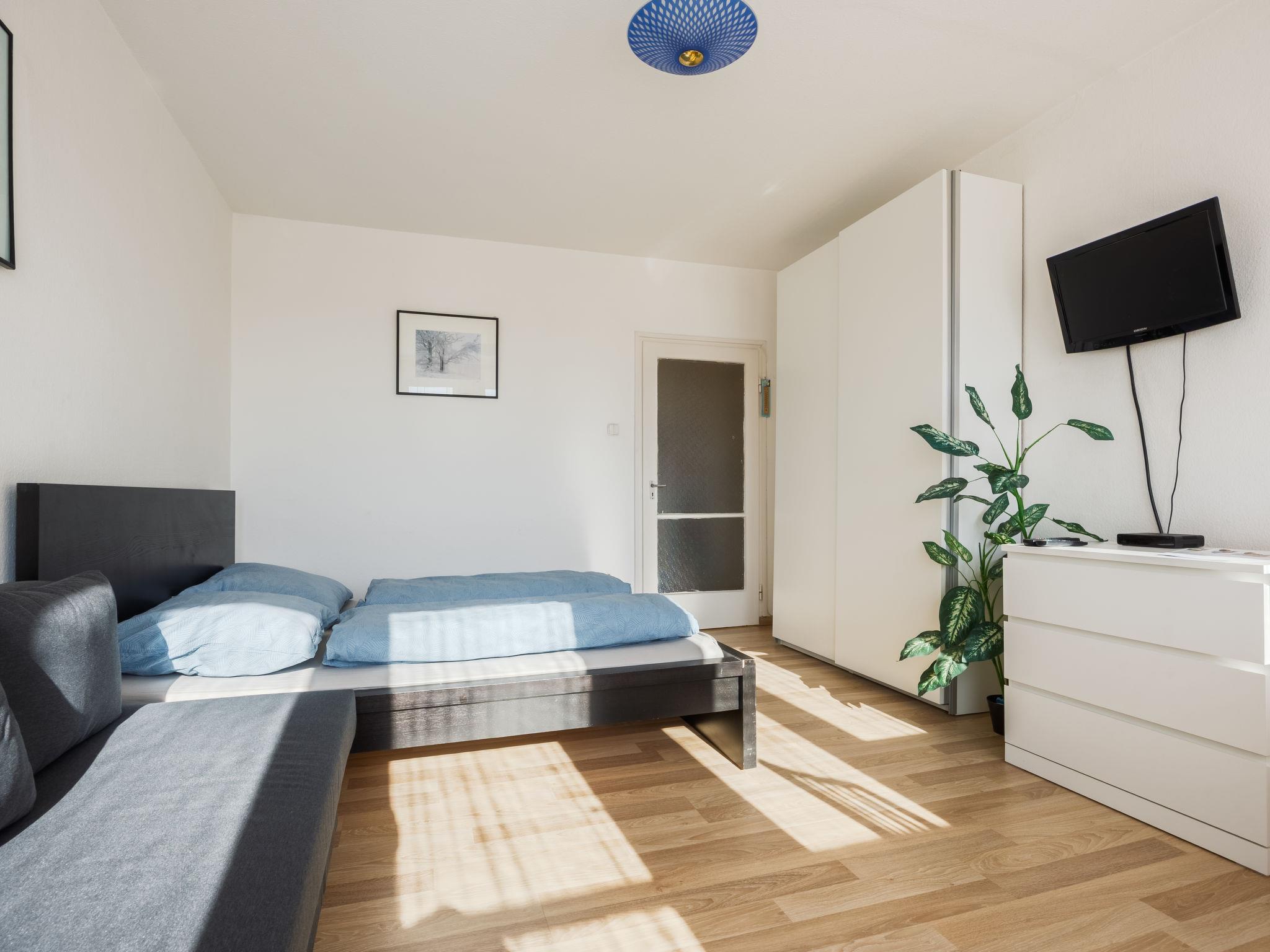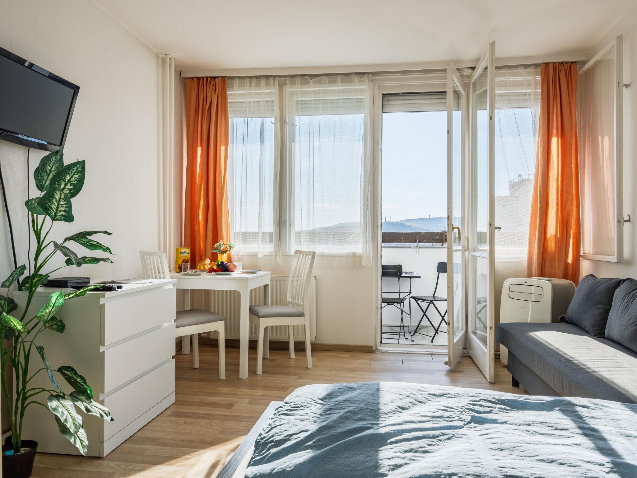 1-room apartment 30 m2 on 14th floor. Simple and practical furnishings: entrance hall. Living/sleeping room with 1 double bed, dining table, cable TV, flat screen and air conditioning. Exit to the balcony. Small, open kitchen in the entrance (4 hot plates, oven, kettle, microwave, electric coffee machine). Bath/WC. Parquet floors. Small balcony 4 m2. Balcony furniture. Very beautiful panoramic view of the countryside and the city. Facilities: hair dryer. Internet (WiFi, free). Maximum 1 pet/ dog allowed.