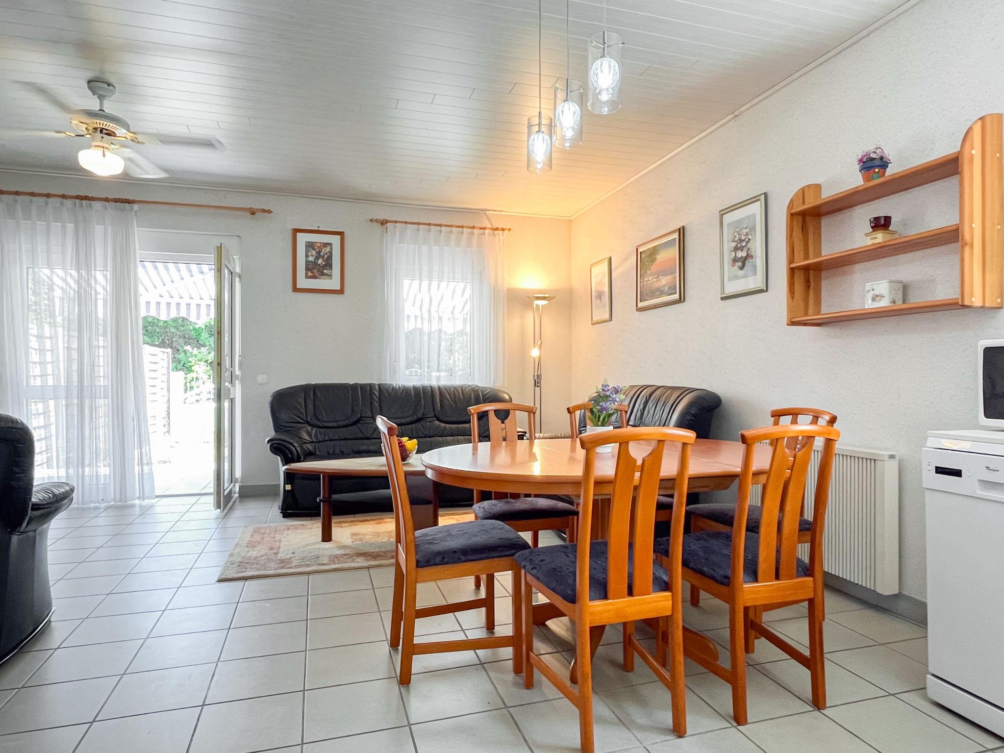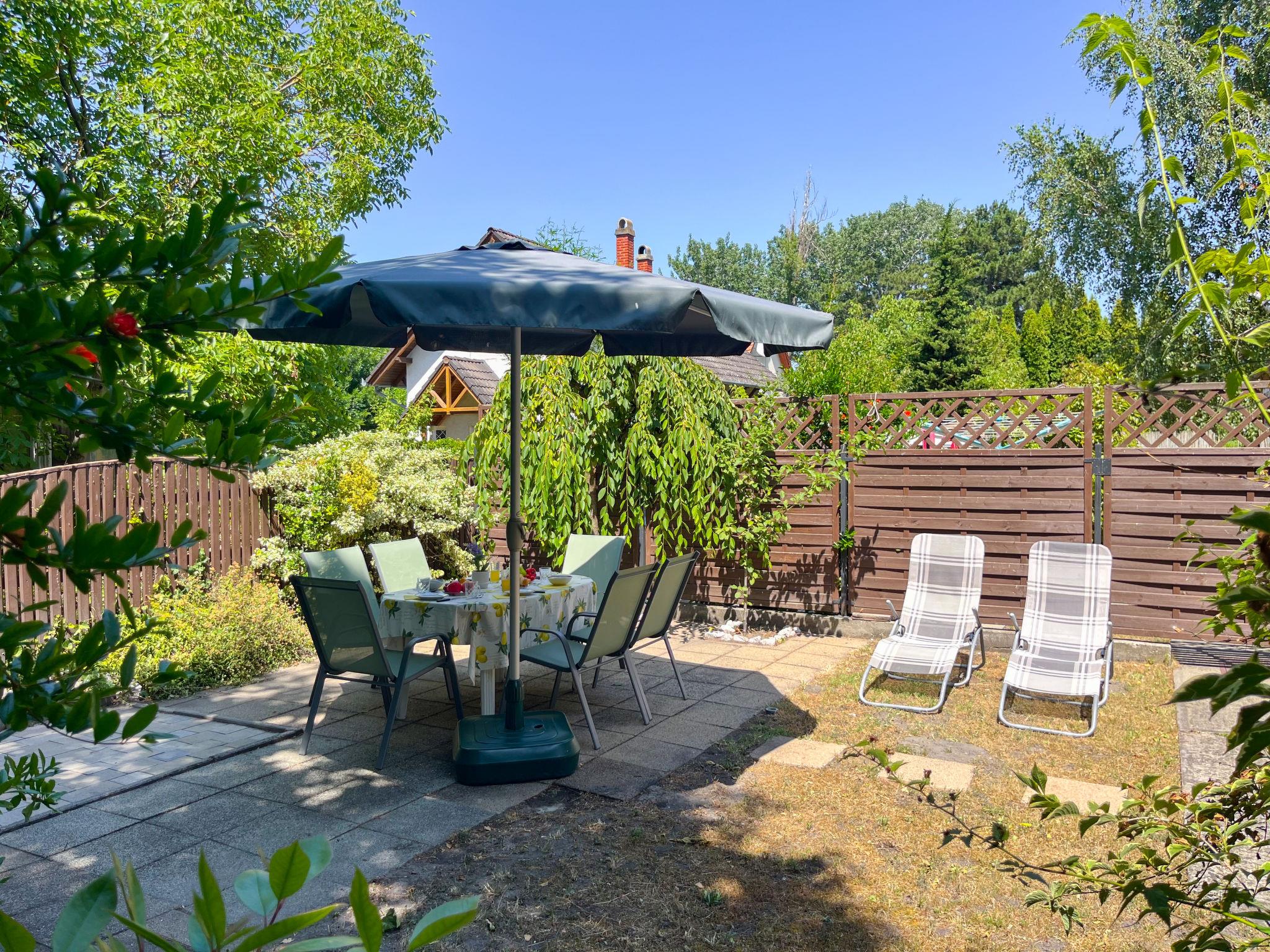 Fonyód 9 km from Balatonlelle: Cosy semi-detached house "Freesia", 2 storeys. In the resort, 100 m from the lake, 300 m from the beach. Private: garden 200 m2. Patio. In the house: WiFi, washing machine. Grocery 500 m, restaurant 200 m, bicycle rental 3 km, bus stop "Fonyód (Fonyódliget), Árpád utca" 450 m, railway station "Fonyódliget" 400 m, grass beach 100 m, thermal baths "Csisztafürdo" 11 km. Cycle lane 200 m, children's playground 400 m. Nearby attractions: Fonyod Ferris Wheel 4 km, Balatonboglár Adventure Park 7 km, Balatonlelle Theme Park 7 km, Xantus János Sphere Lookout 7 km, Fonyód Marina 4 km.