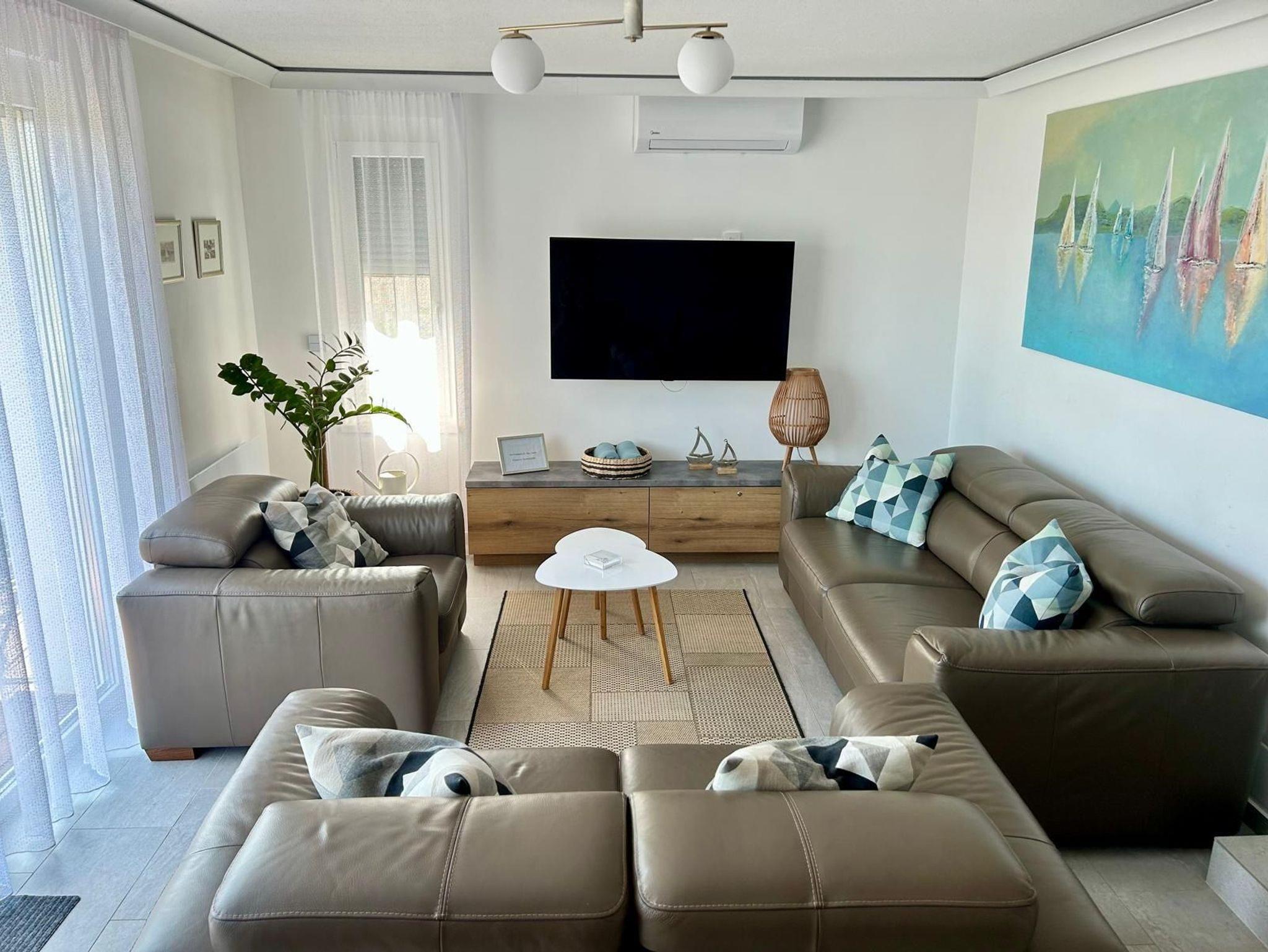 Das Ferienhaus besteht aus zwei Apartments. Apartment 1 befindet sich im Erdgeschoß mit einem Wohnzimmer, voll ausgestatteten Küche mit premium Haushaltsgeräten, zwei Schlafzimmer, Badezimmer, separate Gäste WC, und eine große (zirka 30 qm) Terrasse.