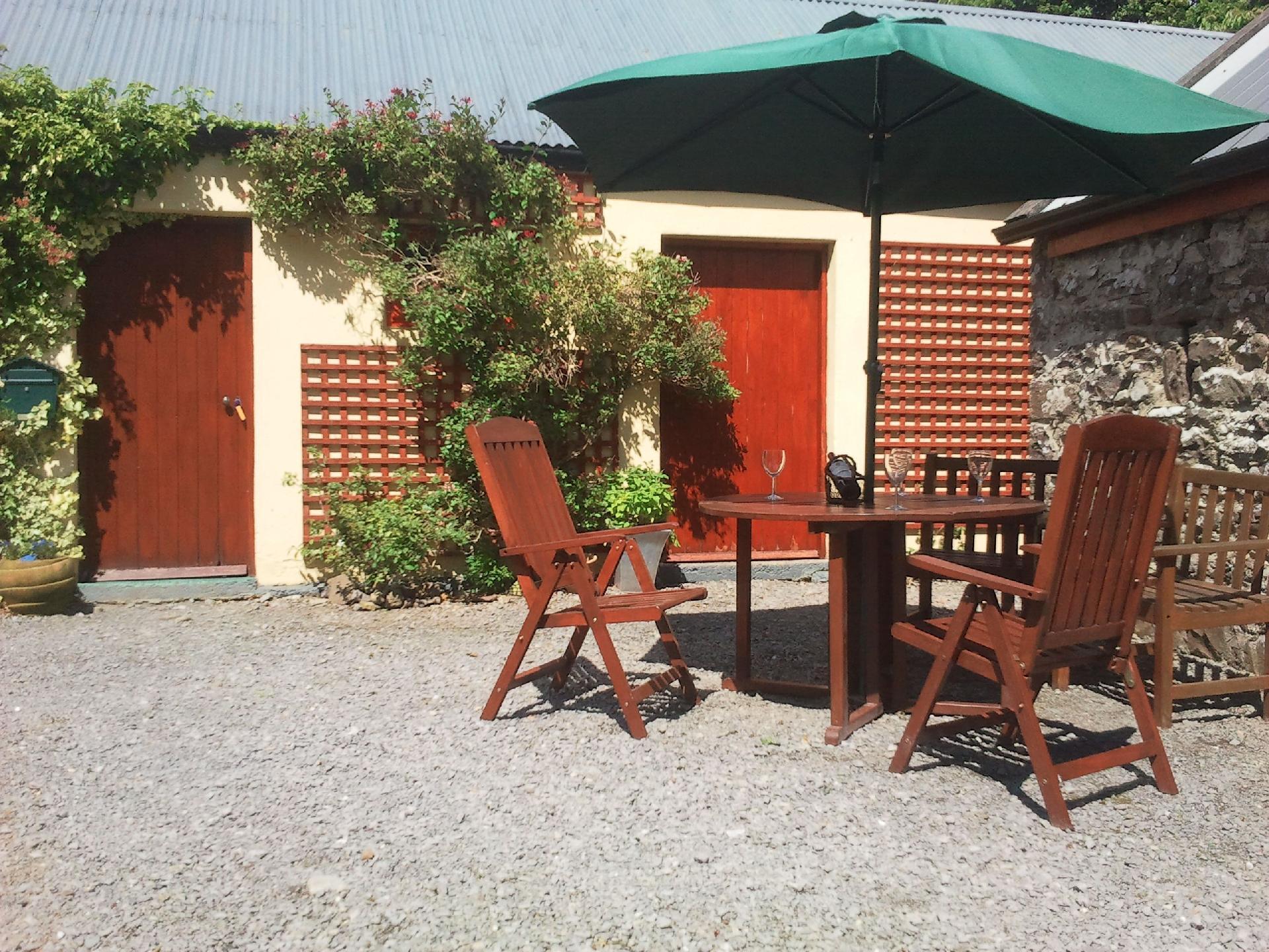 To the rear of the cottage we have our cowbire,old stone sheds and haybarn. The space in between is a natural courtyard ideal for one of our picnic tables and barbecue.Down by the river is an ideal place for a picnic and as you stroll by the river walk you will find a picnic table.