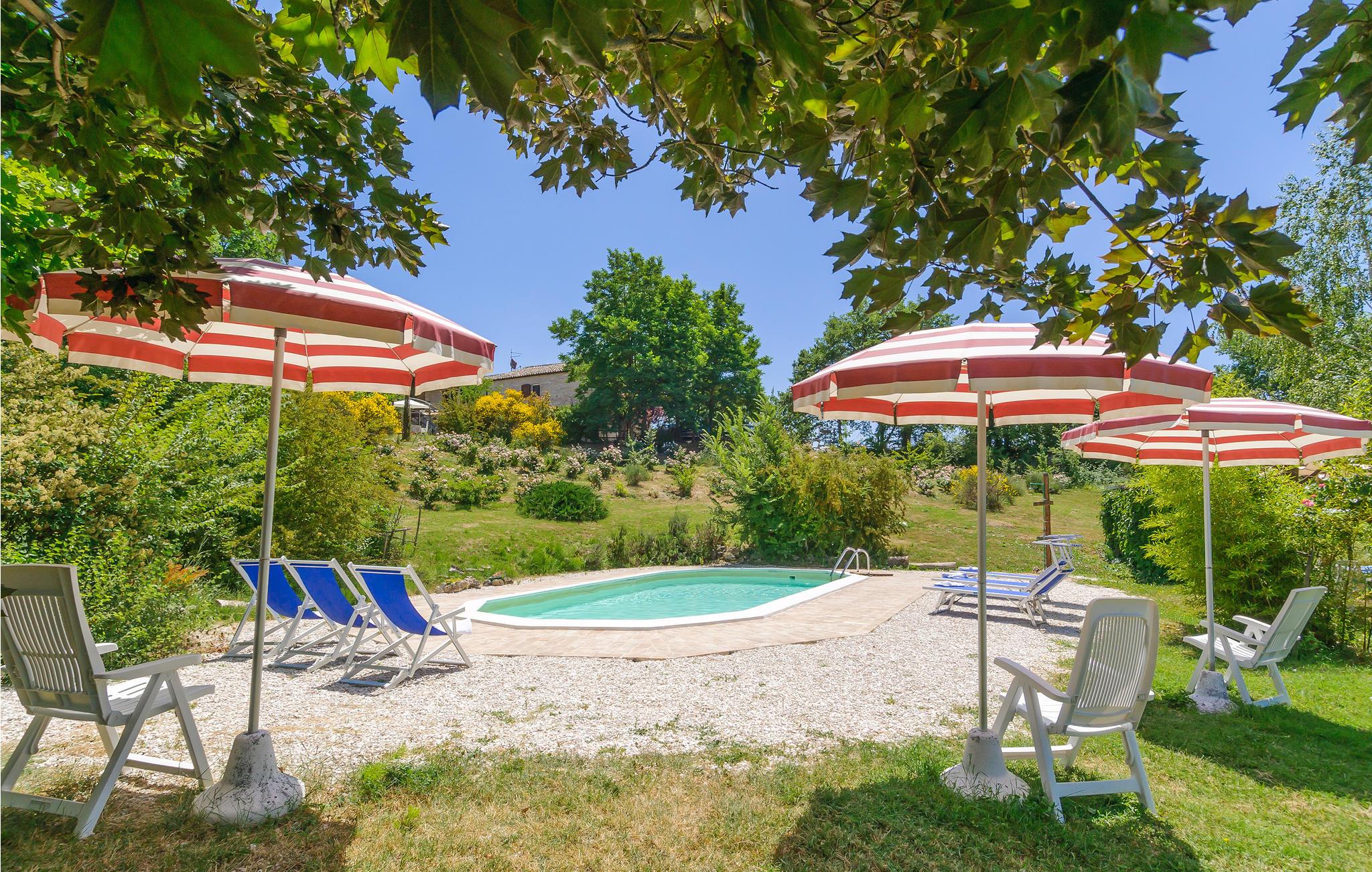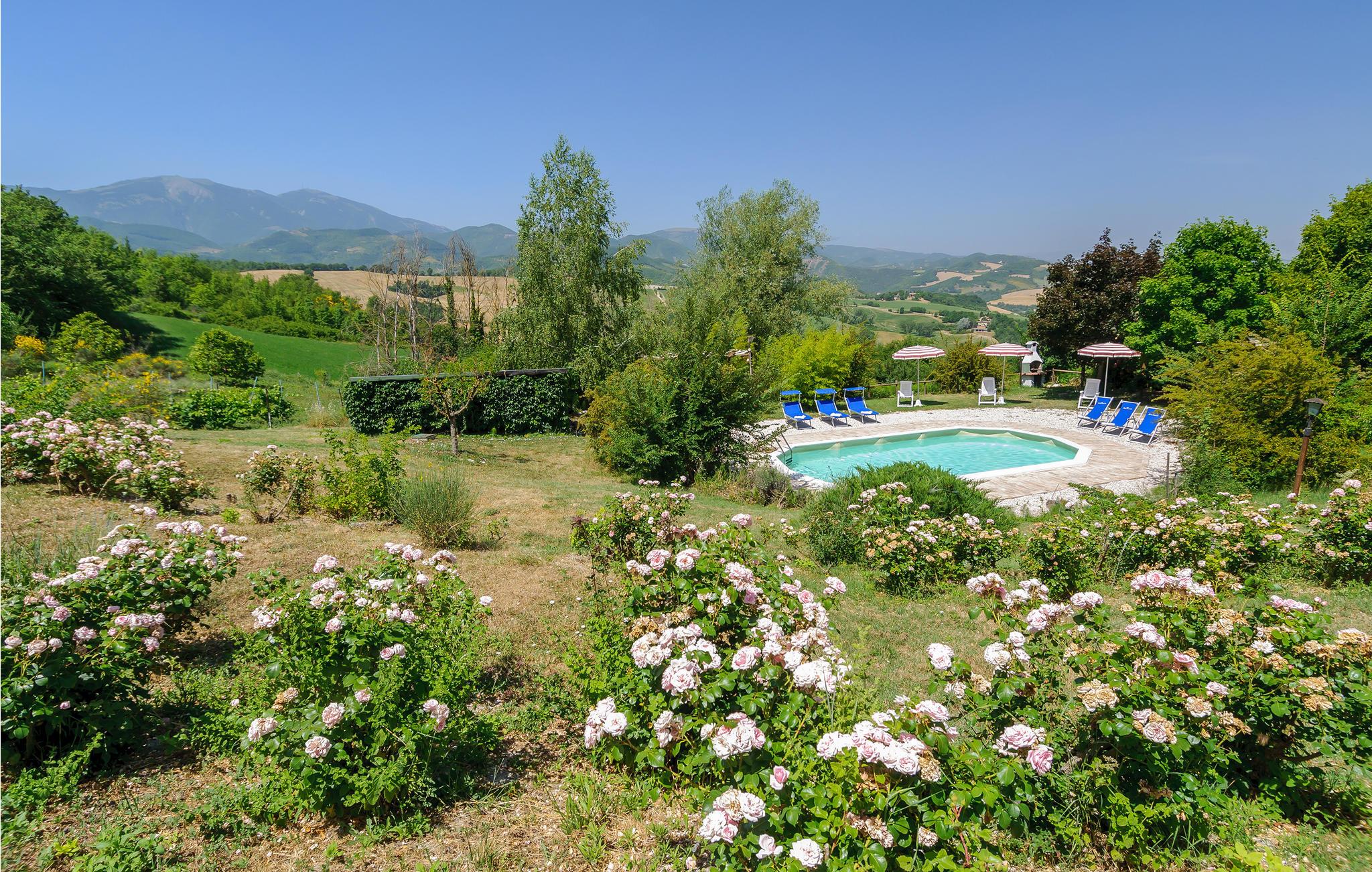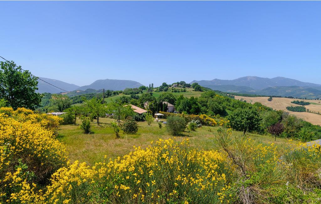 Dieses Reihenhaus in den grünen Hügeln von Cagli mit schönem Panoramablick auf die Berge von Monefeltro liegt an der Grenze zwischen den Regionen Marken, Umbrien, Toskana und Emilia Romagna, etwa 30 km südlich von Ubrino. Eine ehemalige Kirche aus dem 16. Jh. Wurde in 4 Wohneinheiten umgebaut, jede mit eigenem Eingang und Terrasse. In einem Apartment wohnt die Familie des Eigentümers. Die schönen Kunststädte Umbriens und der Marken, wie beispielsweise Gubbio, Assisi, Perugia und Urbino sind von hier aus bequem erreichbar. Die 50 km lange adriatische Küste von Fano bis zum Nationalpark Conero bietet kilometerlange Sandstrände und schöne Natur. Für Naturfreunde gibt es dort zahlreiche Routen zum Wandern, Reiten oder für das Mountainbike. Die Ferienunterkunft, die man über einen 1,5 km langen unbefestigten Weg erreicht, ist eine wahre Oase der Ruhe, umgeben von Sonnenblumenfeldern, Weinbergen und Kornfeldern. Die Ruhe wird hier nur von typischen Landgeräuschen unterbrochen. Zur Entspannung steht den Gästen ein Gemeinschaftspool zur Verfügung. Jede Wohneinheit ist im typischen Stil der Marken eingerichtet. Der ideale Ort für Paare und Familien, die in entspannter Atmosphäre das Leben im Freien genießen möchten. Lassen Sie sich vom schönen Blick auf die grünen Hügel dieses prächtigen Landes verzaubern!