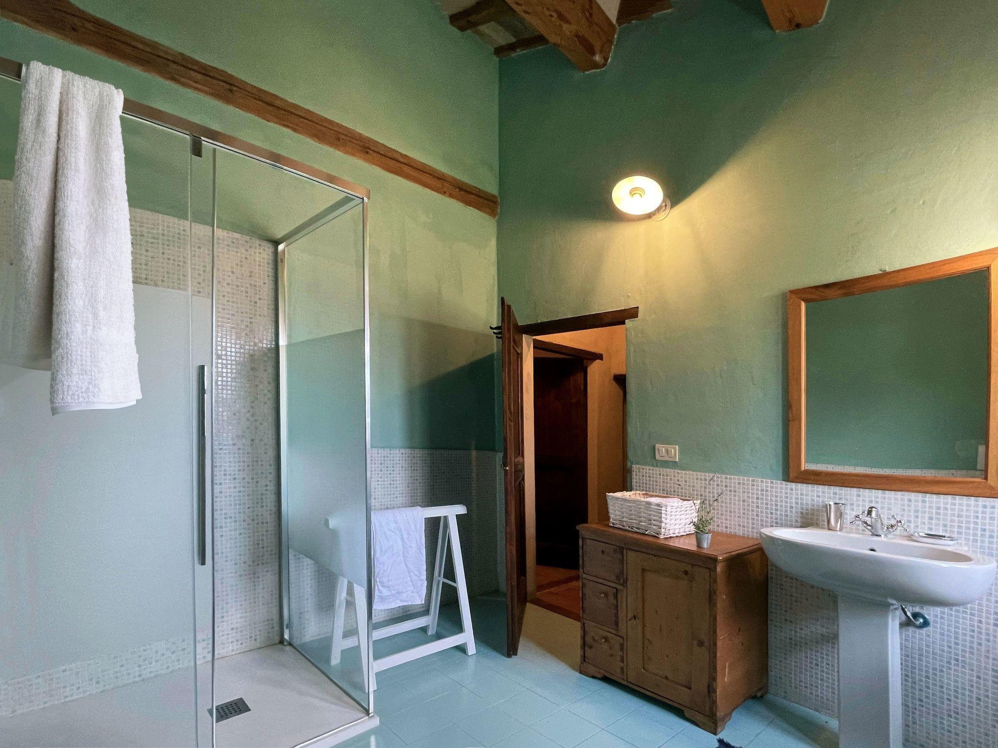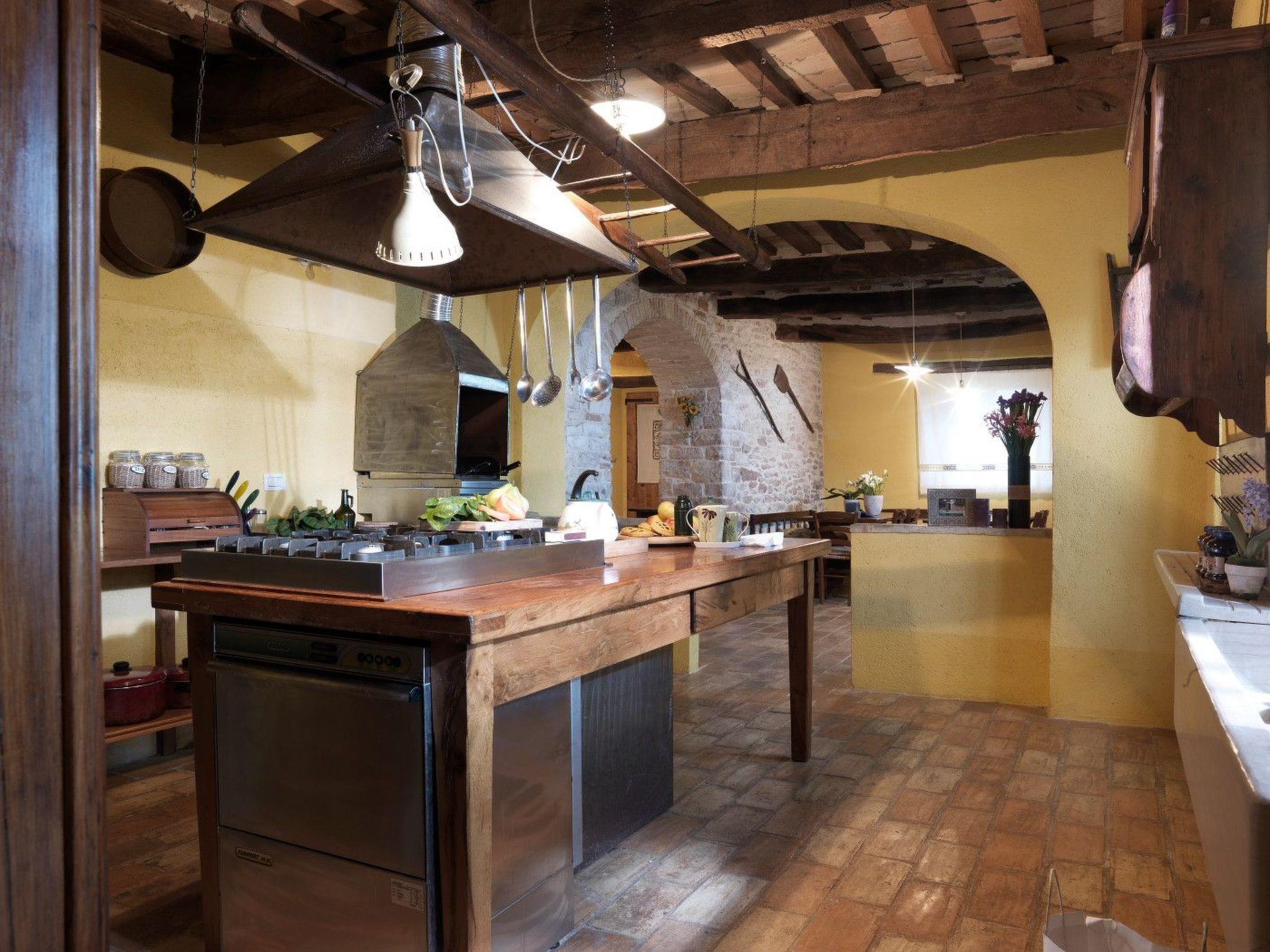 The villa is well structured to accommodate groups. On the ground floor the kitchen is large, bright and well equipped, with professional facilities; there is a dining room, a large living room with fireplace, and a self-contained area with study, double bedroom and bathroom with shower. On the upper floor there is a living room with fireplace, a double bedroom with en suite bathroom with shower, 4 other double bedrooms and 3 bathrooms: 1 with bath and 2 with shower.
