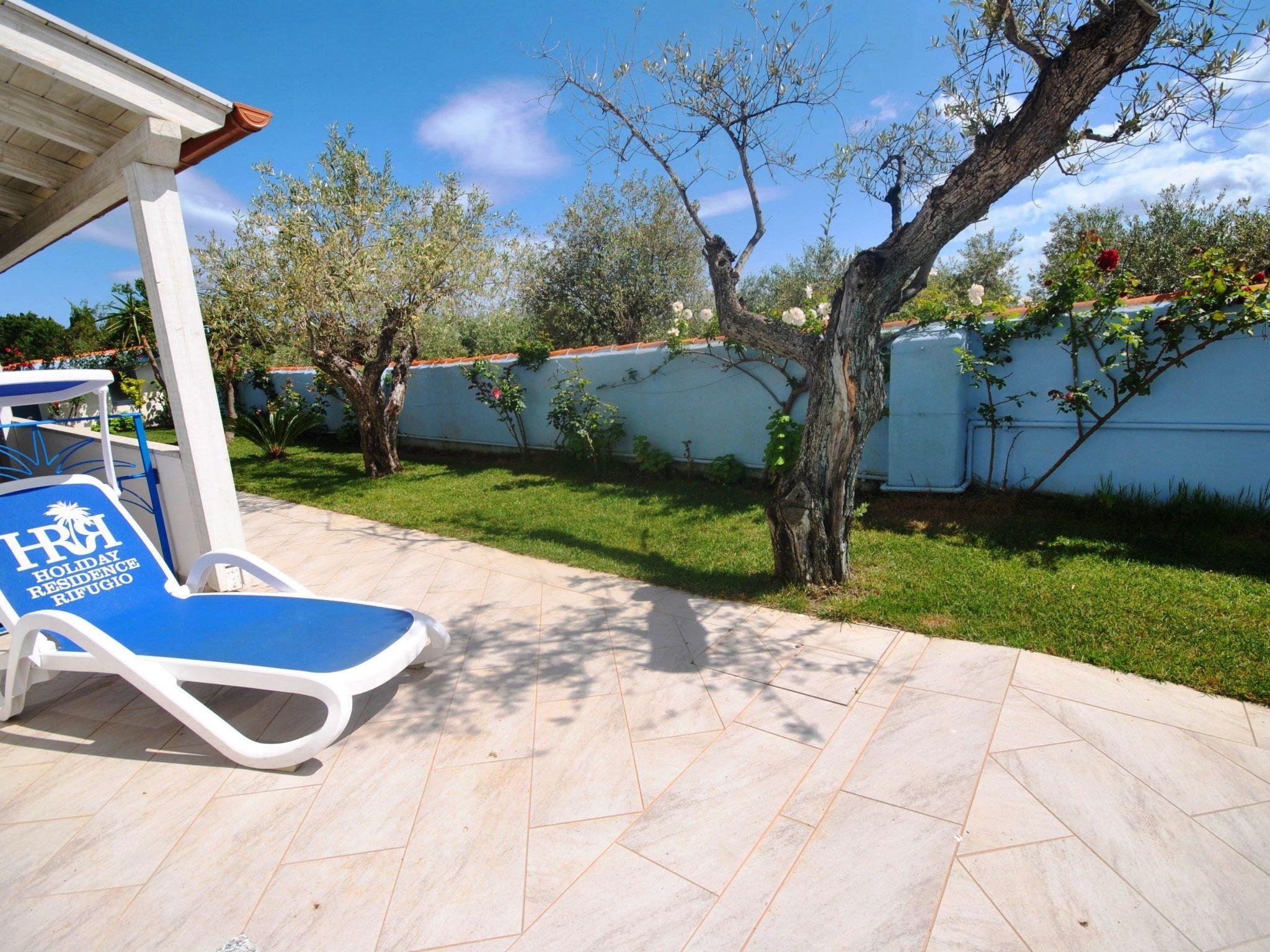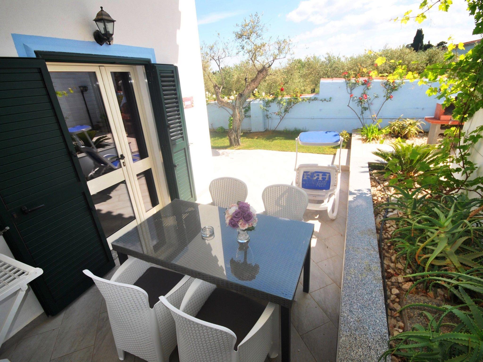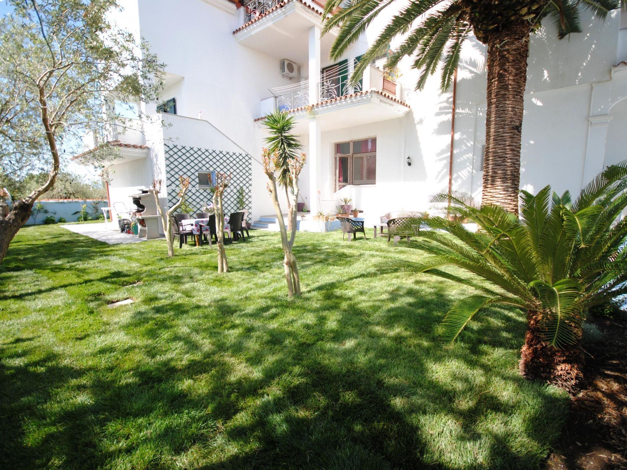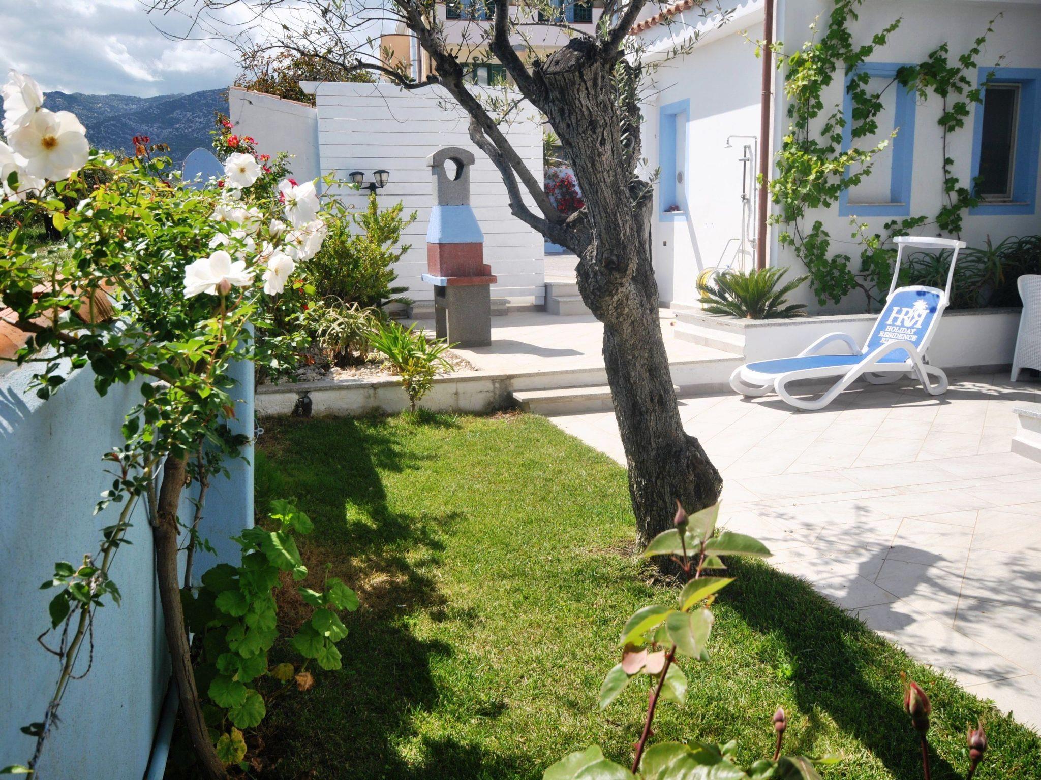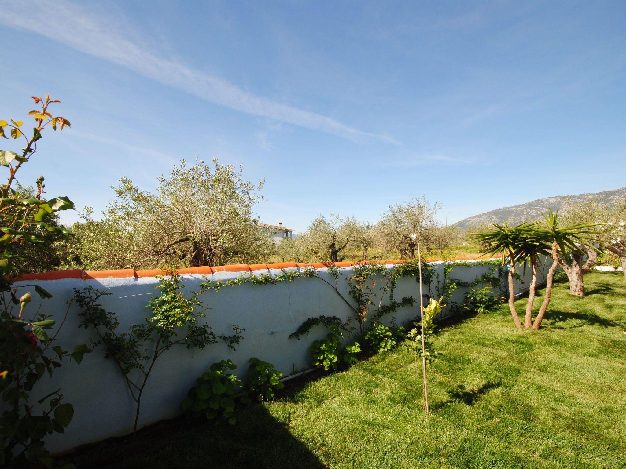 2-room flat for 2 - 3 adults or 2 adults and 2 children Ground floor with 30 m² garden veranda overlooking the olive grove and mountains. New with screen for even more privacy. 1 bedroom with double bed, bathroom (shower/WC). Living room/kitchen with double sofa bed, inside 36m² air conditioning/heating, fully equipped new kitchen, fridge, freezer, gas hob, oven, washing machine in common room, tastefully furnished rooms, BBQ. INCLUDED IN THE PRICE: air conditioning/heating, car park in the courtyard, WIFI, TV and towels.
