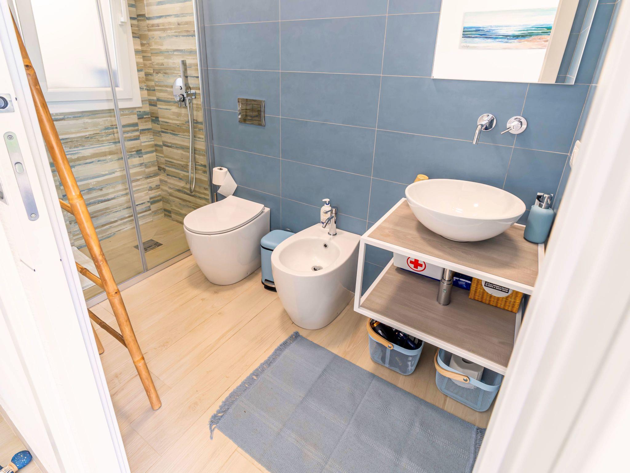 On the ground floor we have a living room with a sofa bed, the fully equipped kitchen and a spacious bathroom with shower.