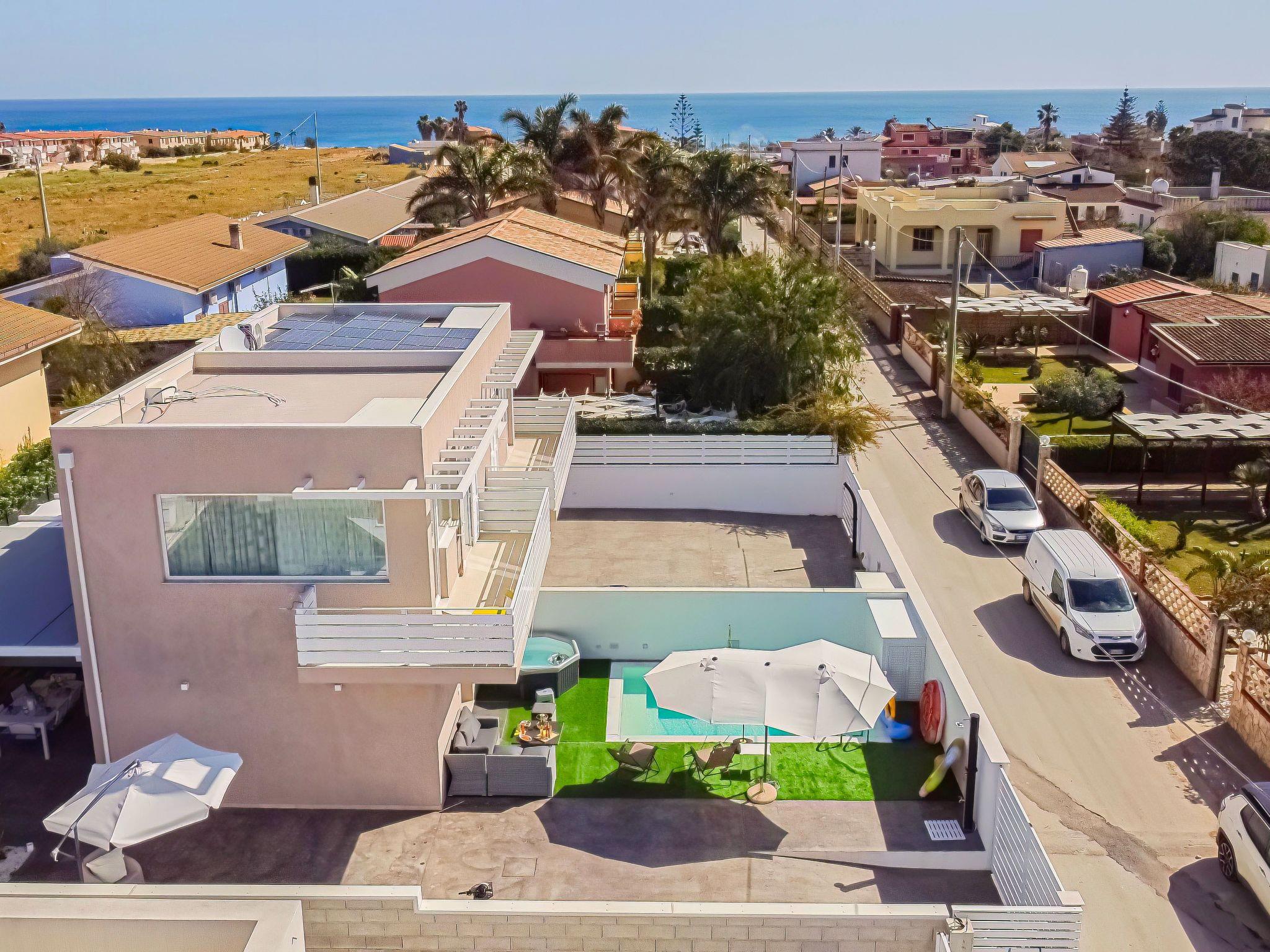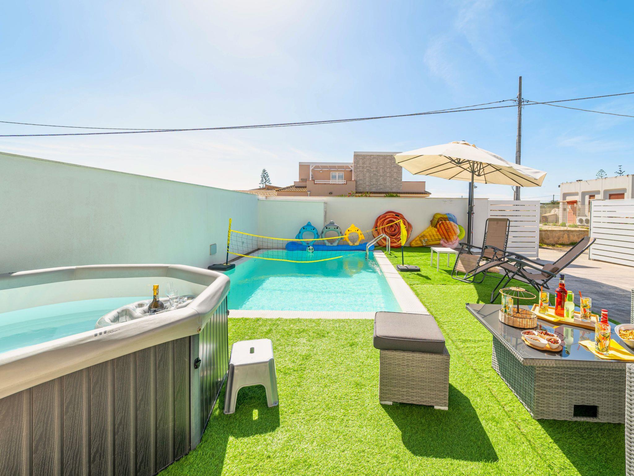 Outside, the house has a swimming pool area and a Jacuzzi.And there is also a spacious BBQ area.From a small private road, after about 300 meters, you reach the enchanting golden beach of Marzamemi.