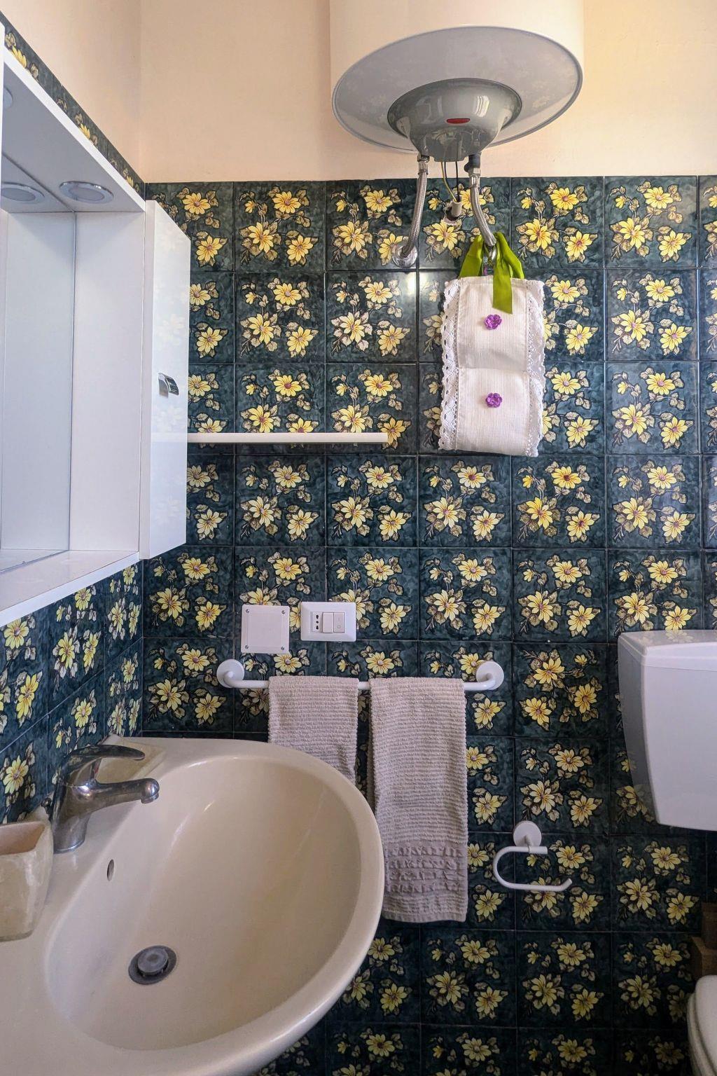 The apartment, completely independent with its own garage, is separated from the main house (where the owners live) by an internal courtyard. It is equipped with sleeping space for four people (one bedroom with a king size bed, and one with two wooden bunk beds suitable for children only), a living room with table, sofa, TV and a kitchenette (fully equipped with stove, electric oven, microwave oven, dishwasher , toaster, kettle, coffee maker) and a bathroom with shower, bidet, washing machine, and hairdryer.